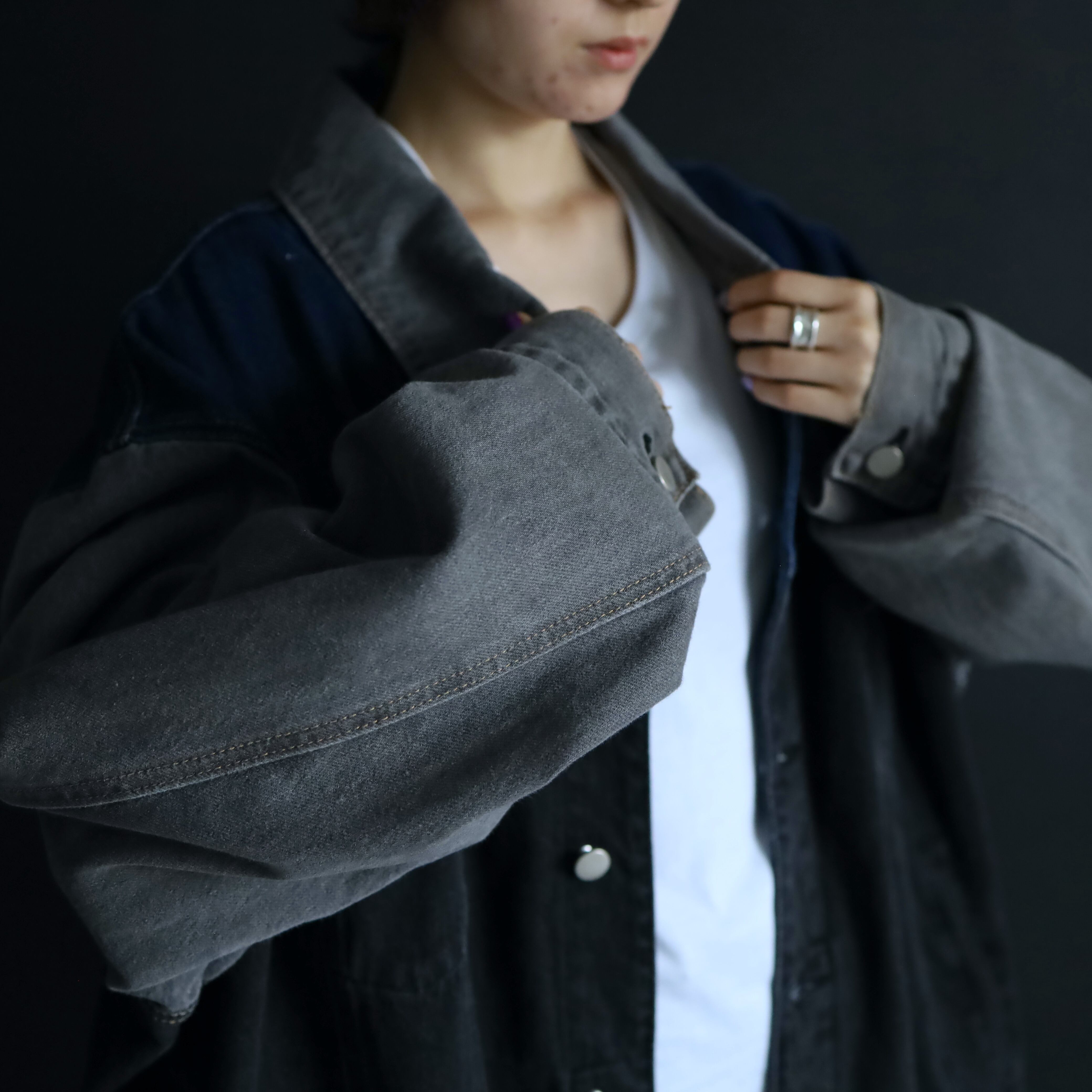 シルエットバランスのいいビッグサイズデニムJKT.