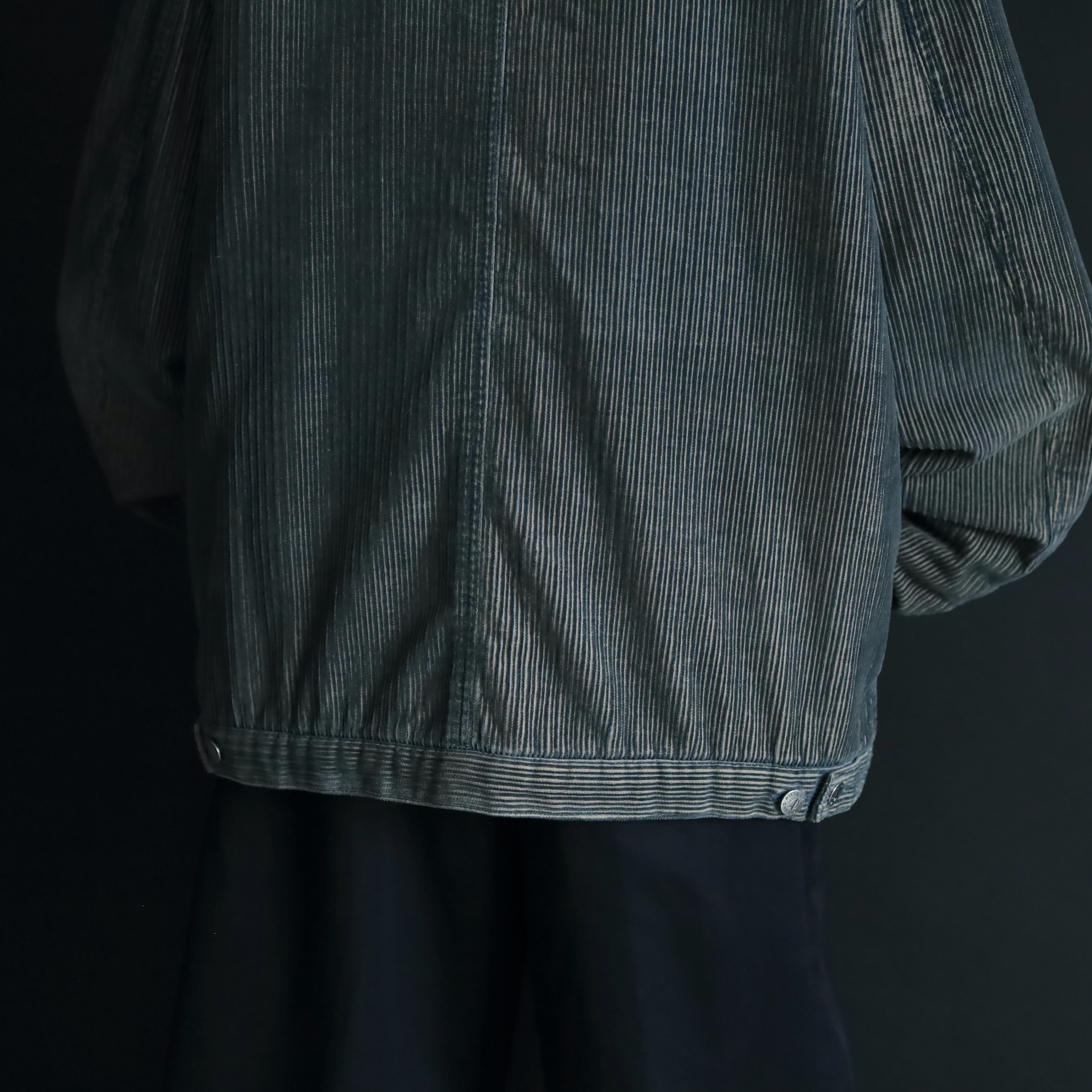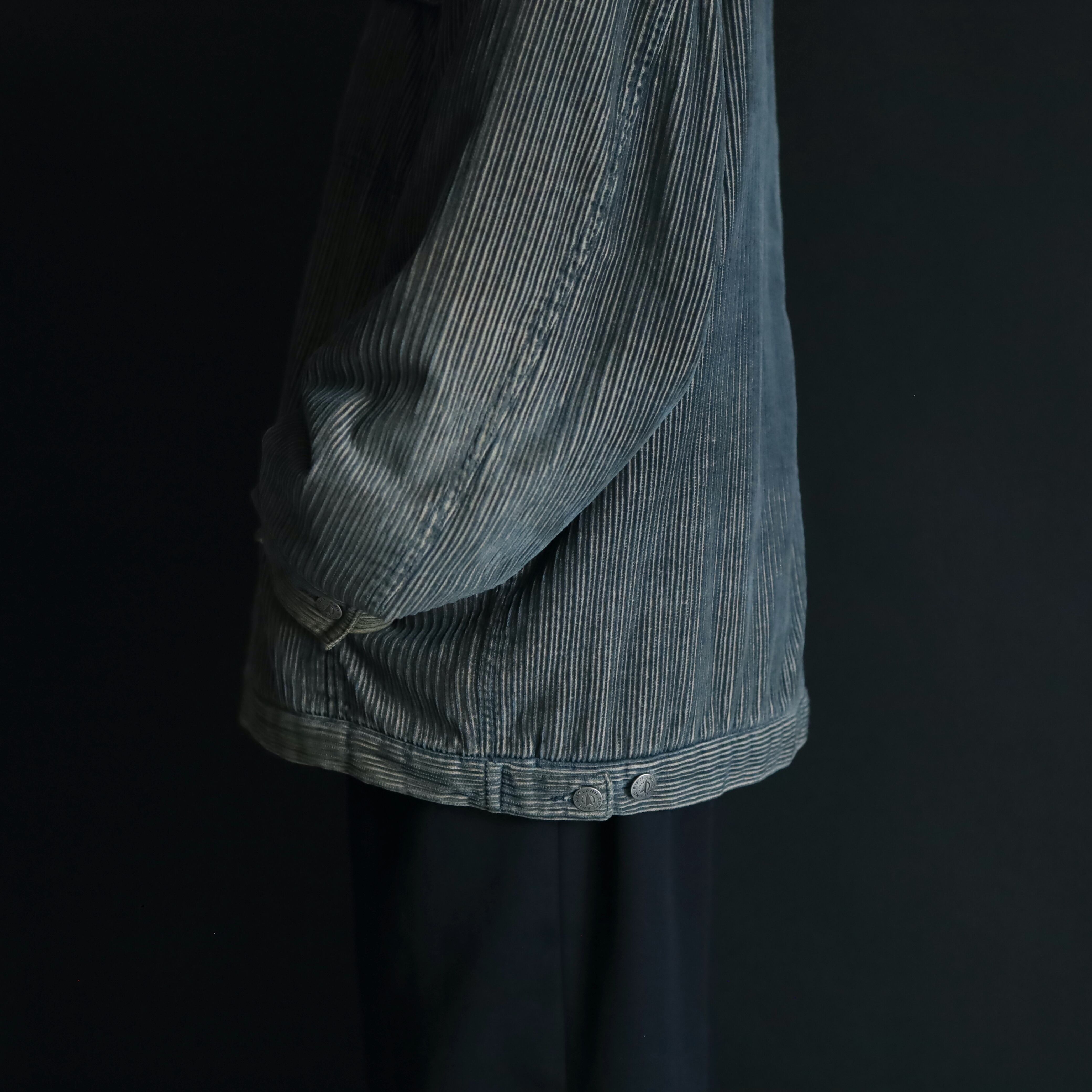 細畝コットンコーデュロイボディ,凹凸もあるため,色落ちにムラがあるのもむしろいい表情.