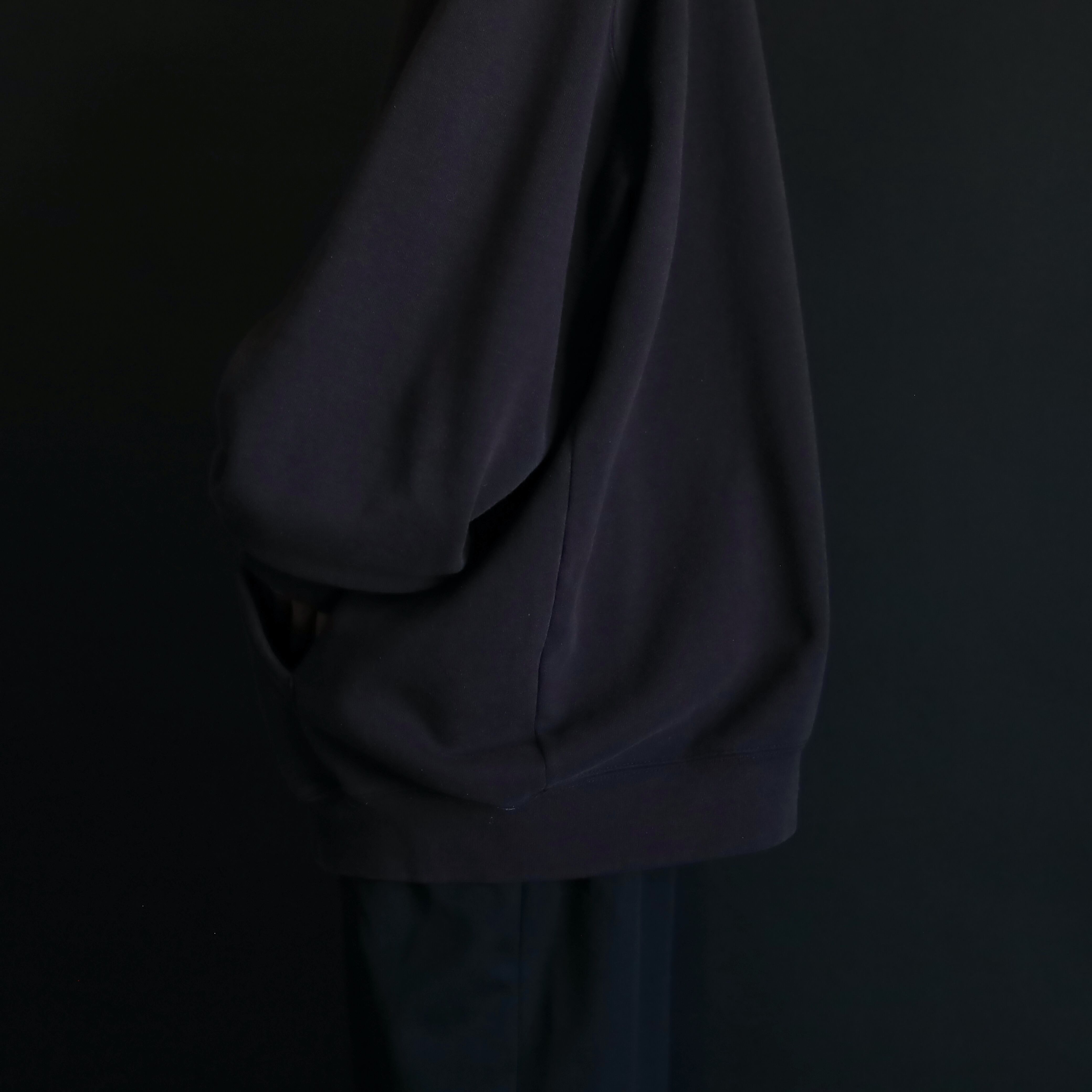 スウェットの重みを活かしたシルエットの落ち感,袖周りや身頃のボリュームある表情も◎