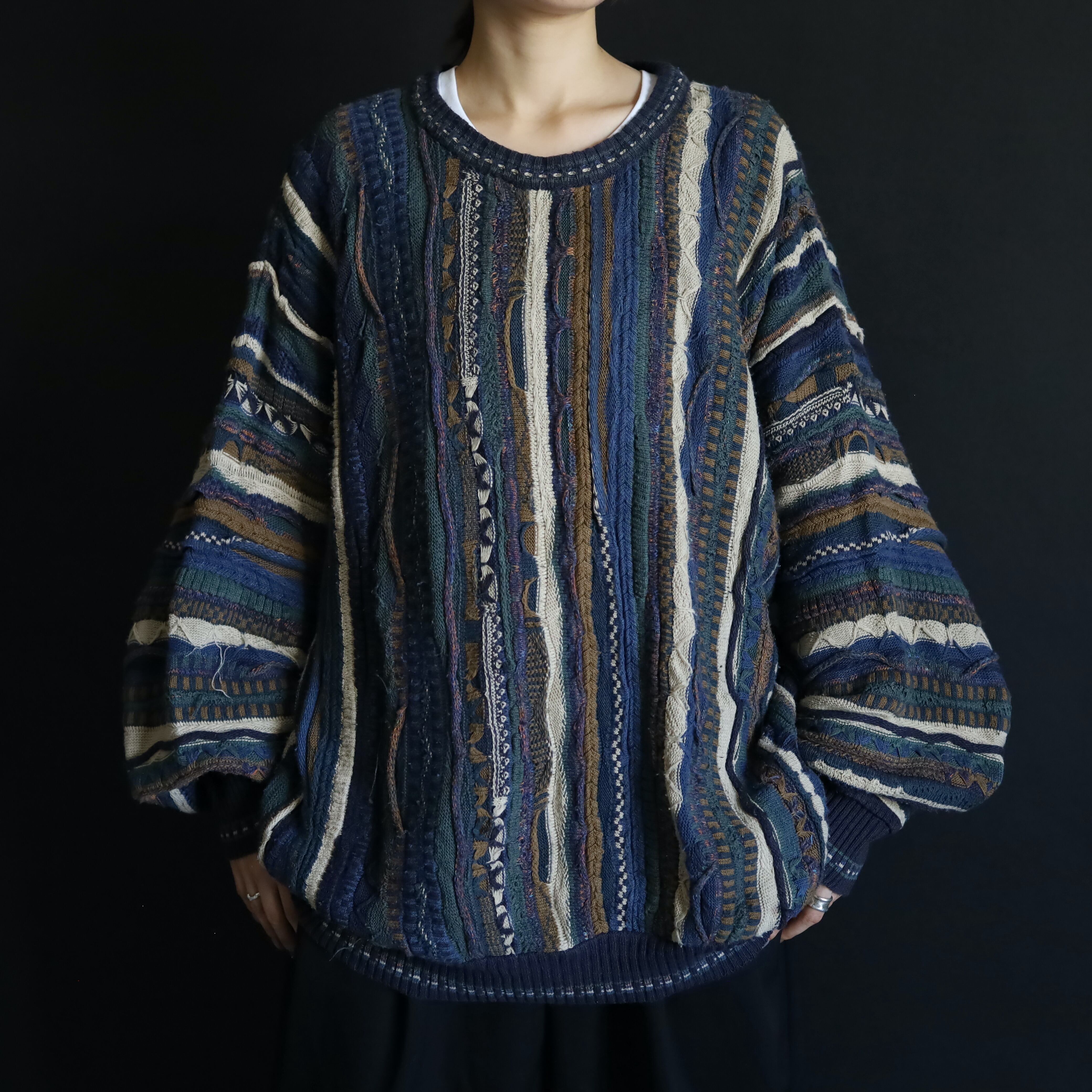 メイントップスとしの活躍はもちろん,コーデの差し色としても楽しめる3Dニットセーター.