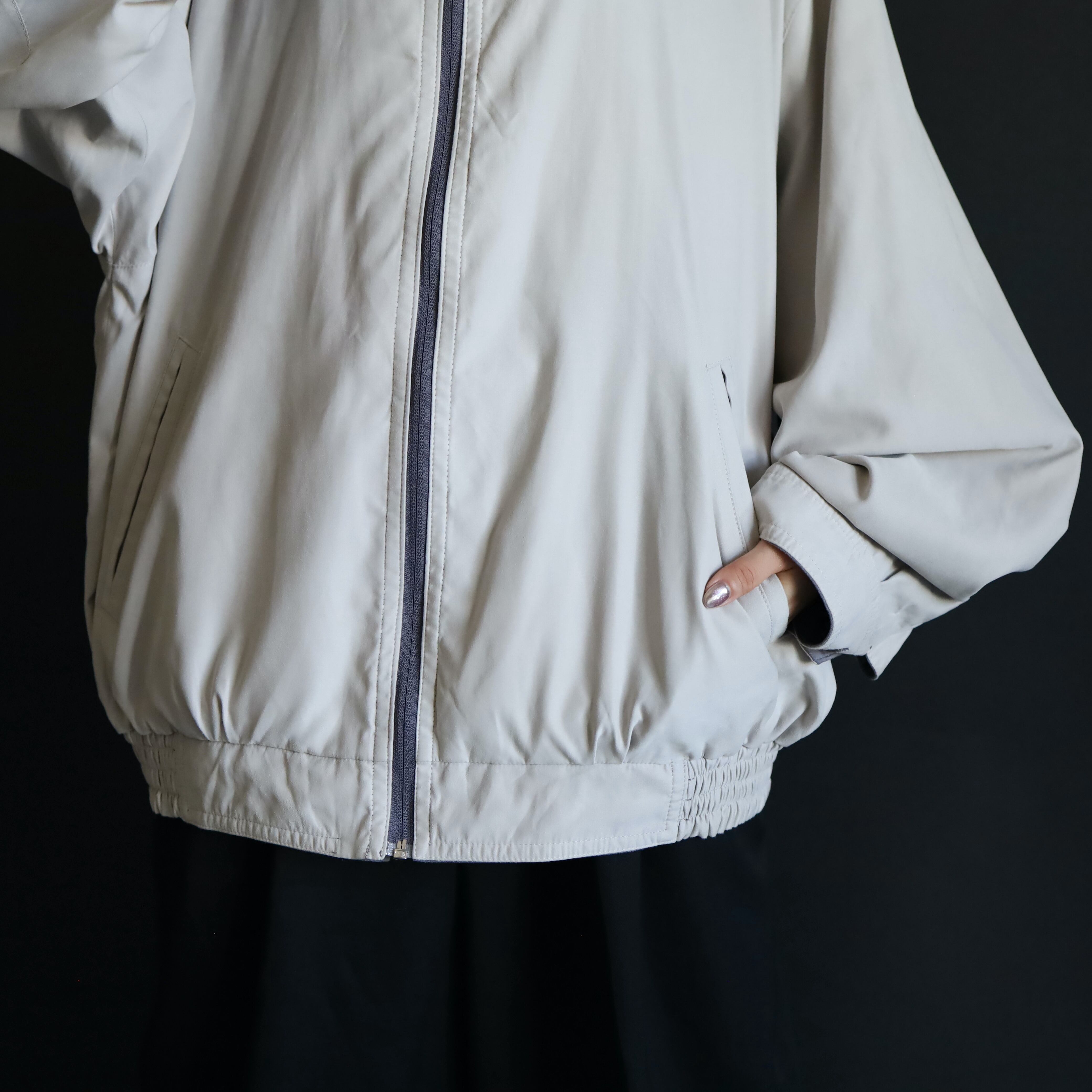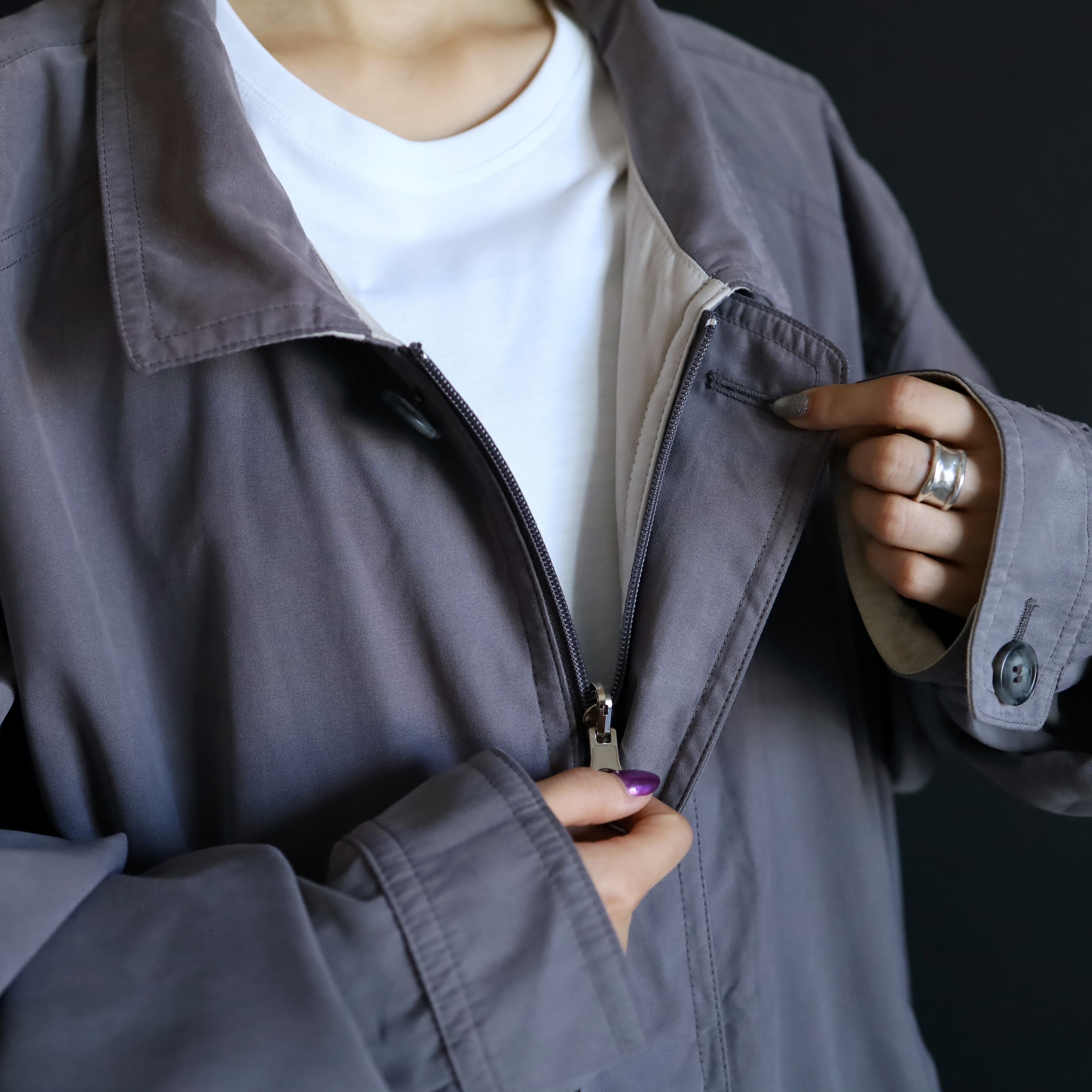 グレー面はフロントがジップ&ボタン開閉タイプ,アイボリー面はジップアップタイプ.