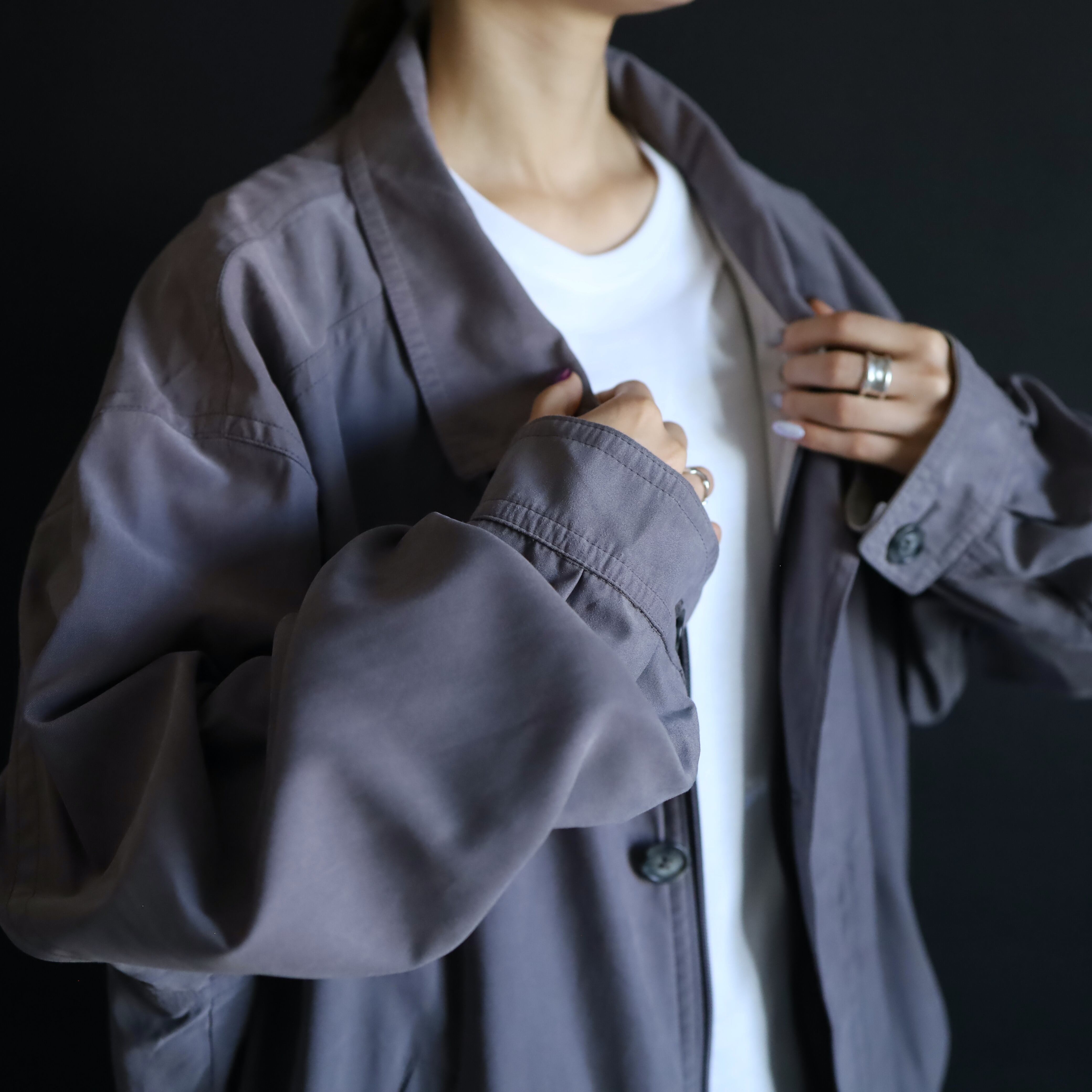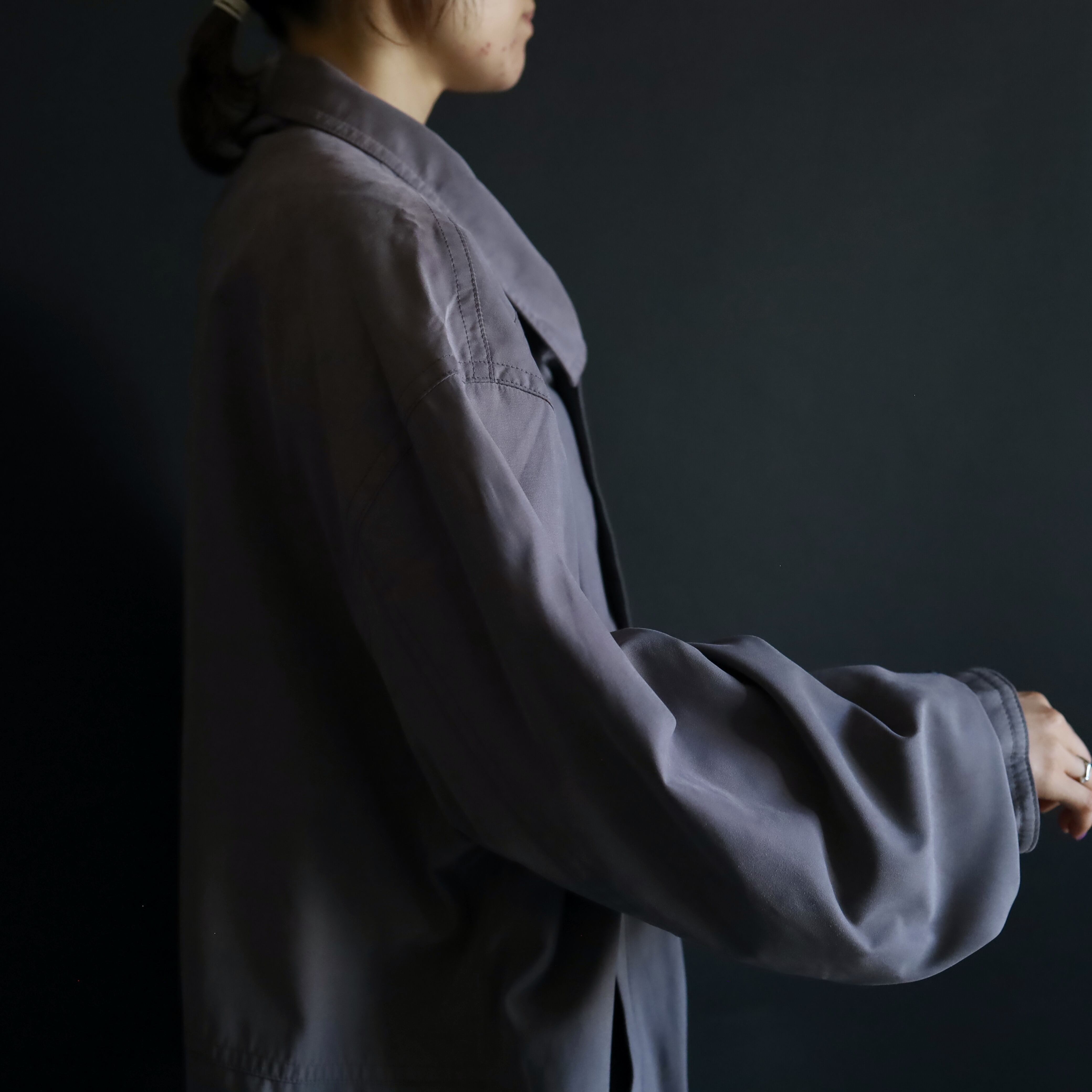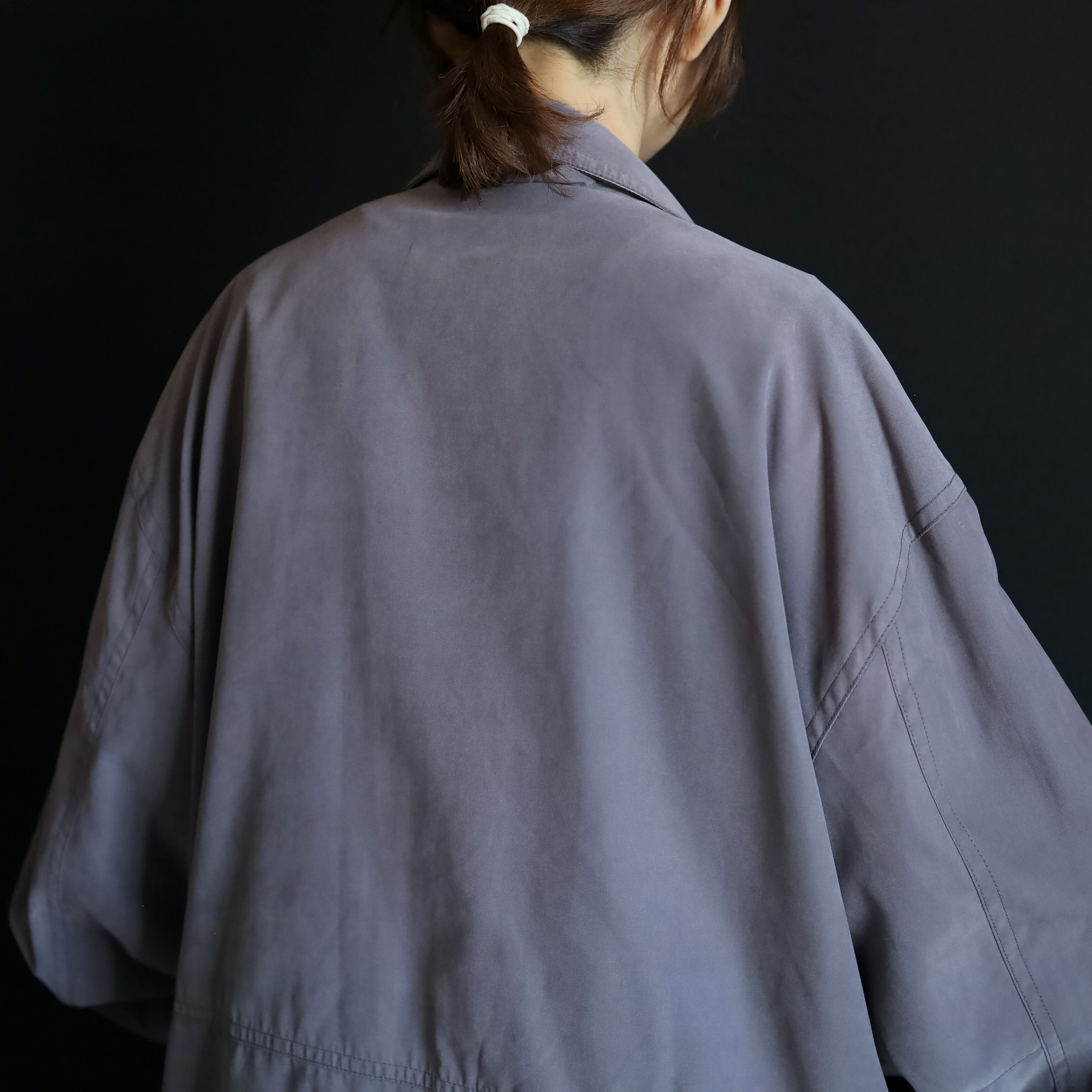 ほんの少しフェードしたパープルみのあるグレー面と,柔らかなアイボリー面のリバーシブル.