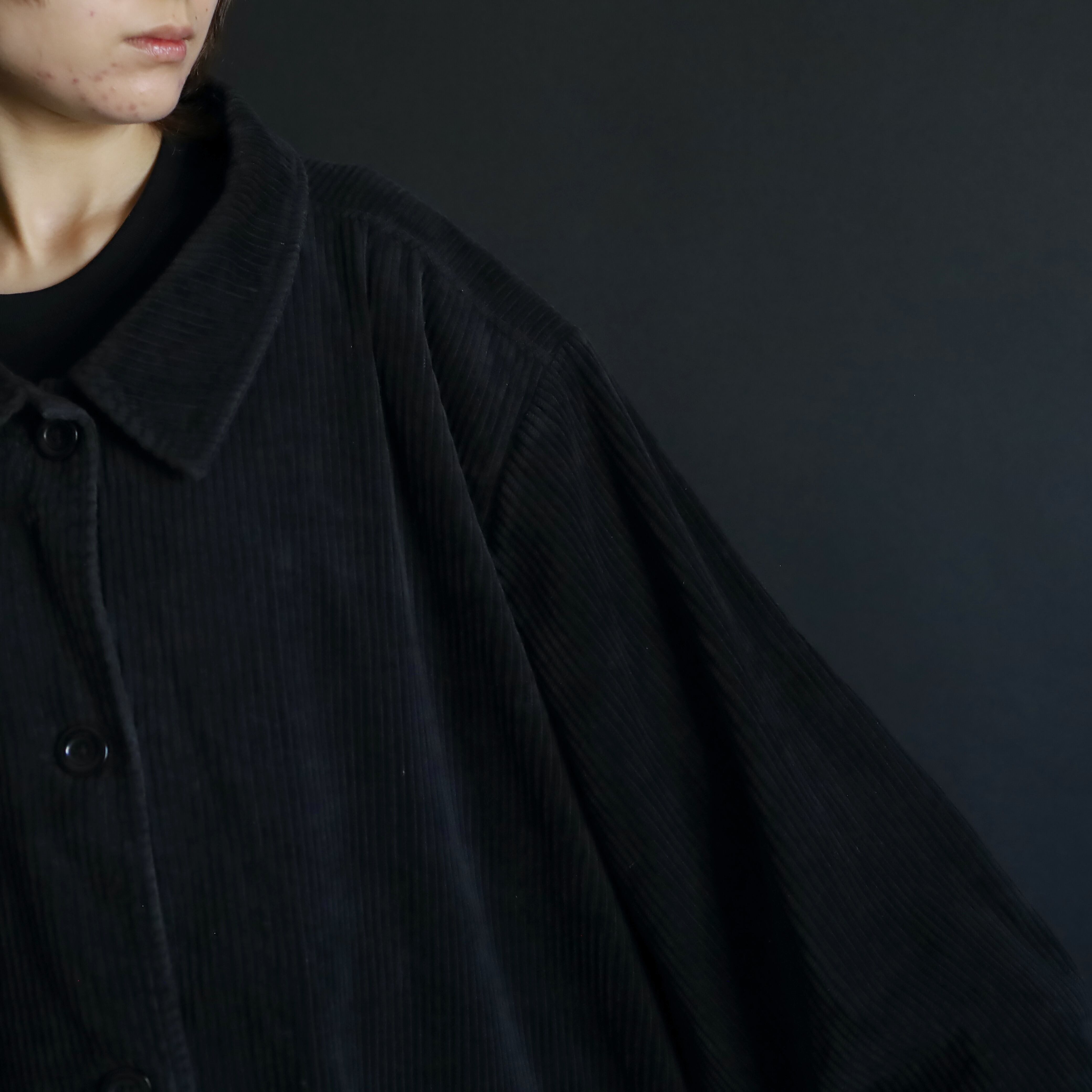 ブラックコーデュロイのミドルジャケットの入荷です.