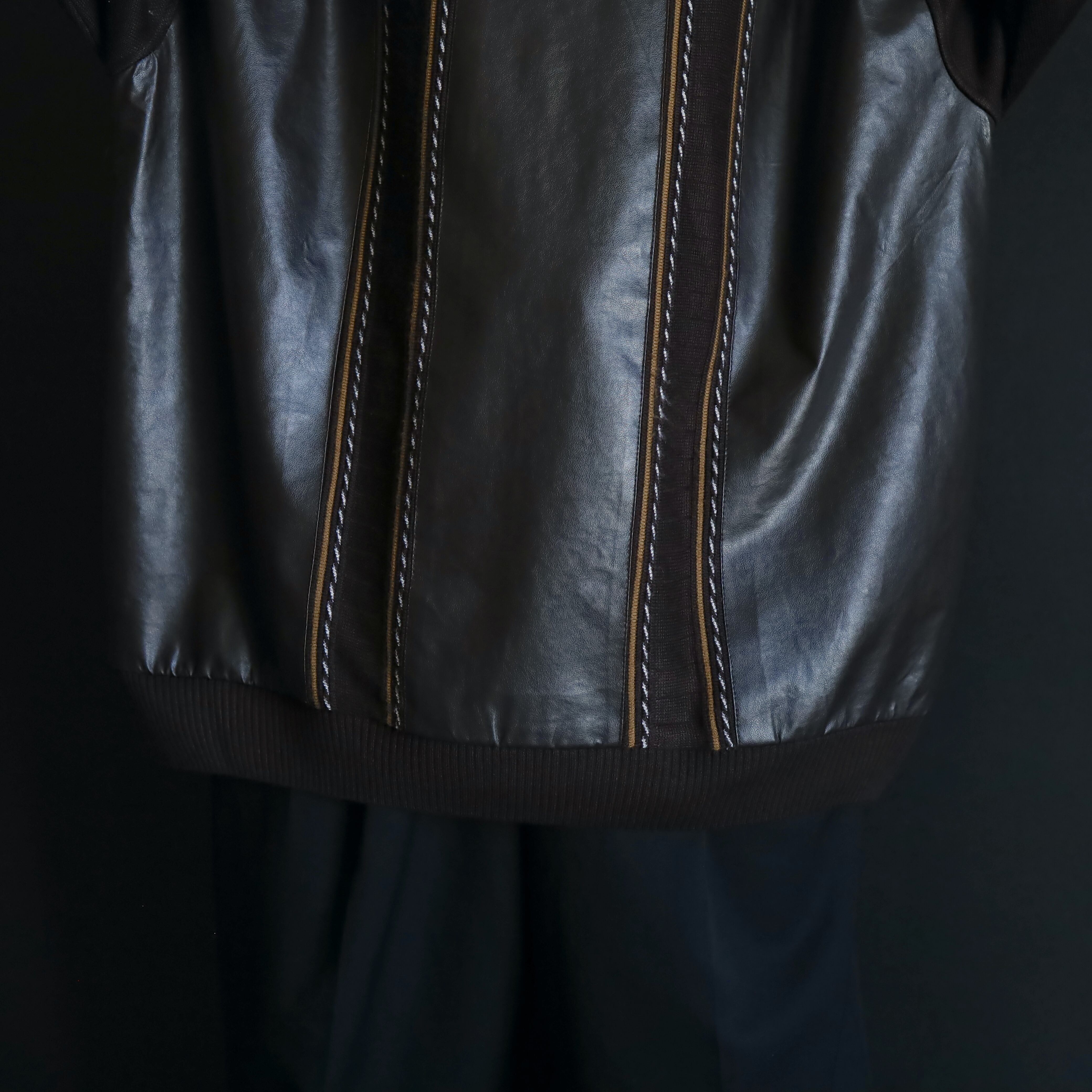 フロント全面がフェイクレザー切替ではなく,左右にニット生地がライン状に残されている点も◎