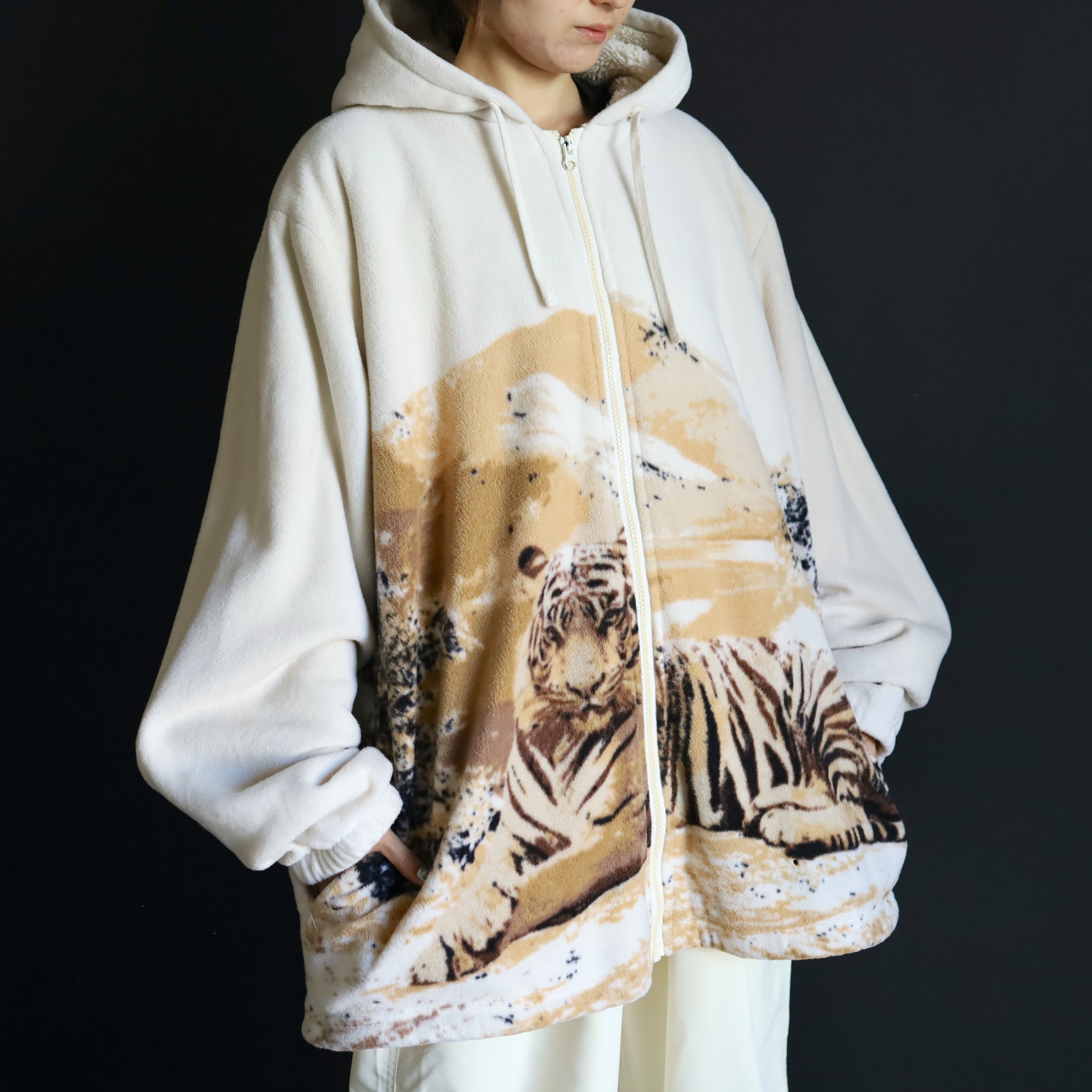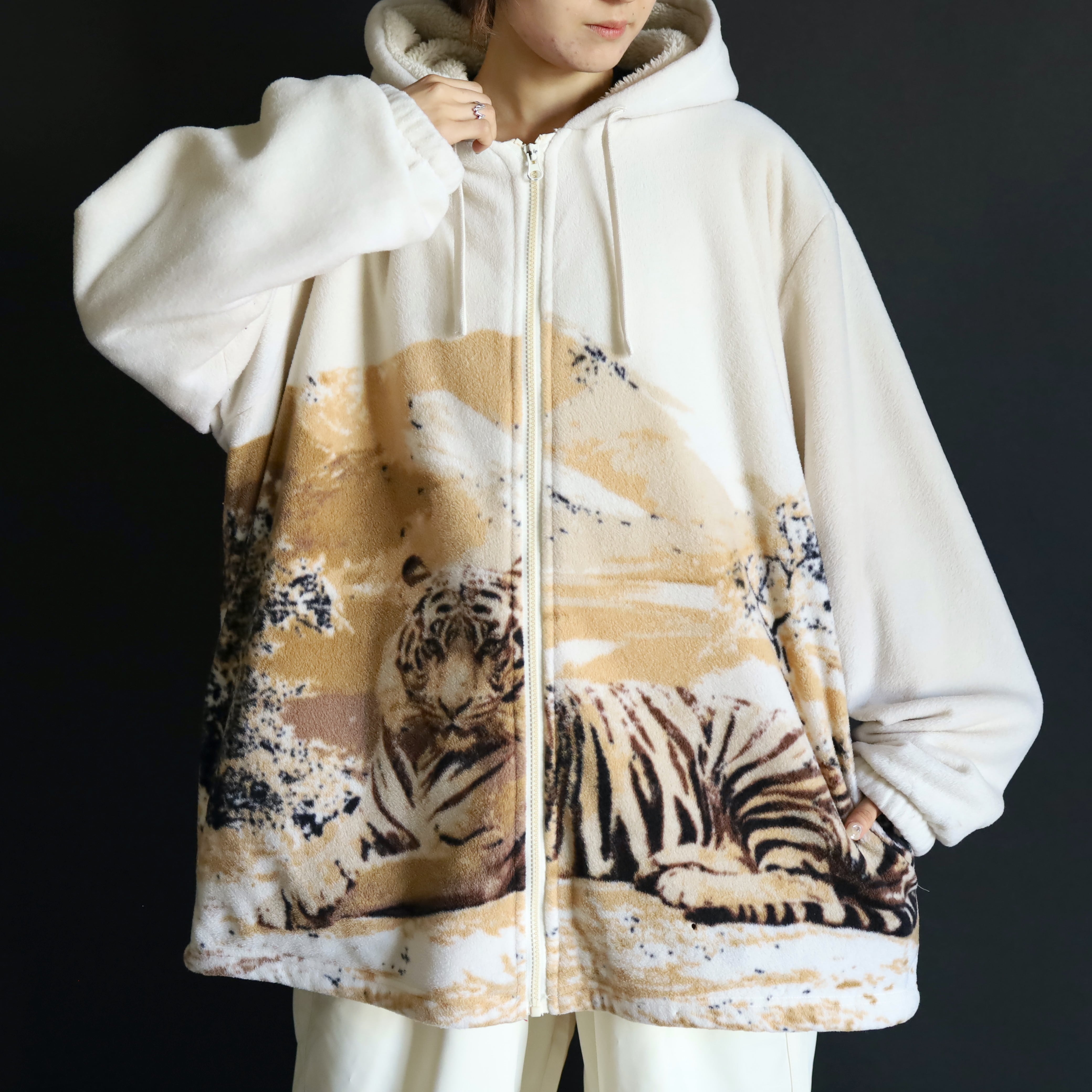 レアな虎プリントフリースジャケット,この機会にぜひ.