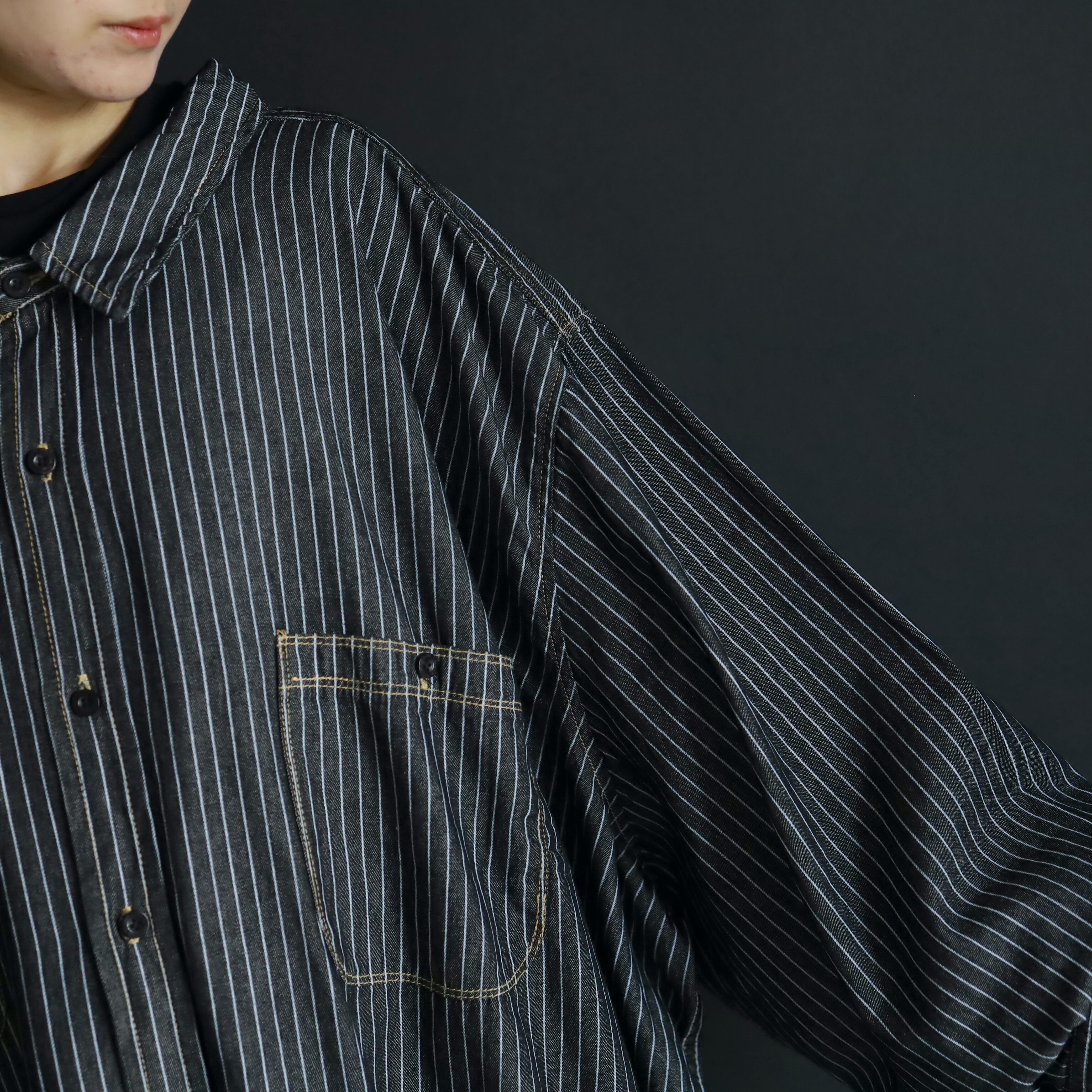 各所シームやステッチはイエローカラーで,モノクロのボディ,ストライプに対してよく映え,さりげなくアクセントとして機能してます.