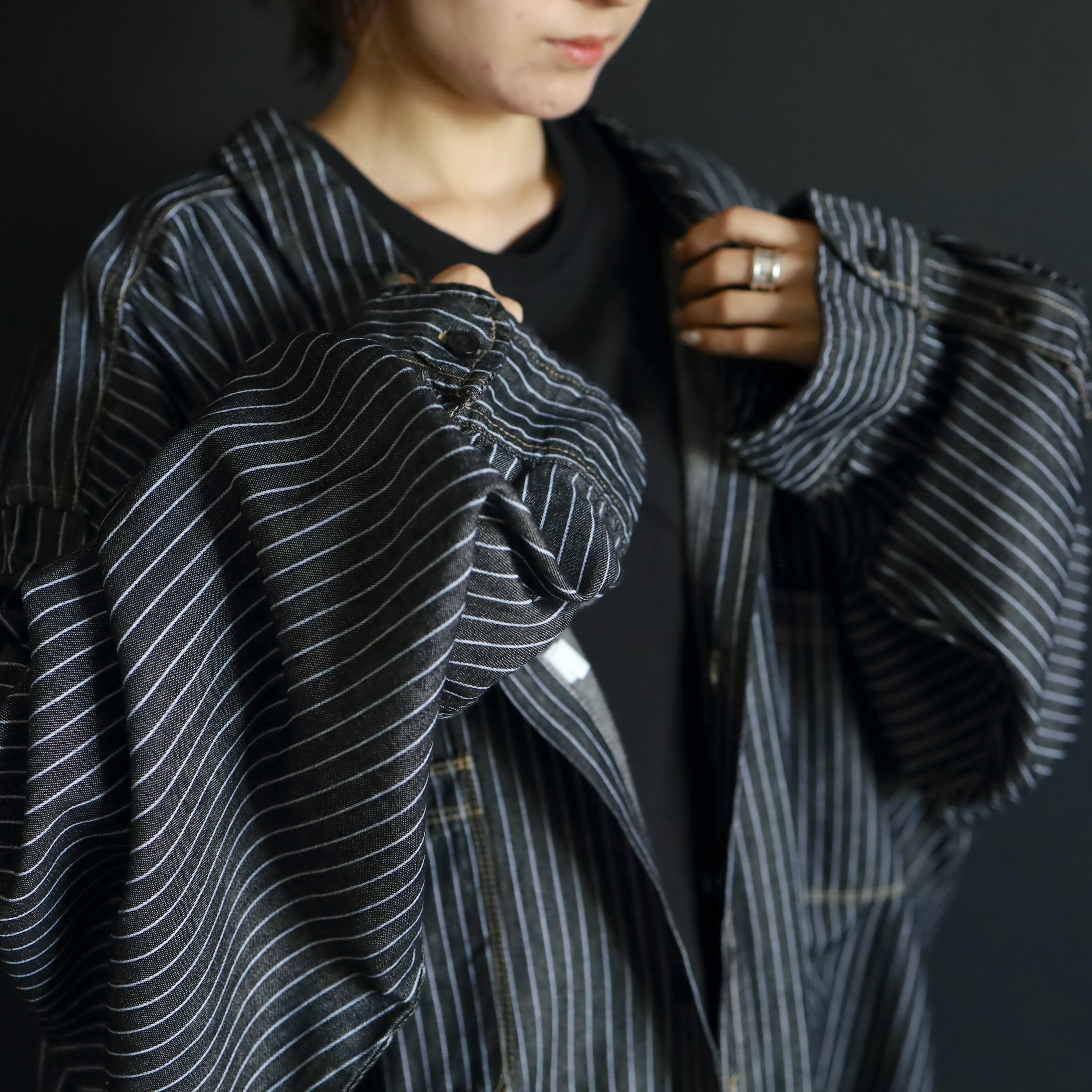 気品溢れるチャコールグレーカラーを基調に,ホワイトのピンストライプデザインで,より大人っぽく.