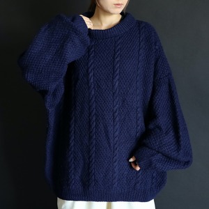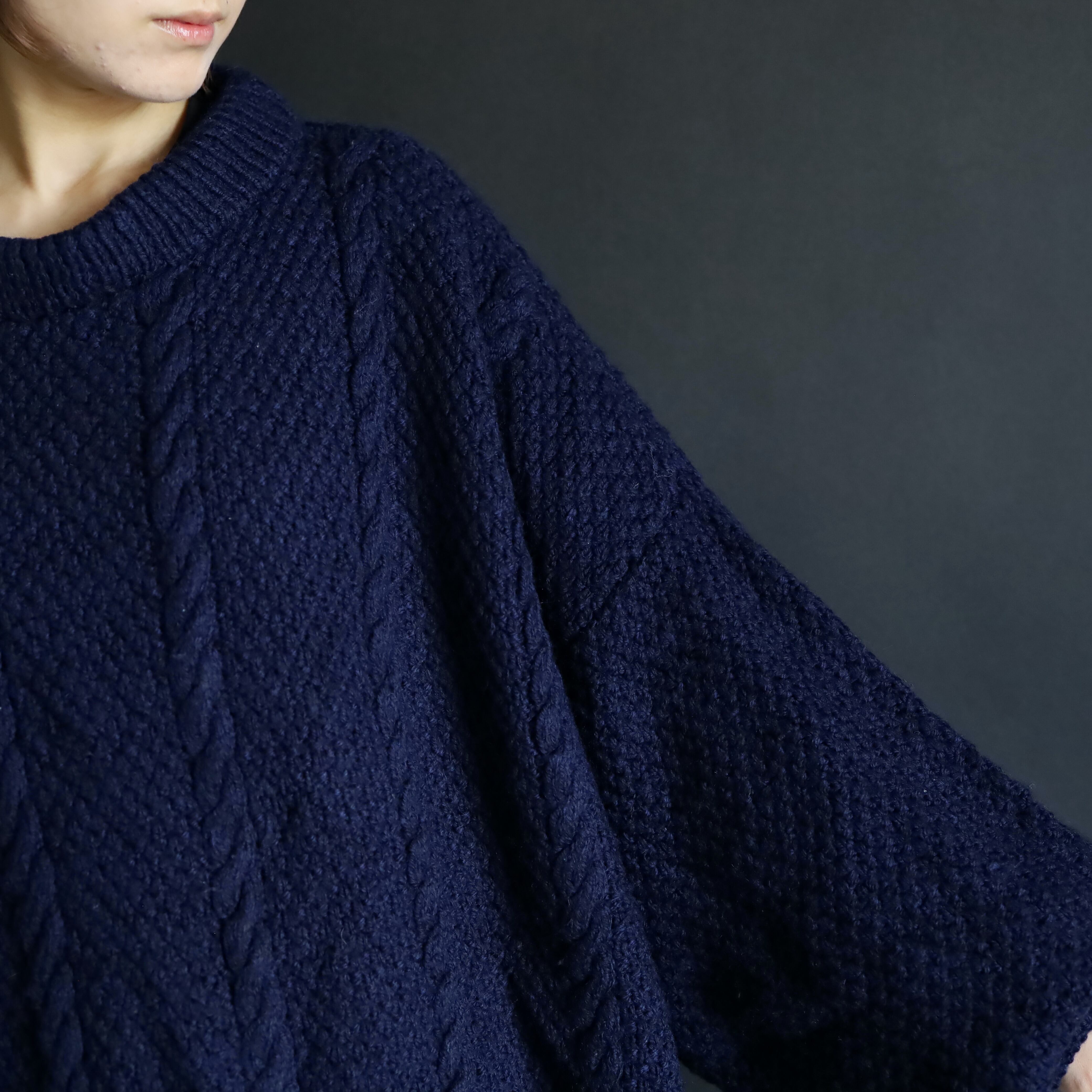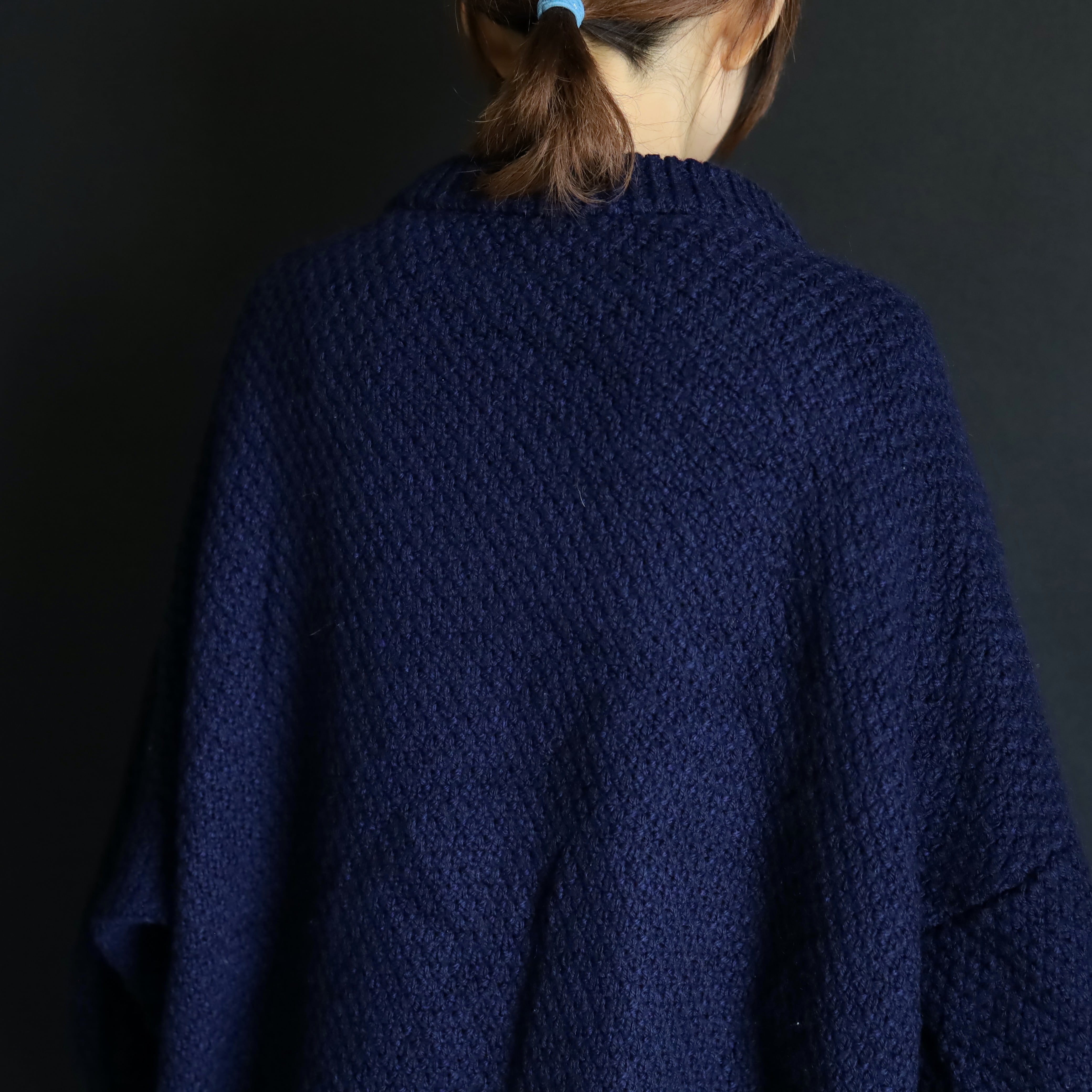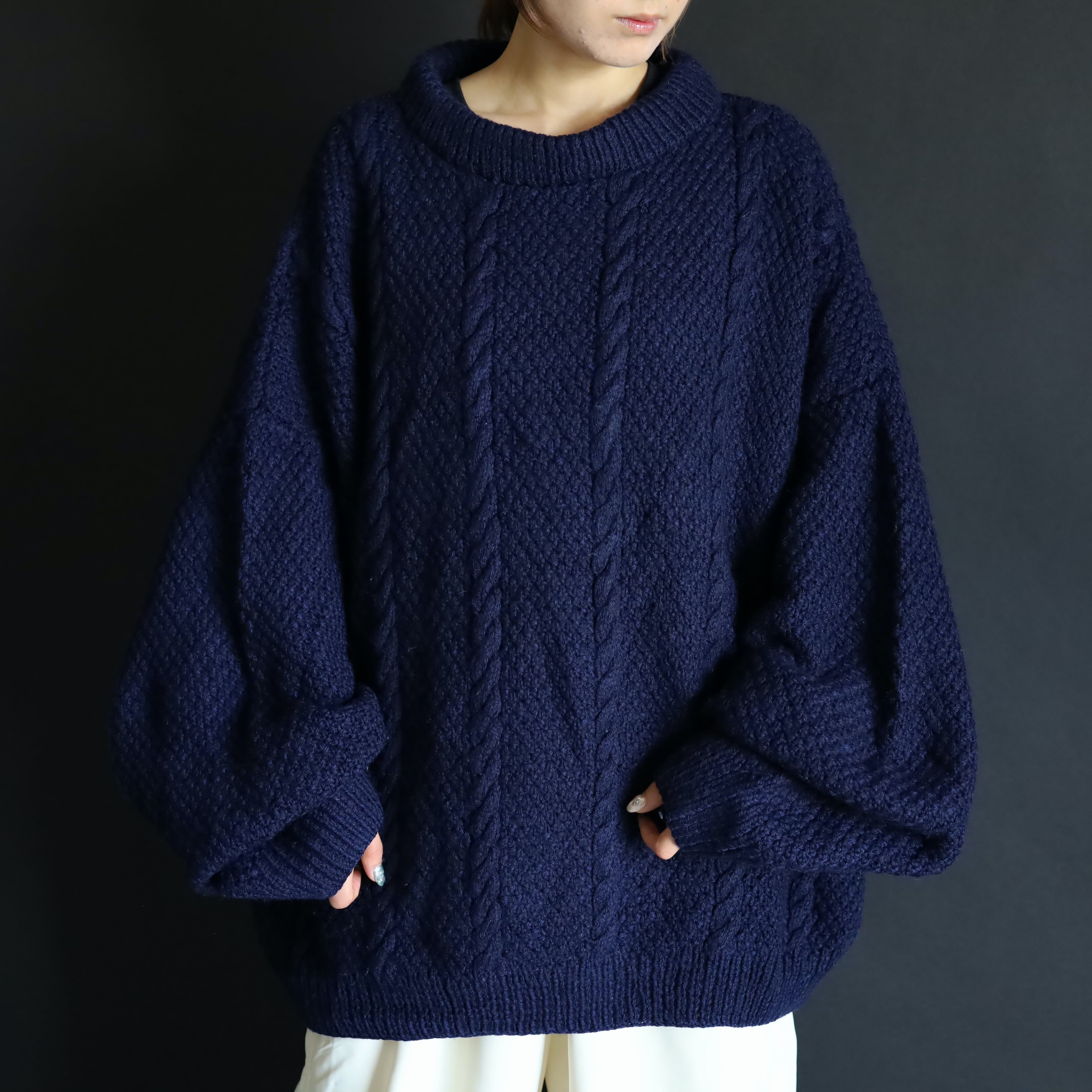 ざっくりと編み込んだローゲージニットで,ボリューム感はあるもののふんわりと軽い着心地.