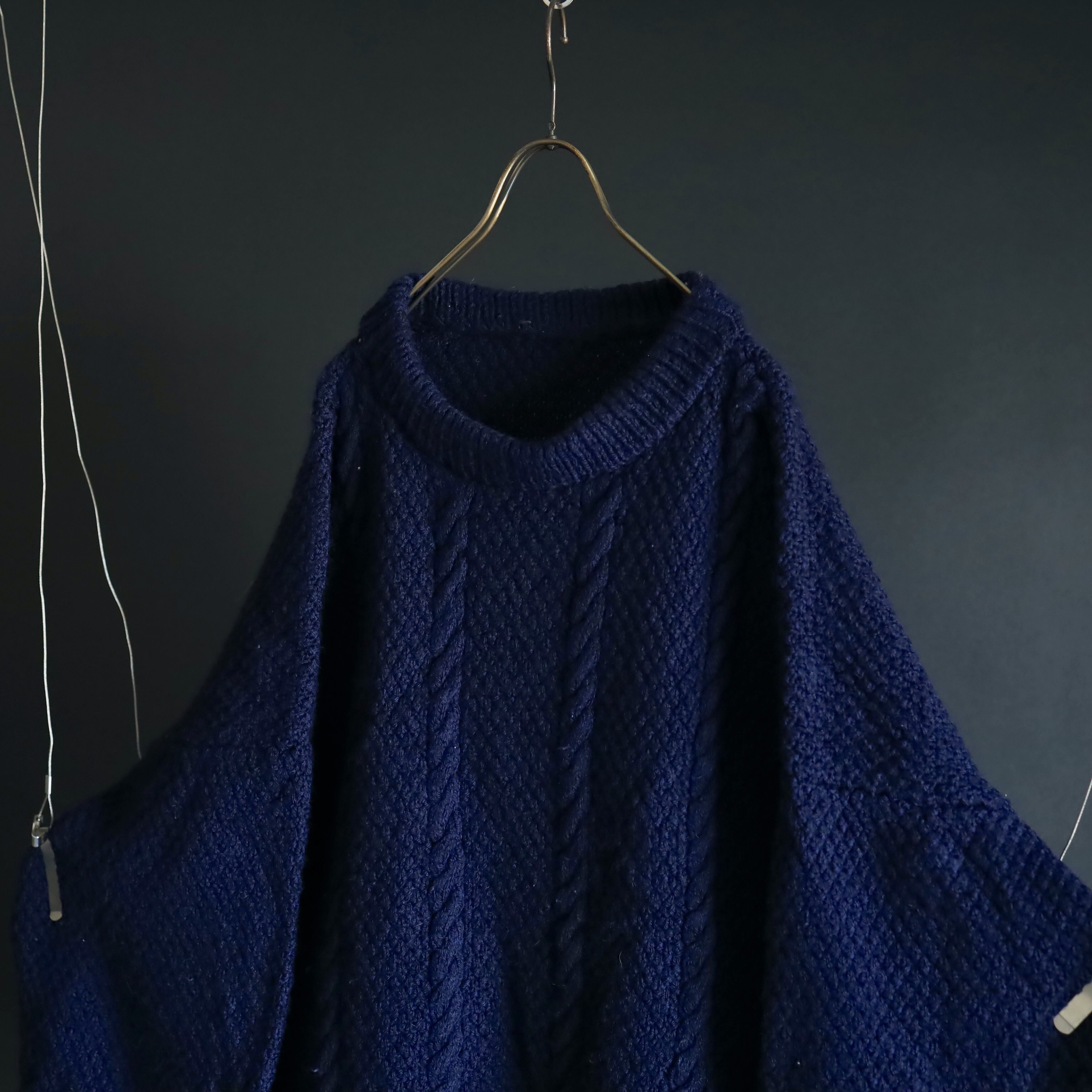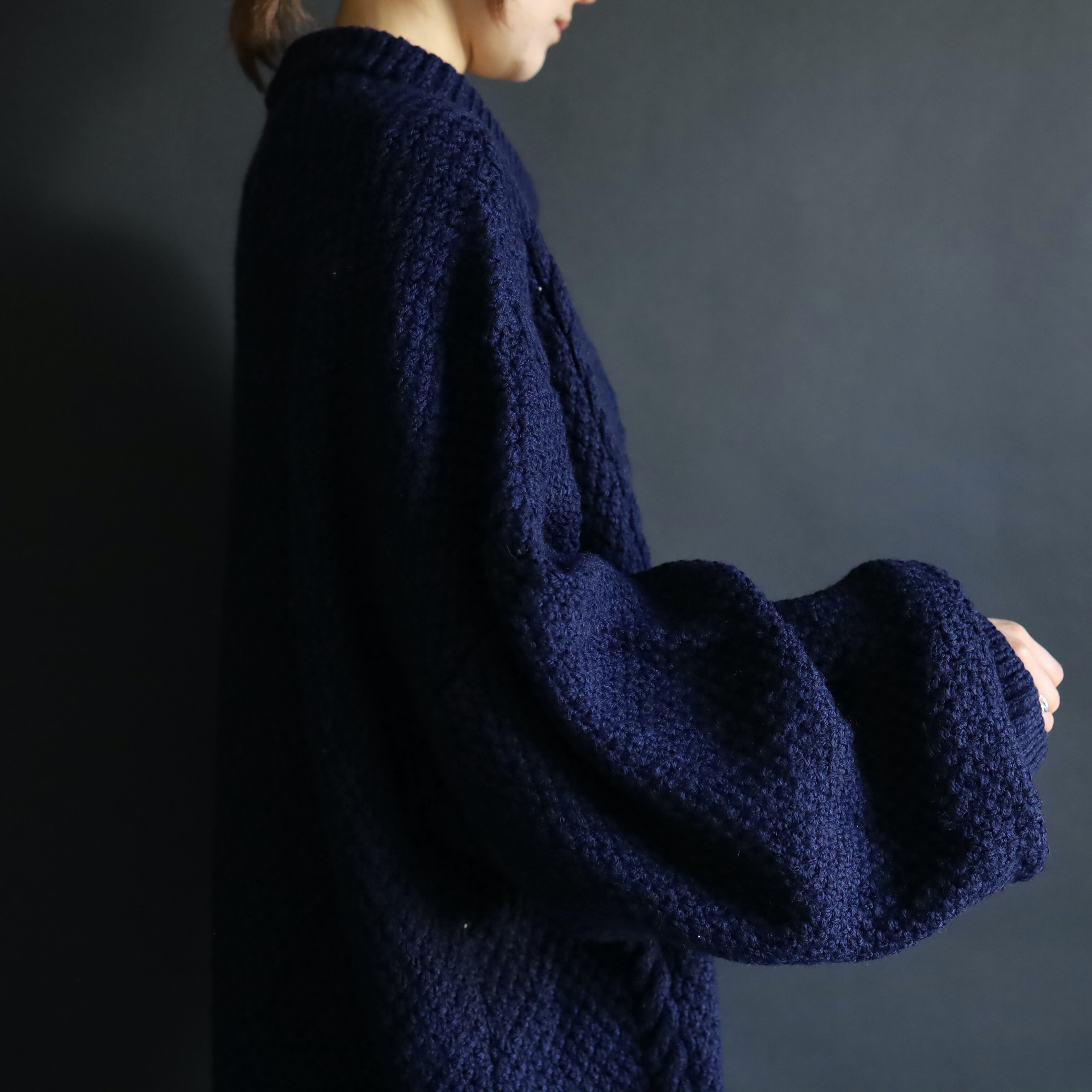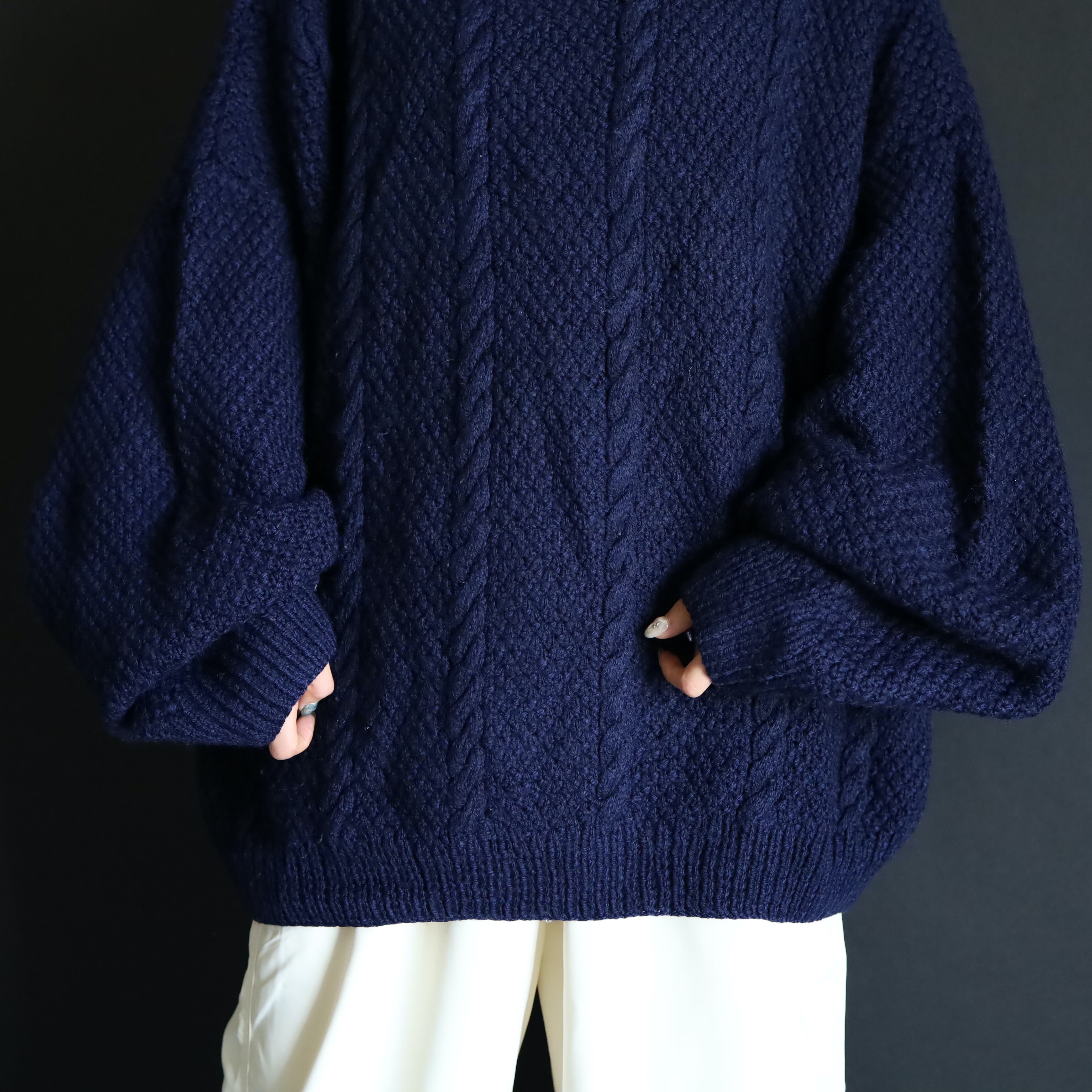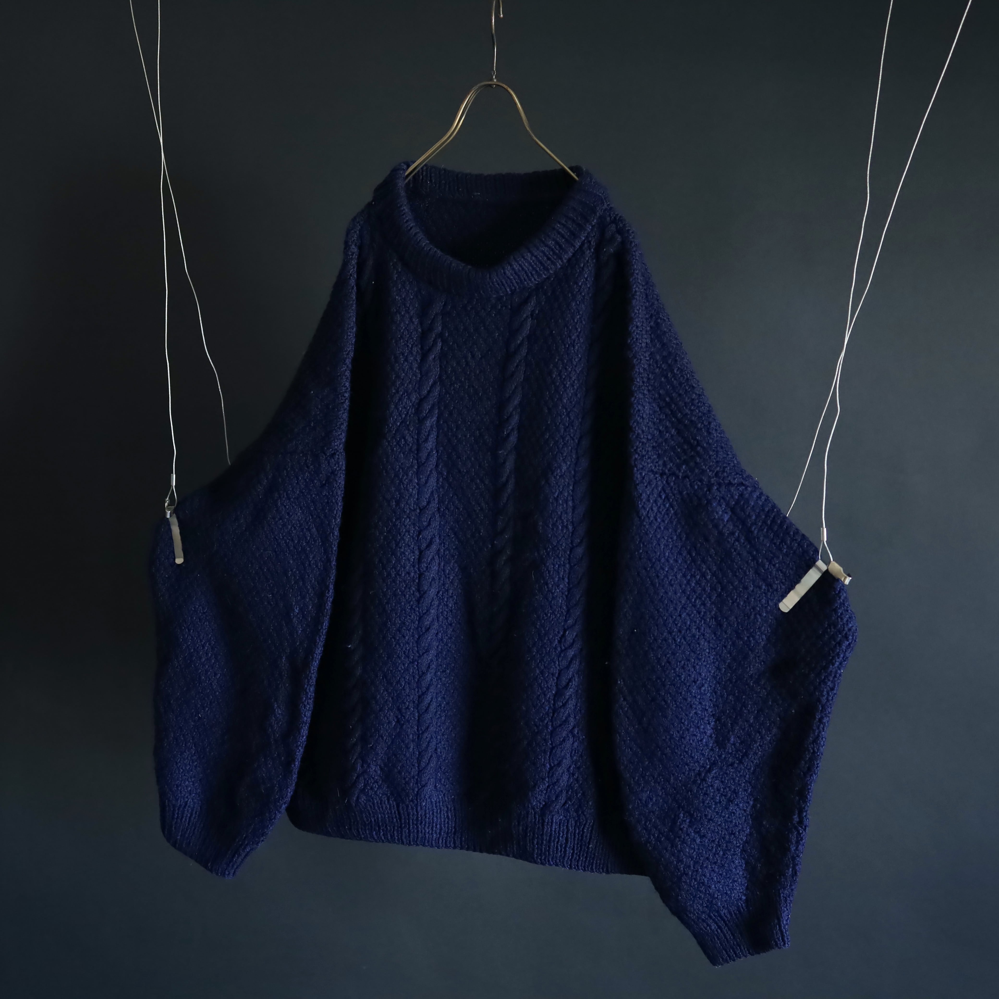 ざっくりと編み込んだローゲージニットで,ボリューム感はあるもののふんわりと軽い着心地.