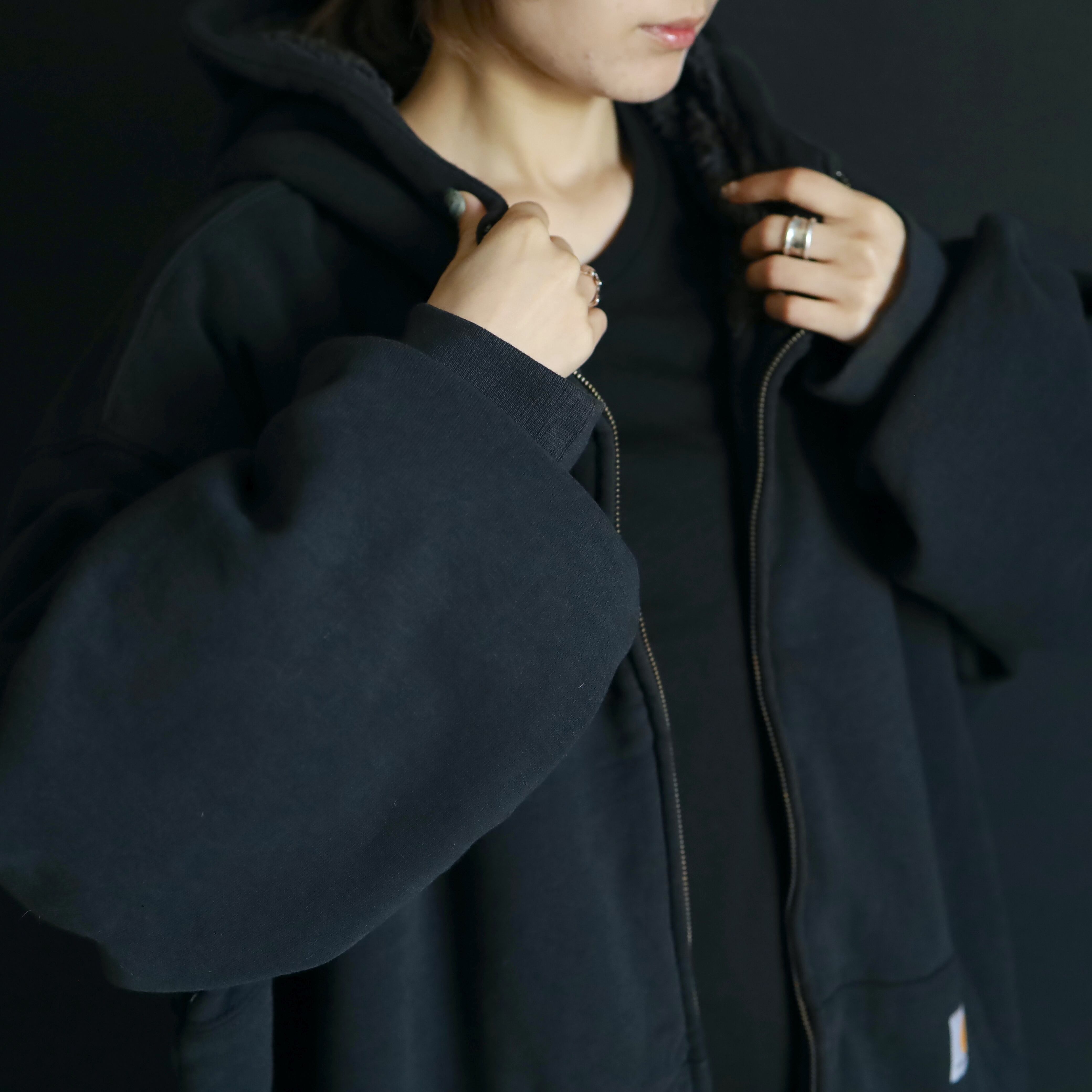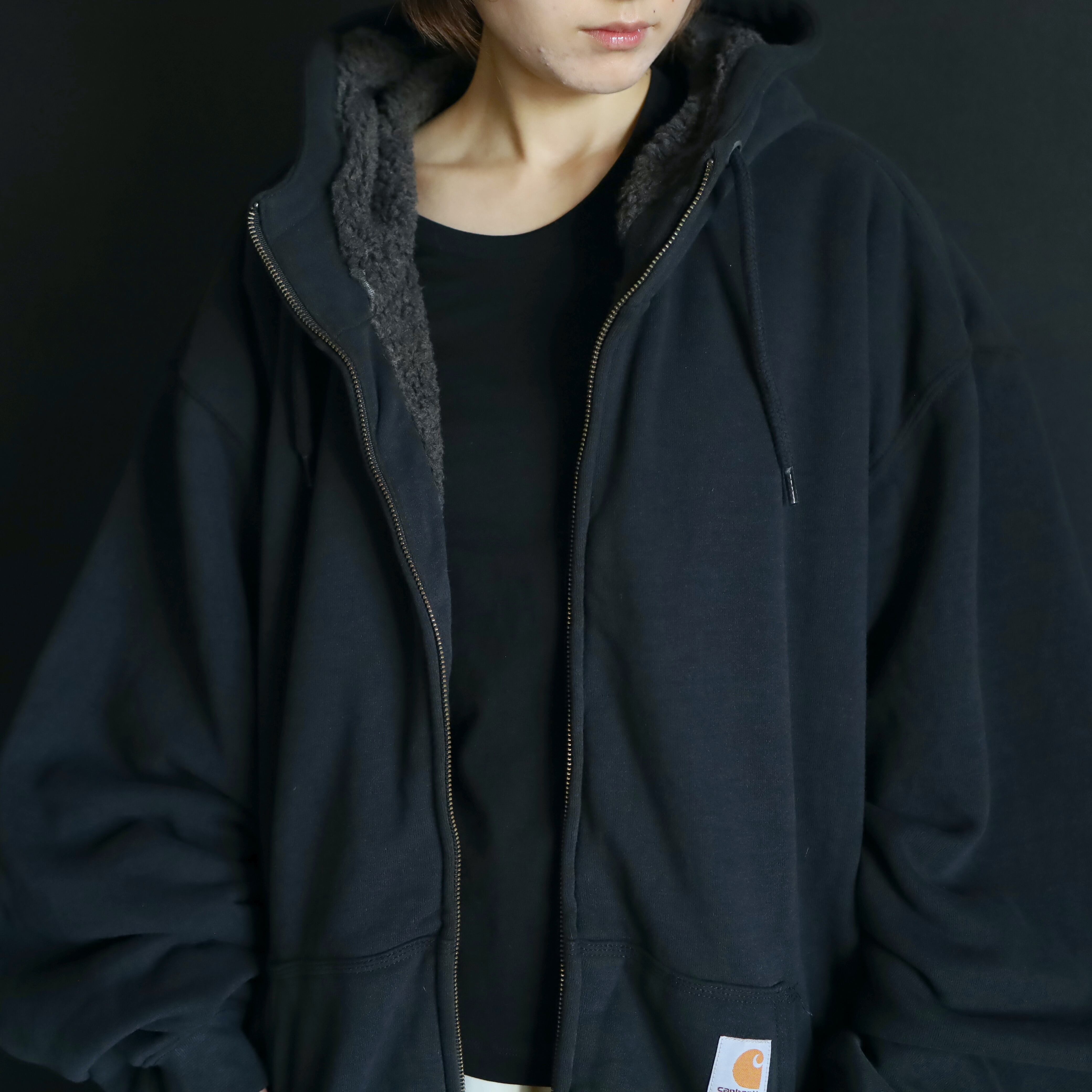 ブラックベース,カーハートのロゴのみのシンプル設計で,万能的に着回しの効くGOODアウターかと.