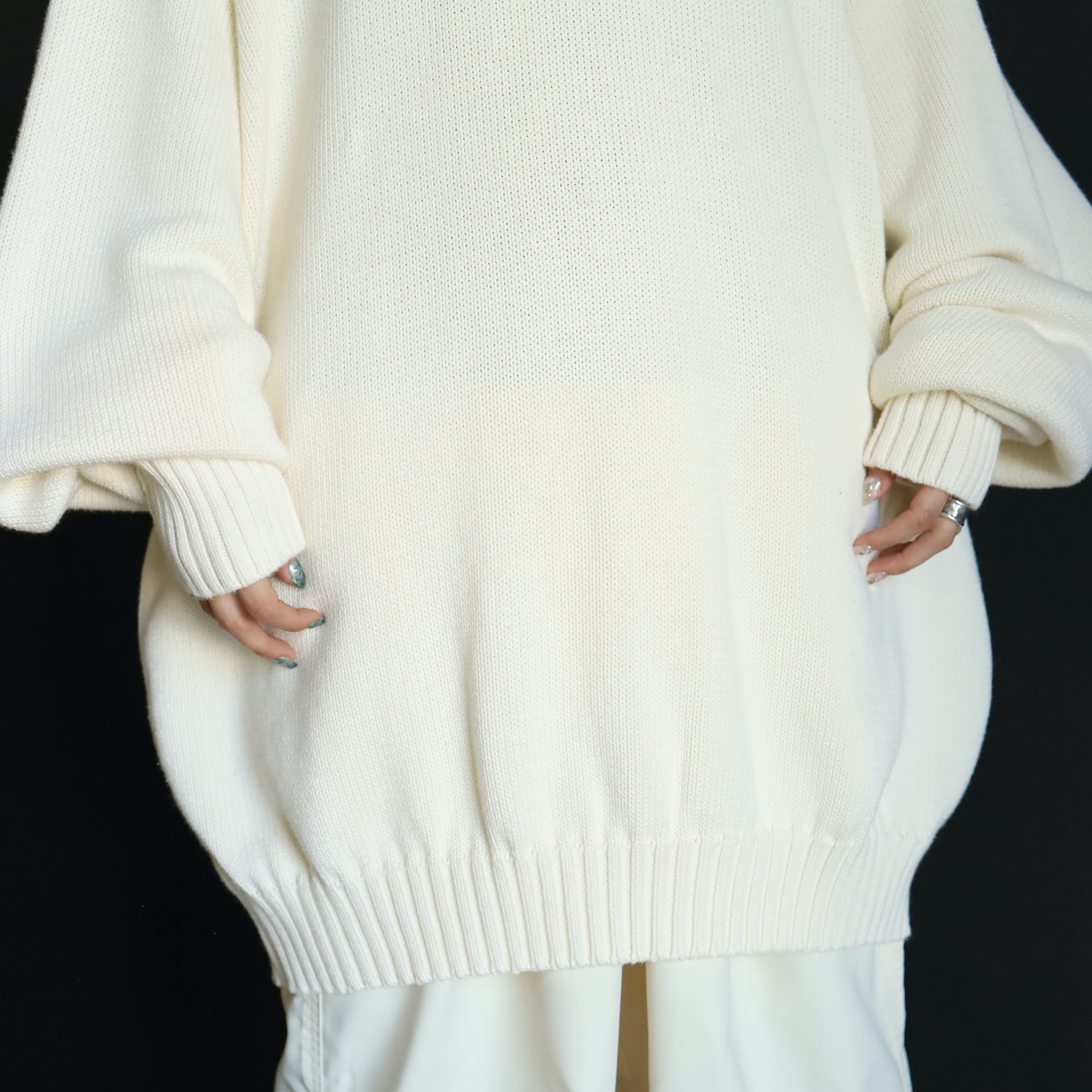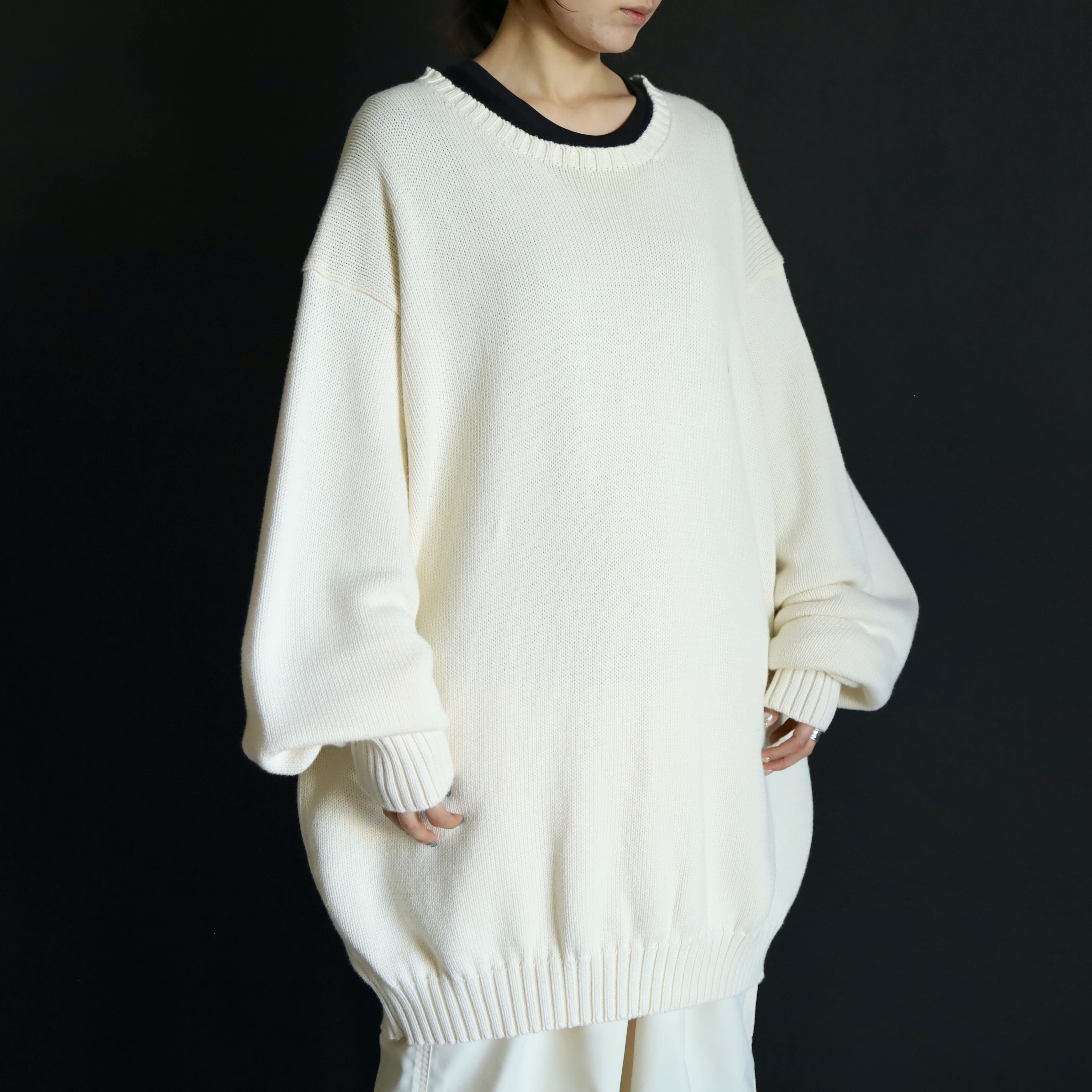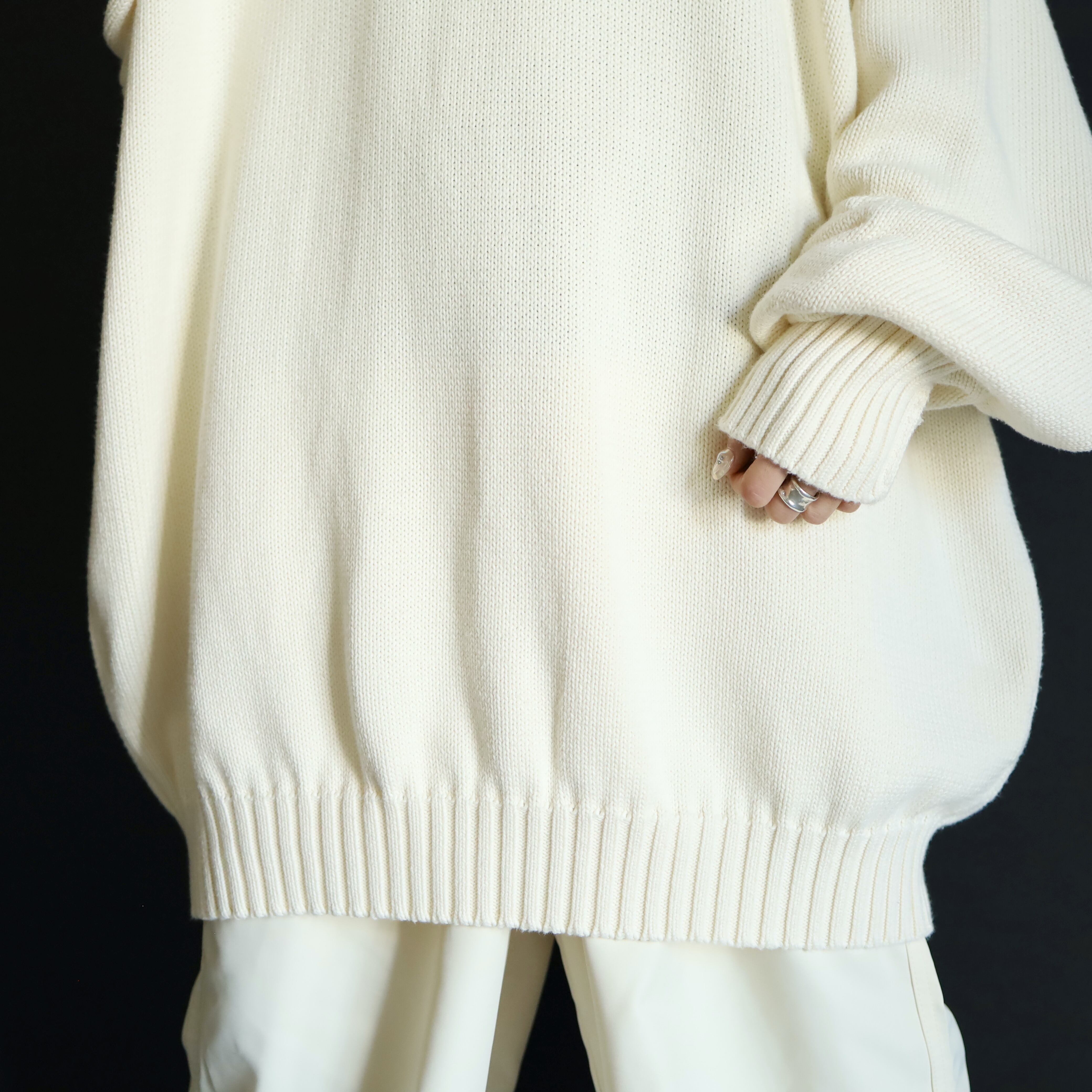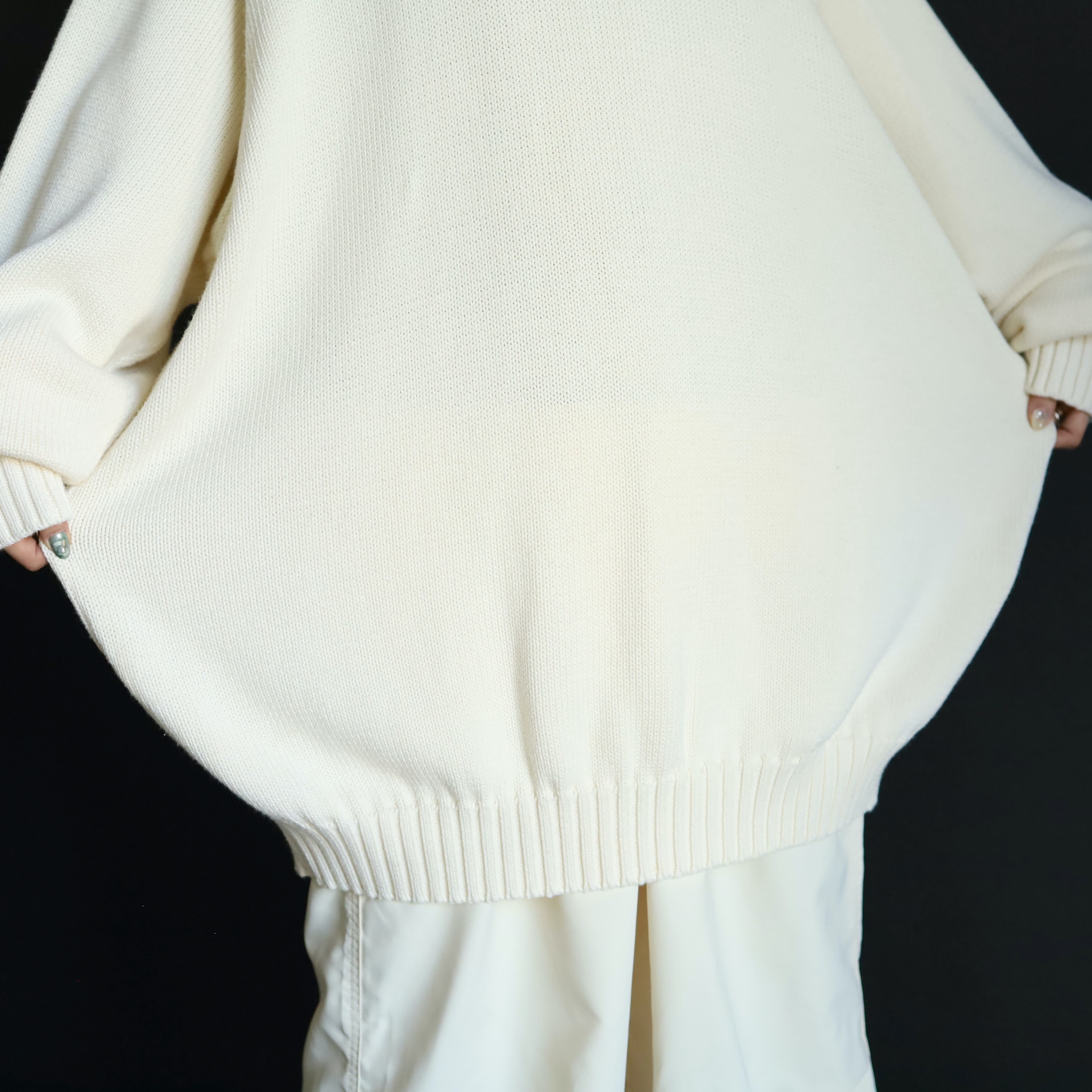 ホワイトカラーのミドルゲージニット.