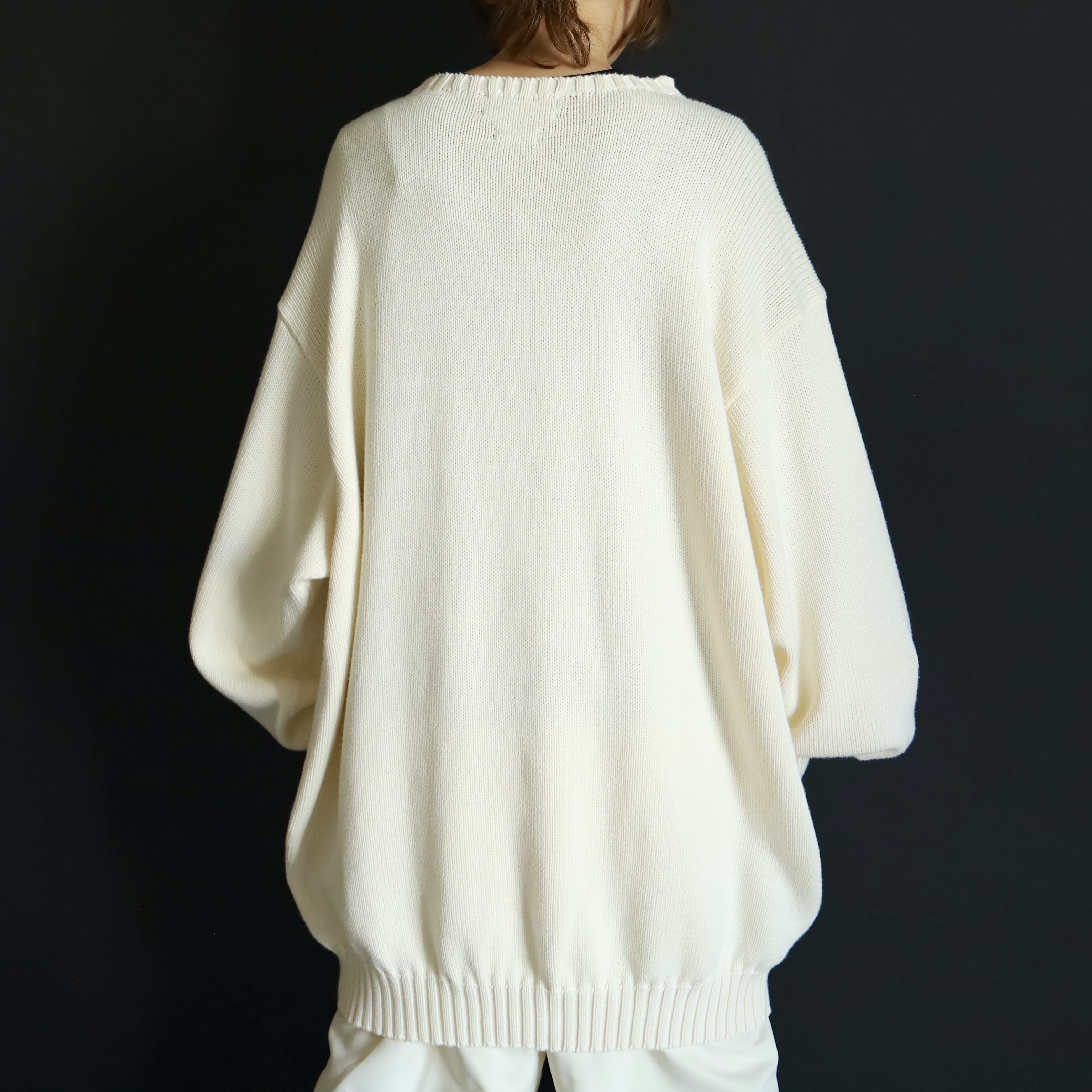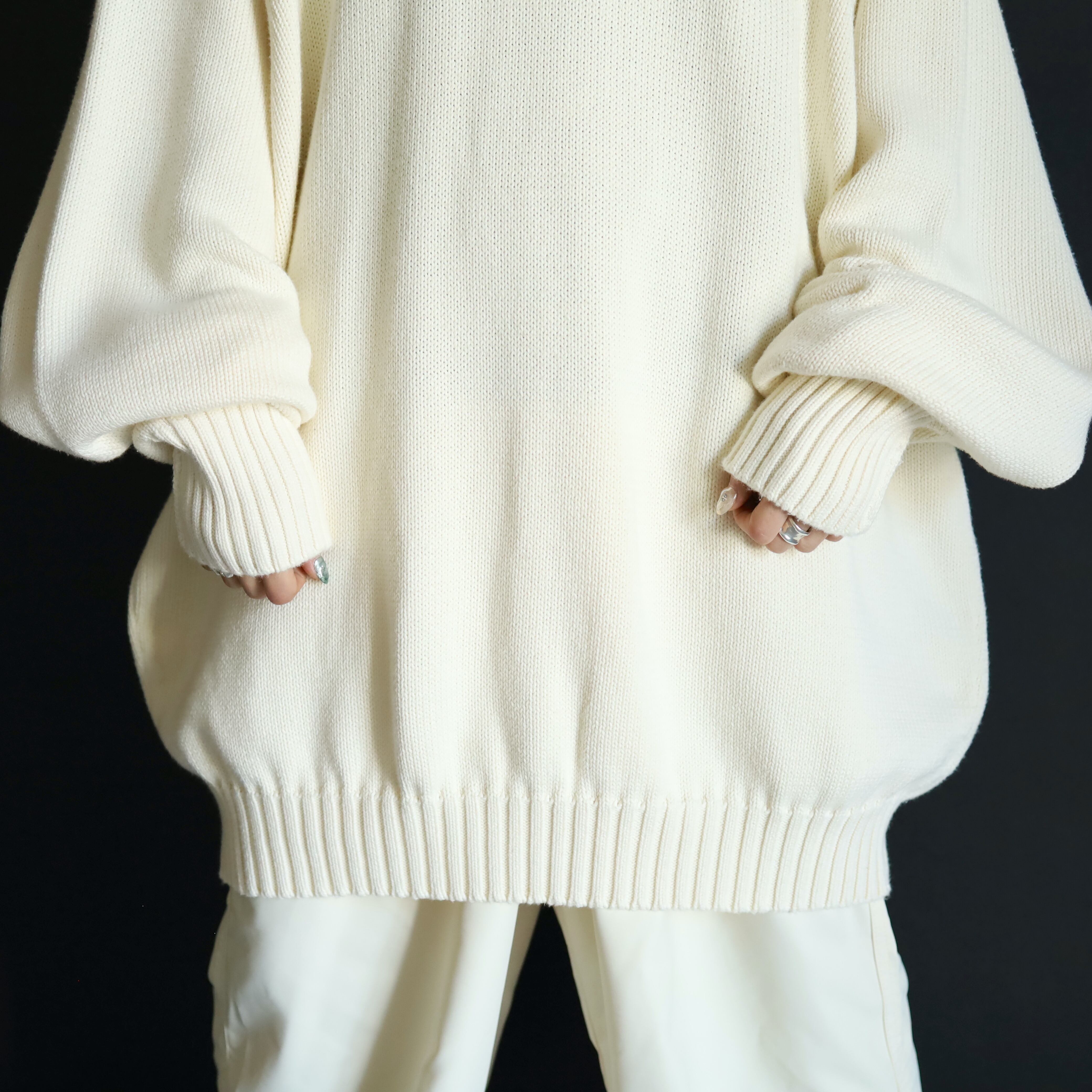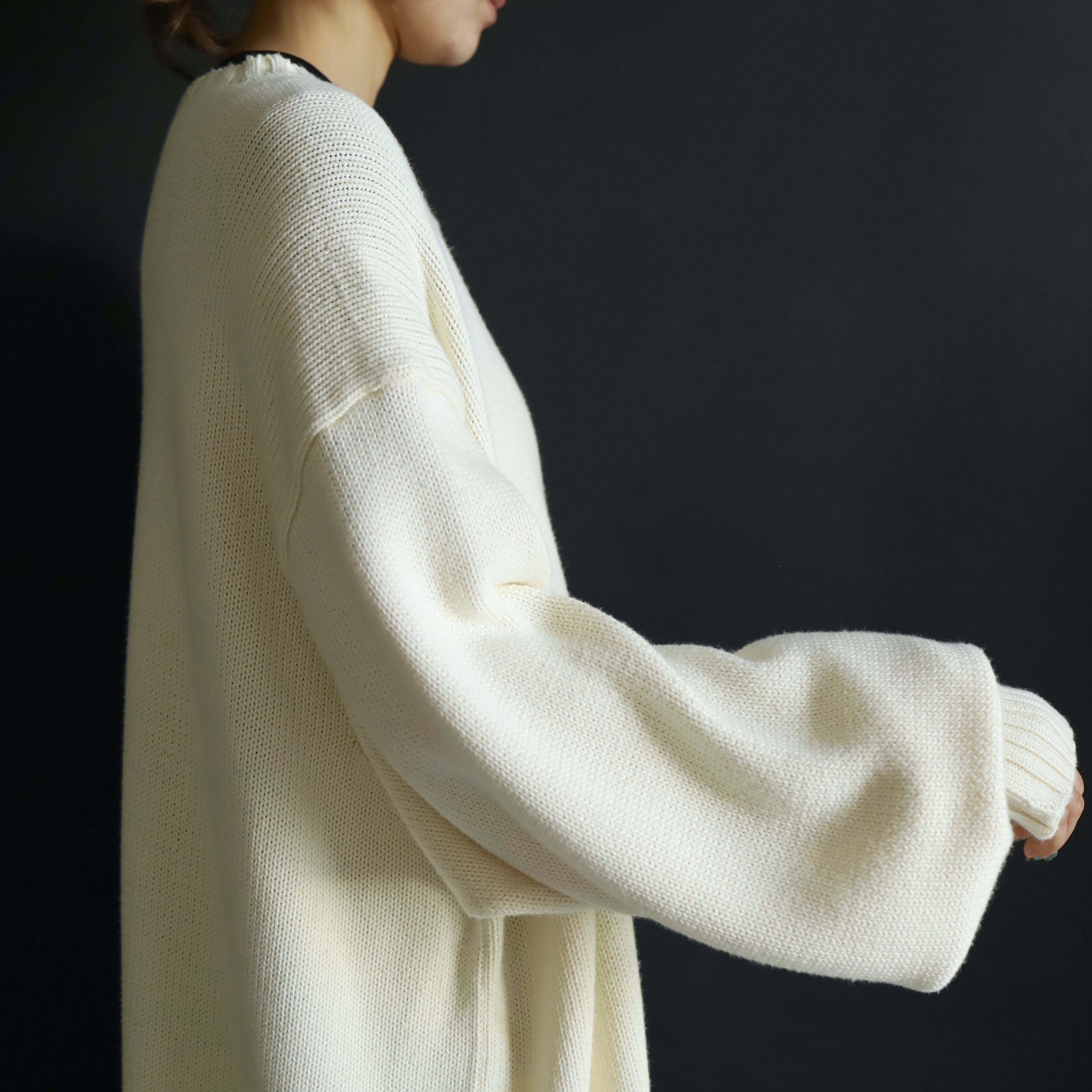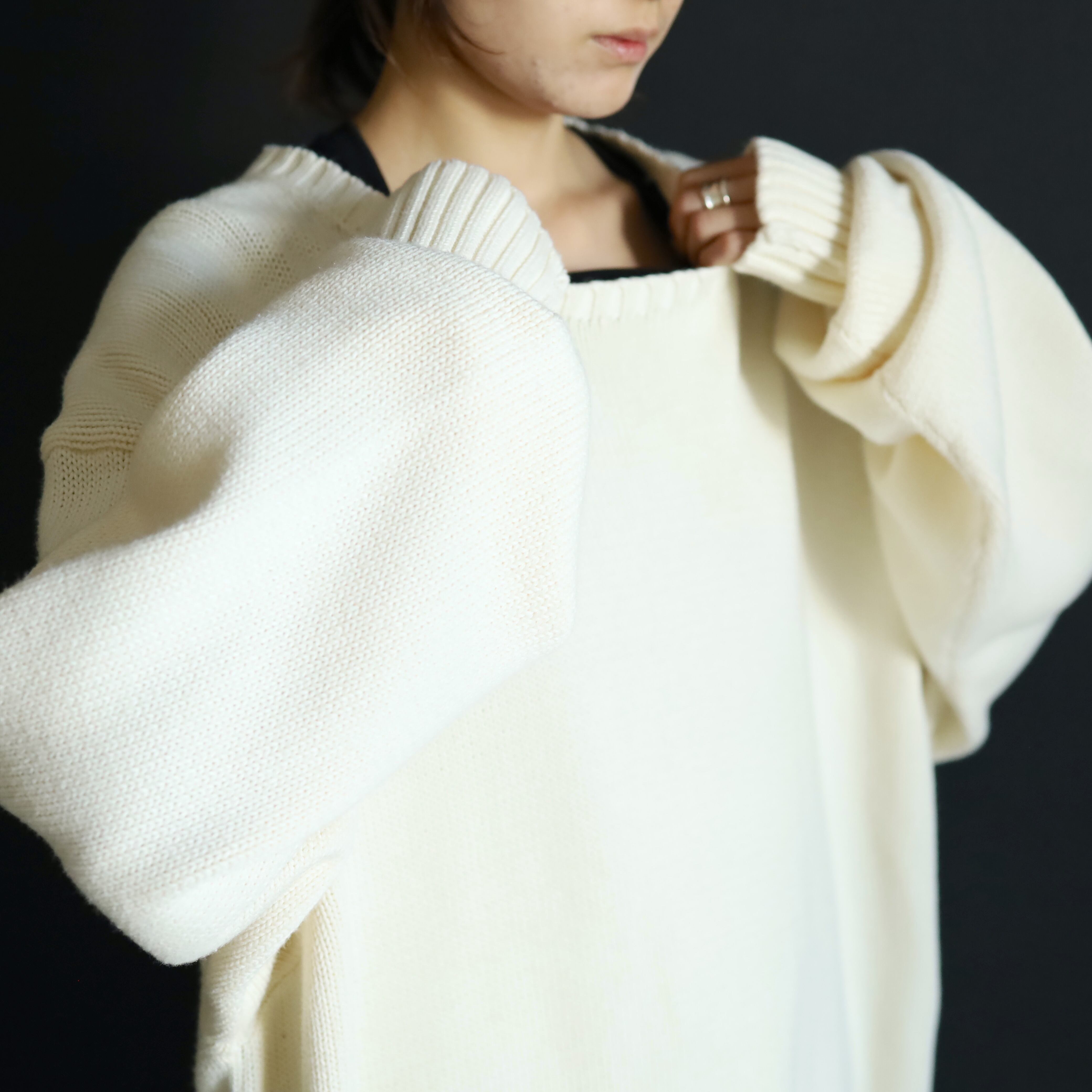 ホワイトカラーのミドルゲージニット.