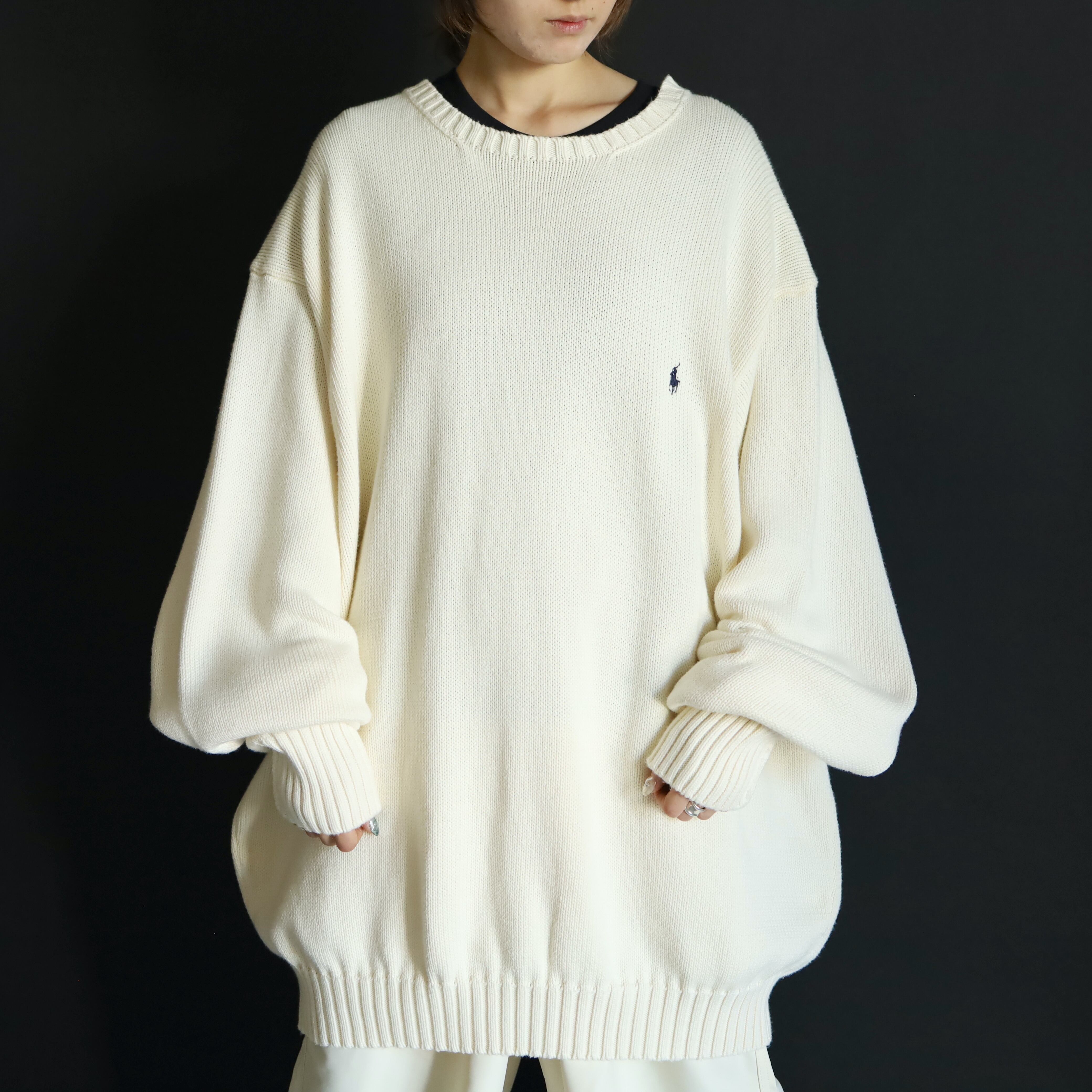 この年代のPoloのホワイトニット,汚れのある場合が多く,コンディションいいモノって少ないんですよね.