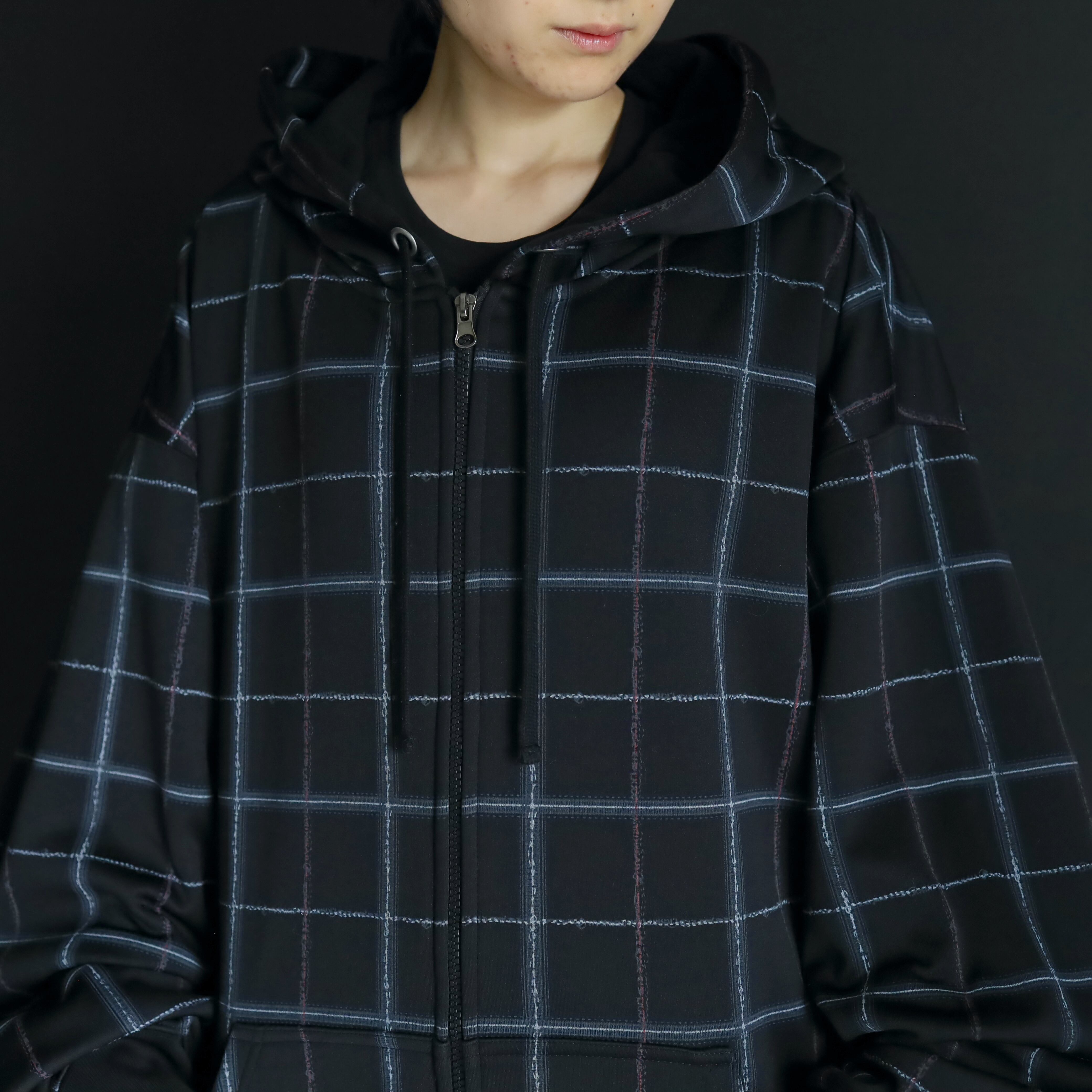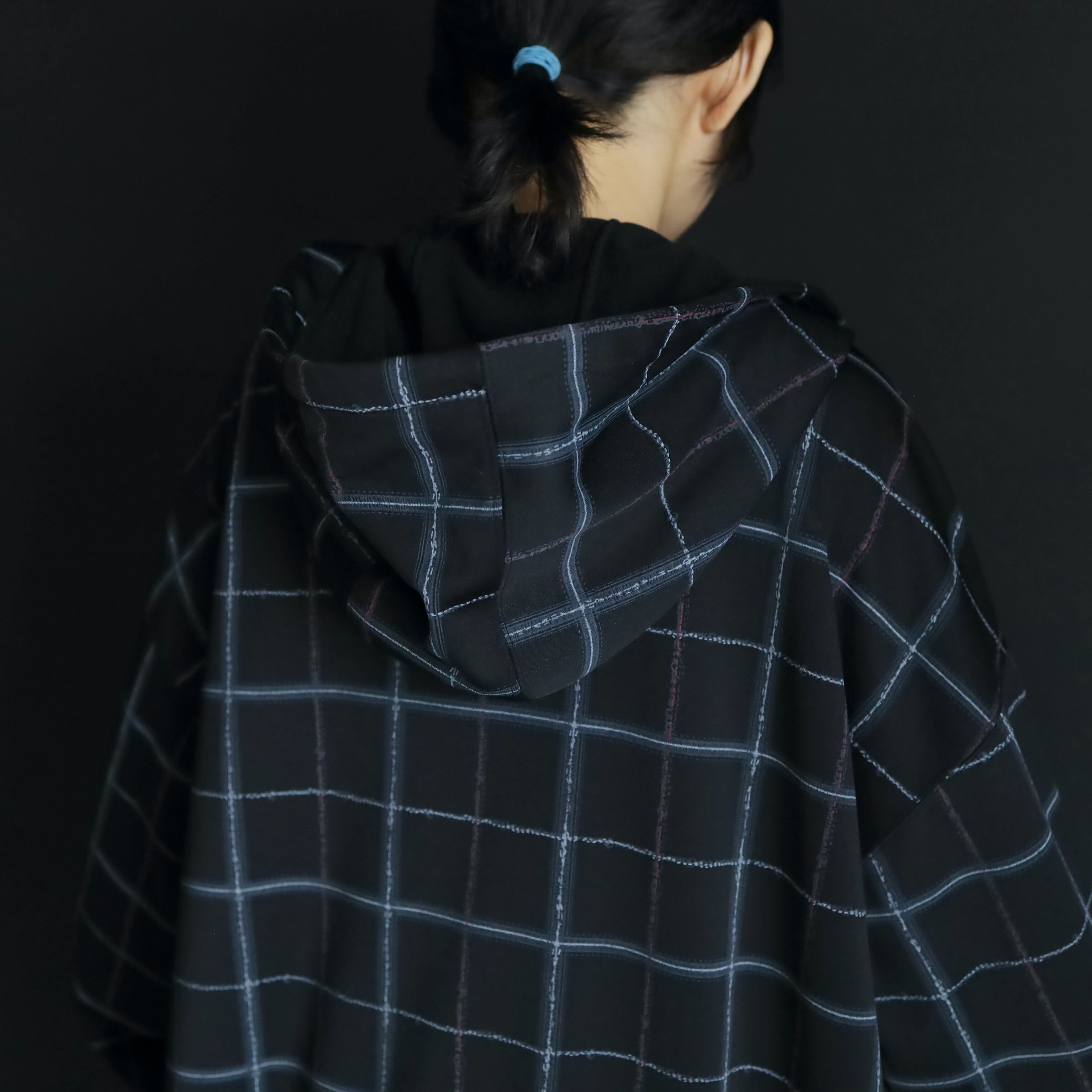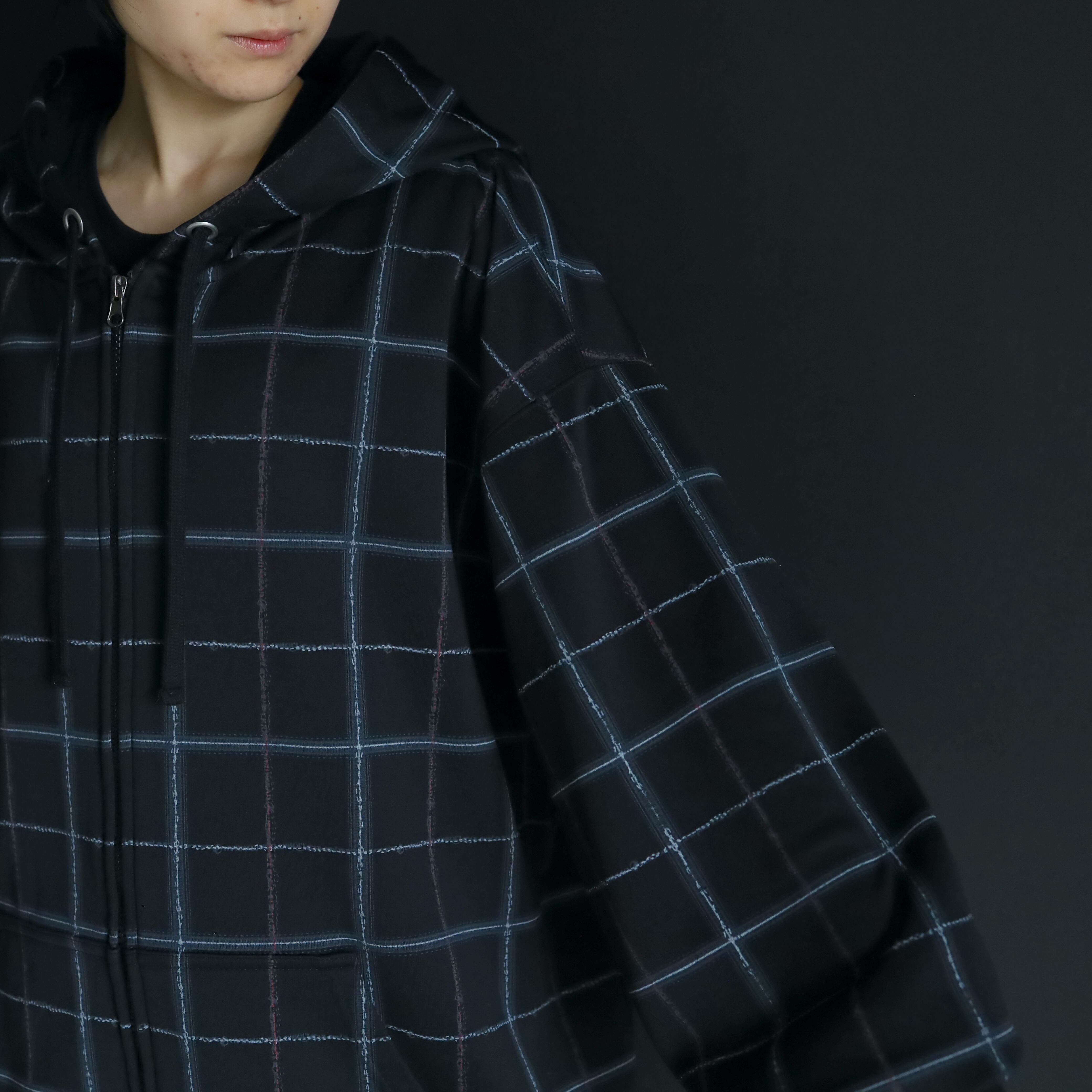 カジュアルな印象の多いスウェットパーカーですが,柄,生地感ともに変化球的な一枚.