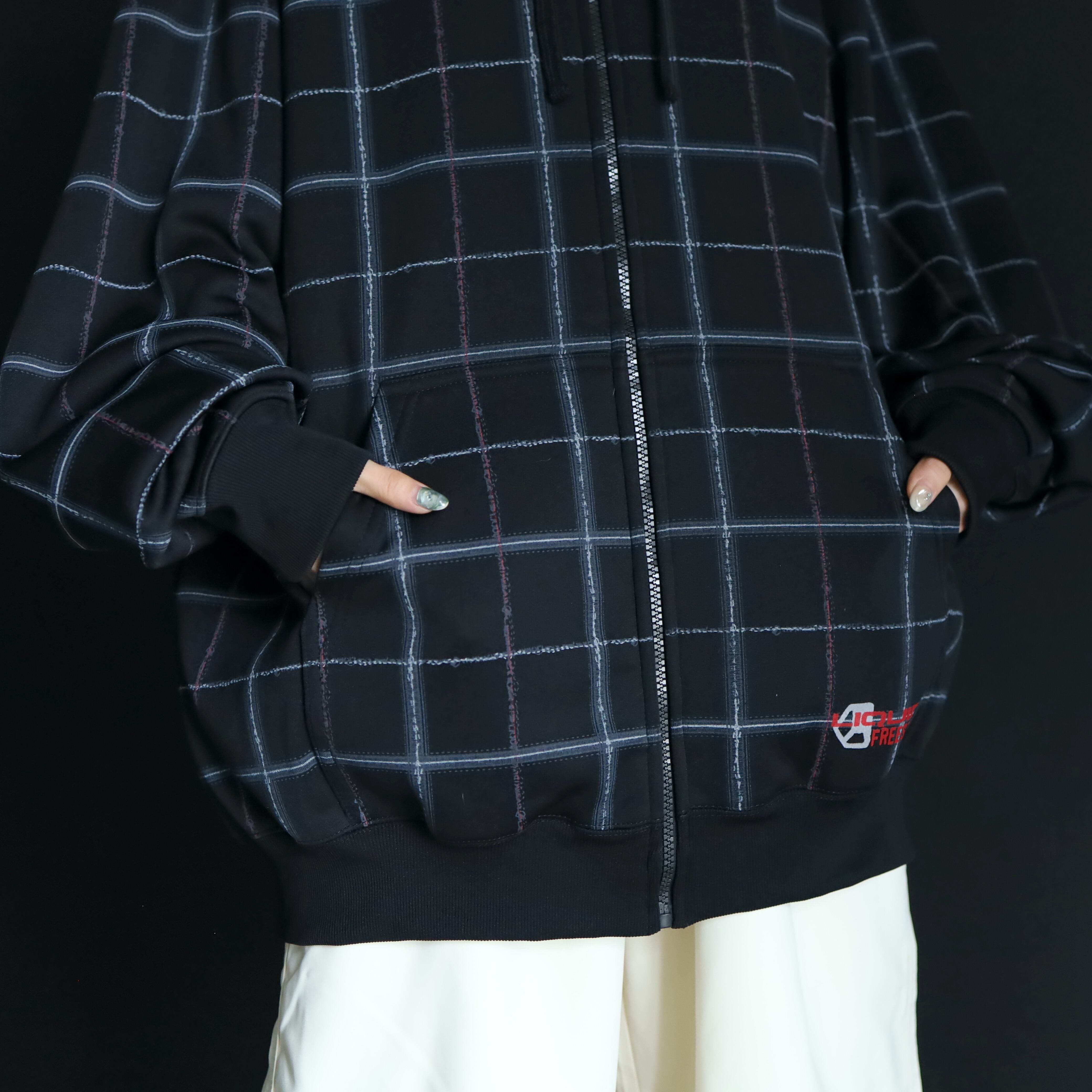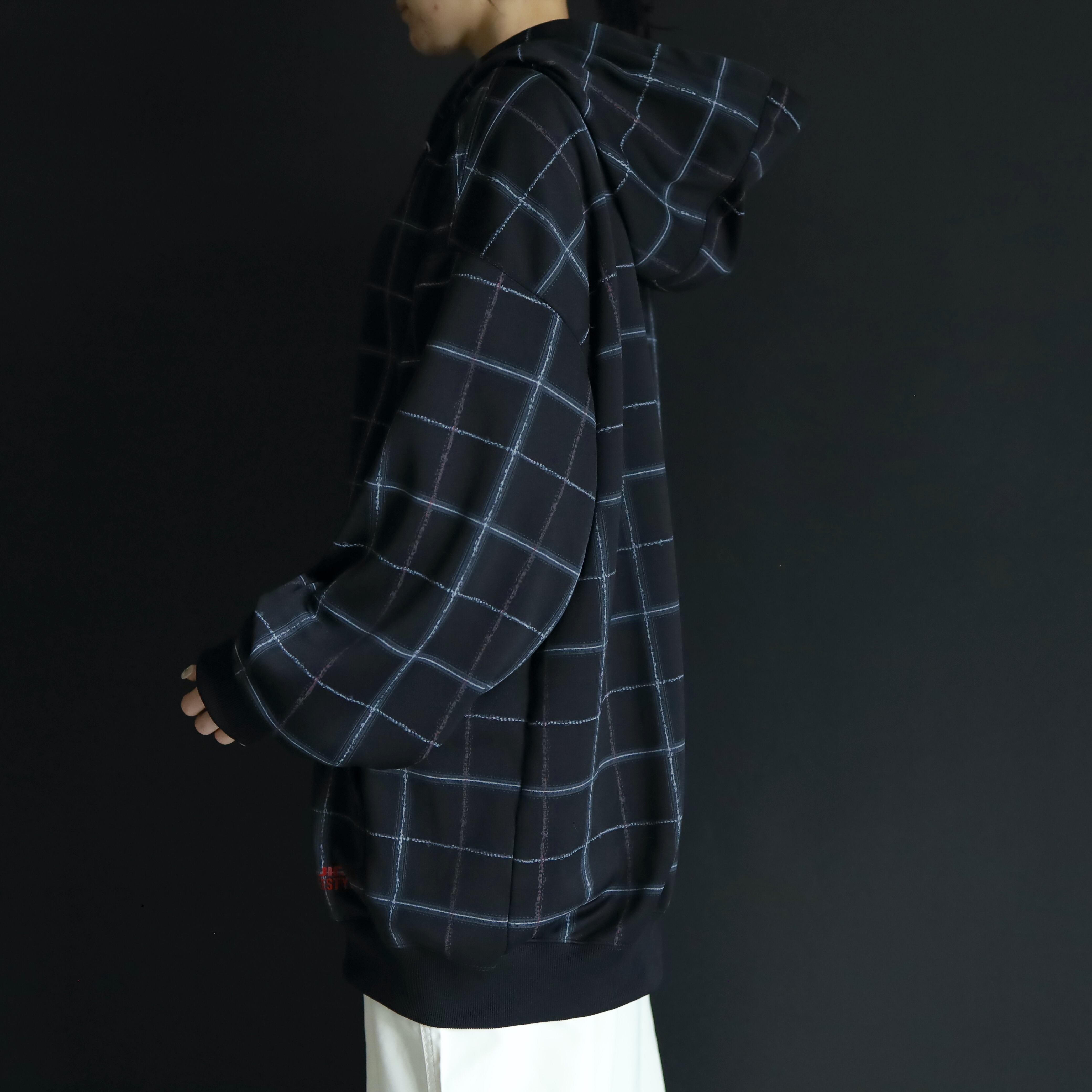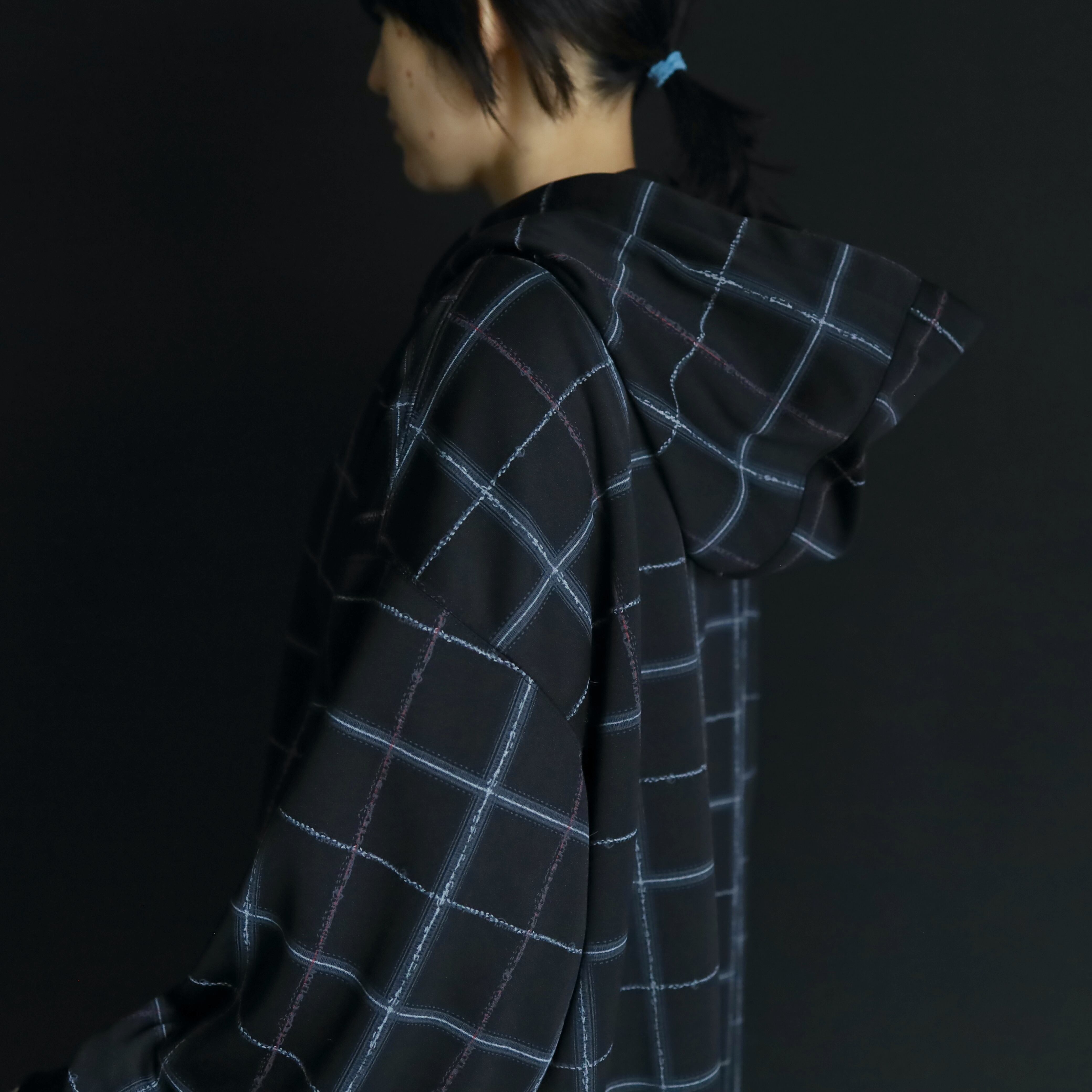 カジュアルな印象の多いスウェットパーカーですが,柄,生地感ともに変化球的な一枚.