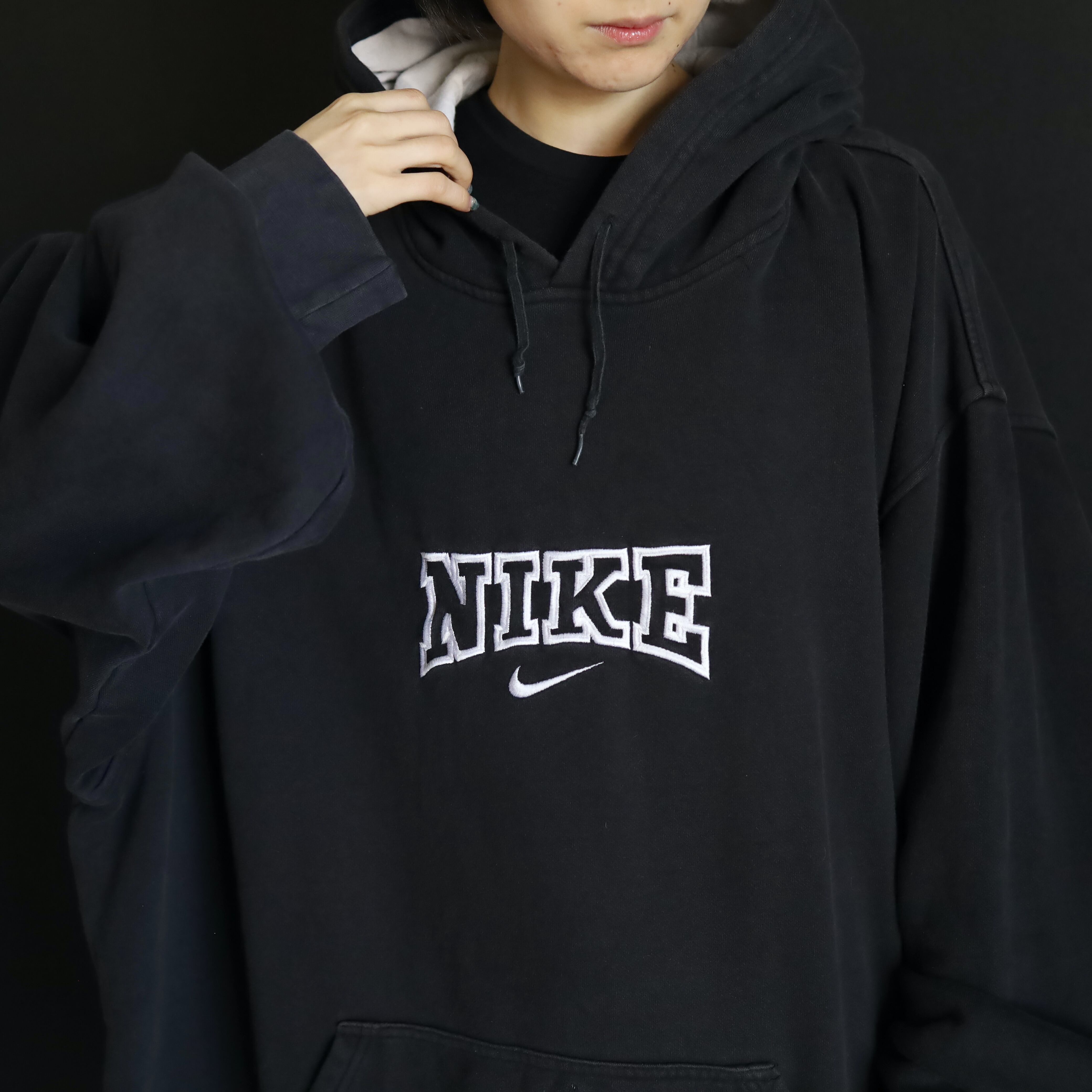 前身頃中央にはNIKEとスウッシュロゴの刺繍.