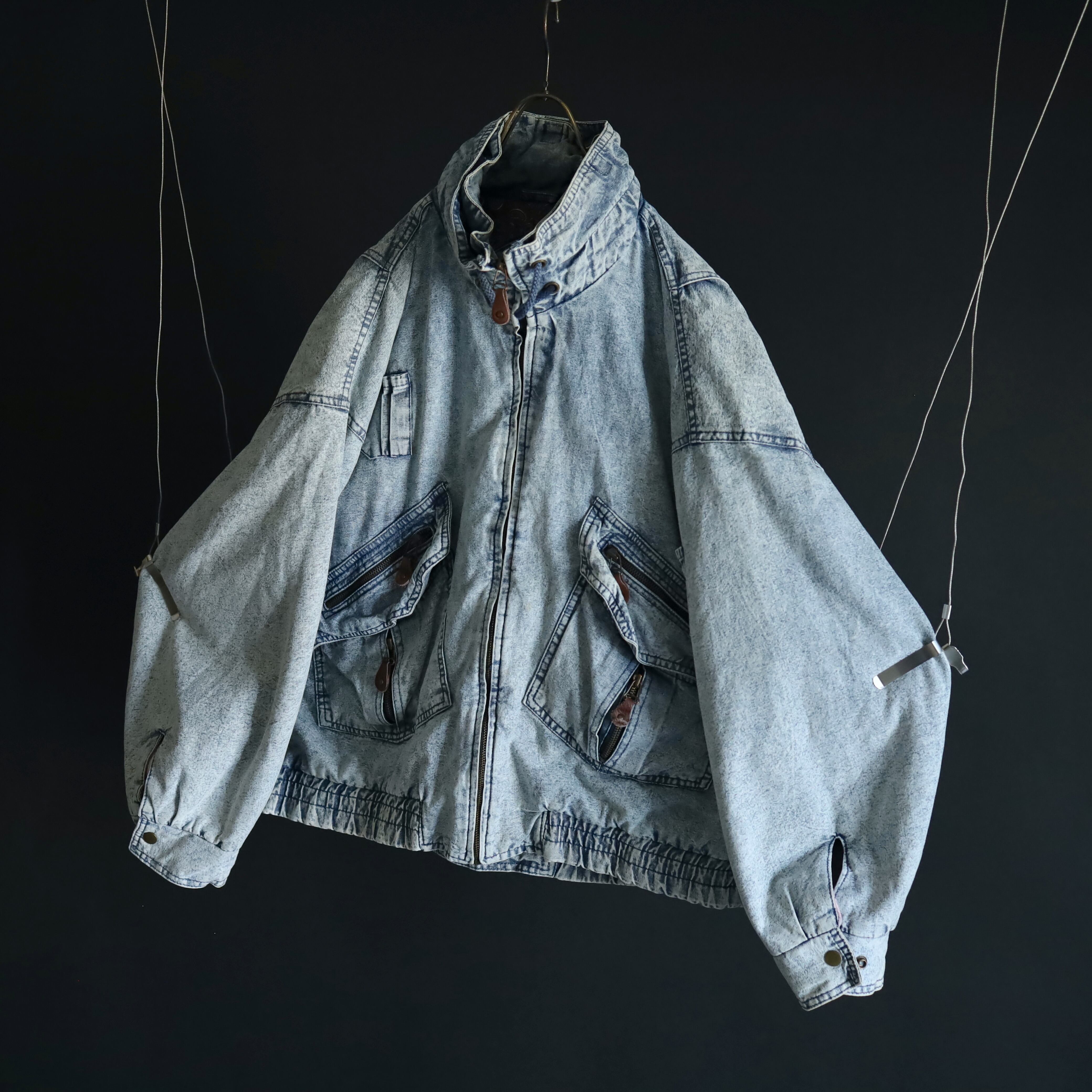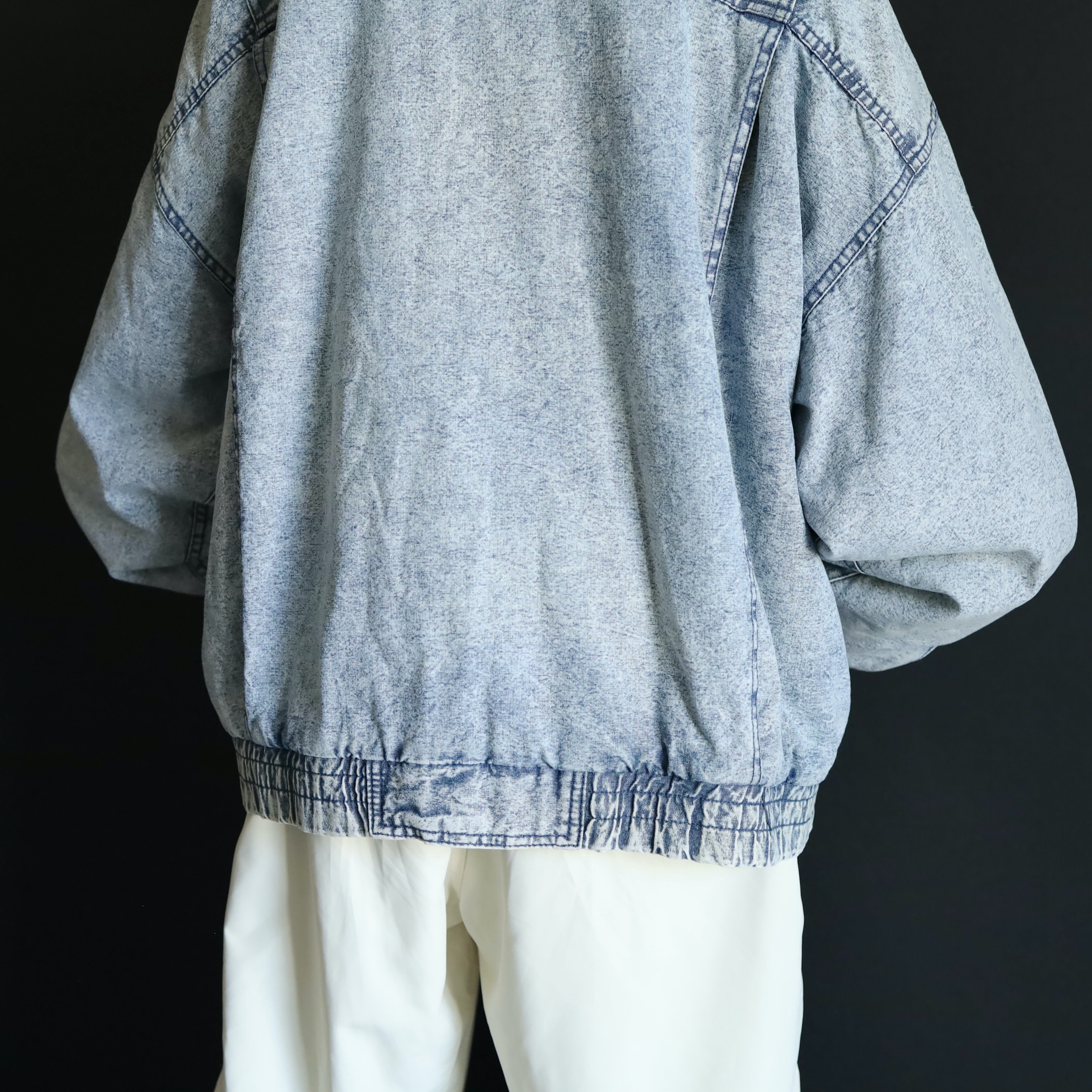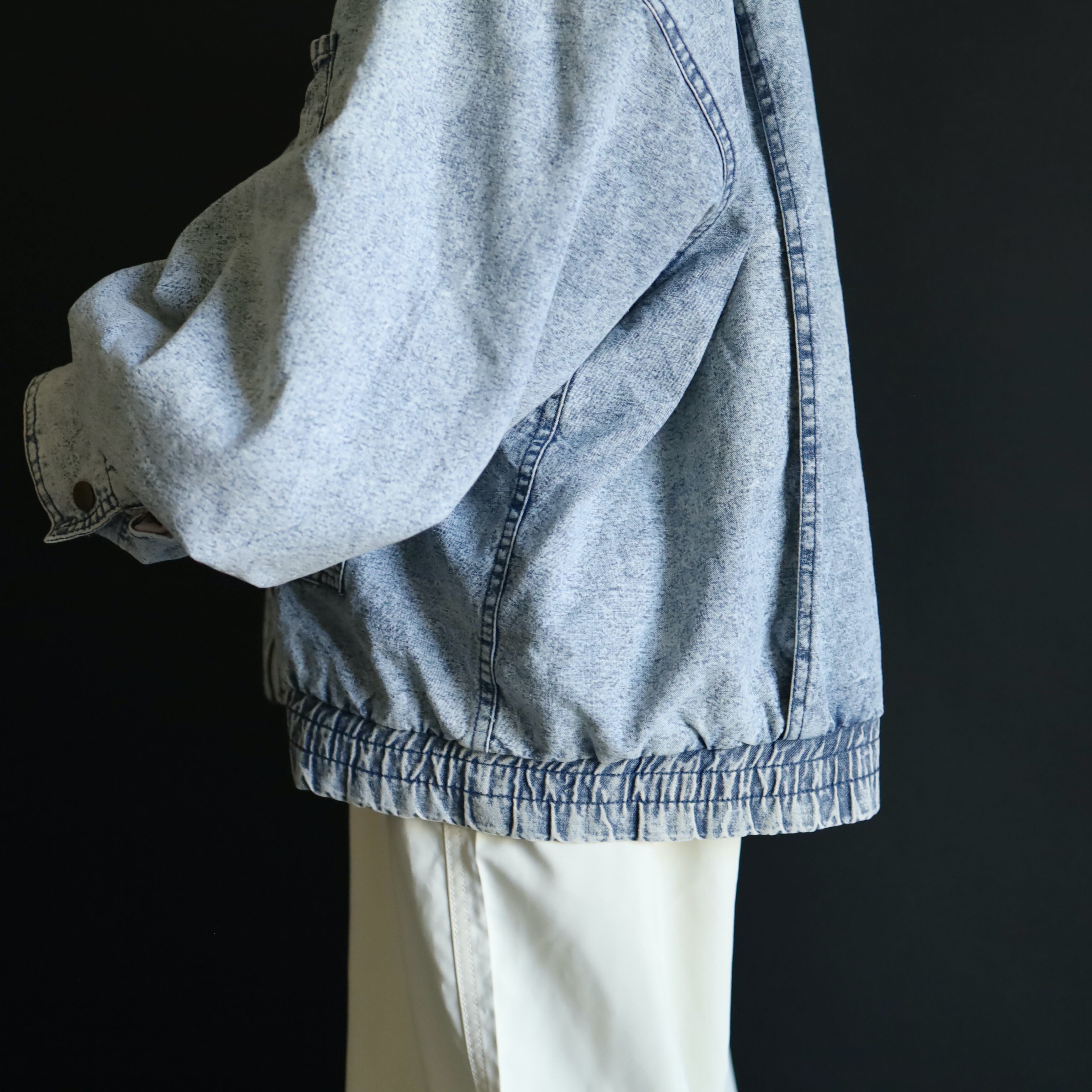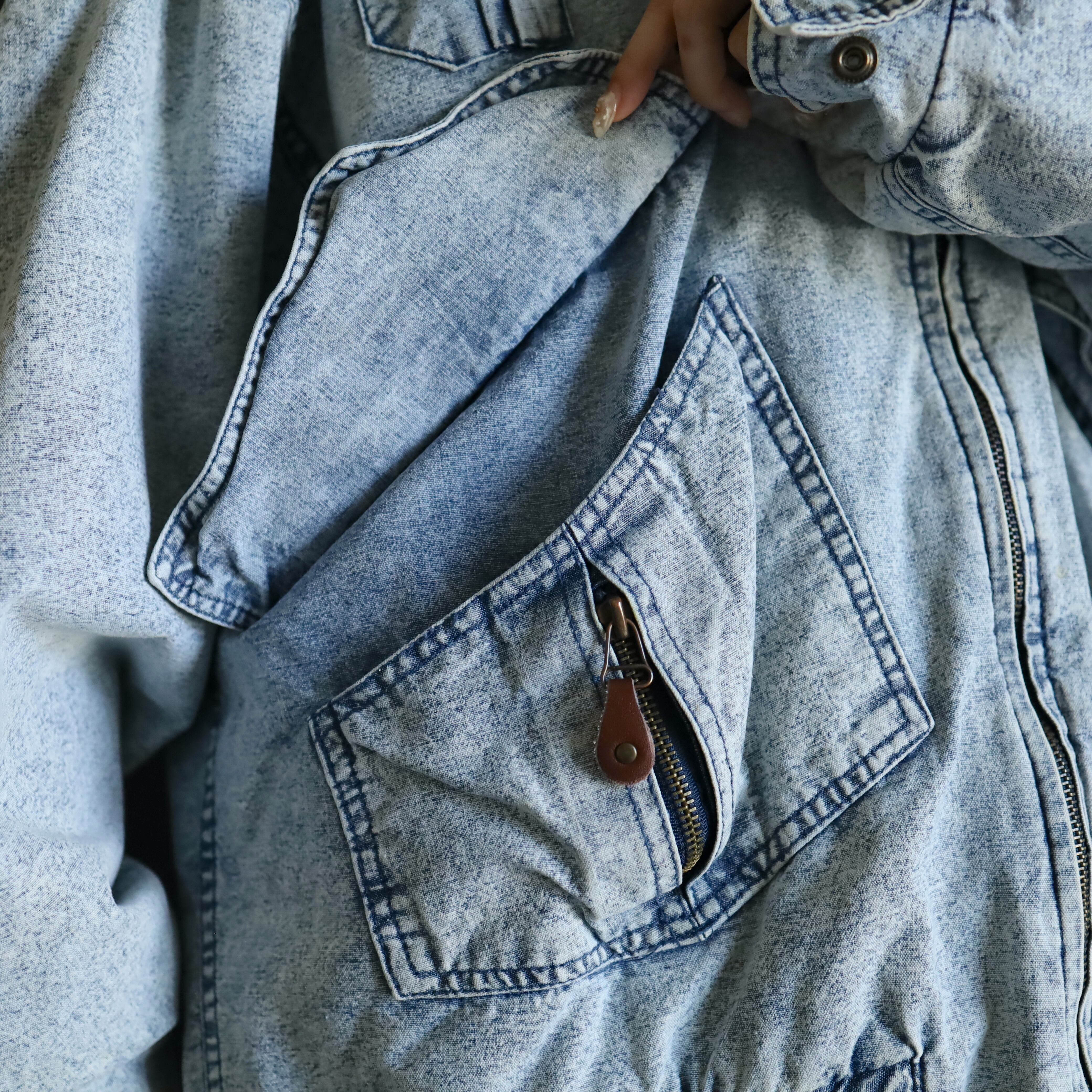 淡いトーンのケミカルウォッシュデニムブルゾン.