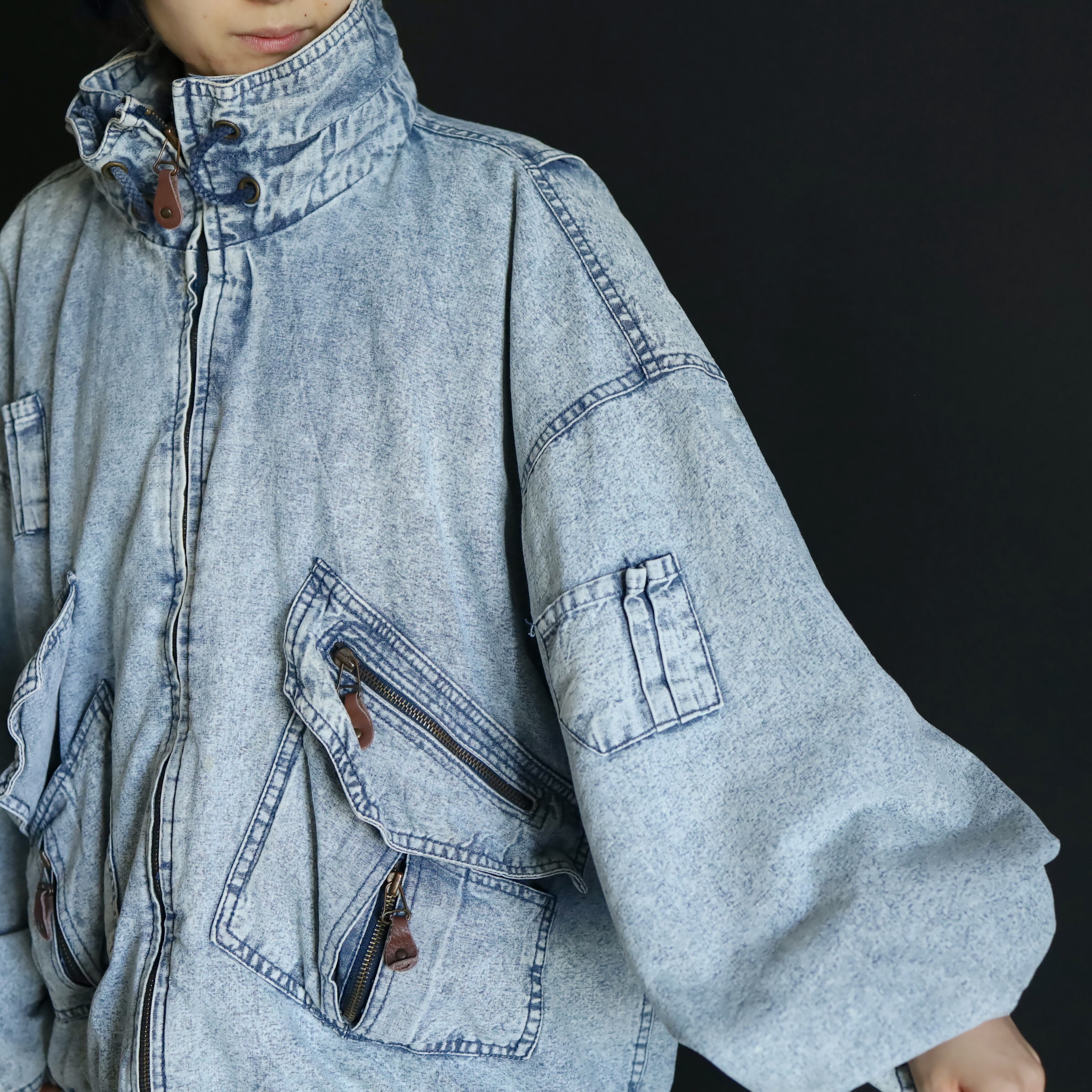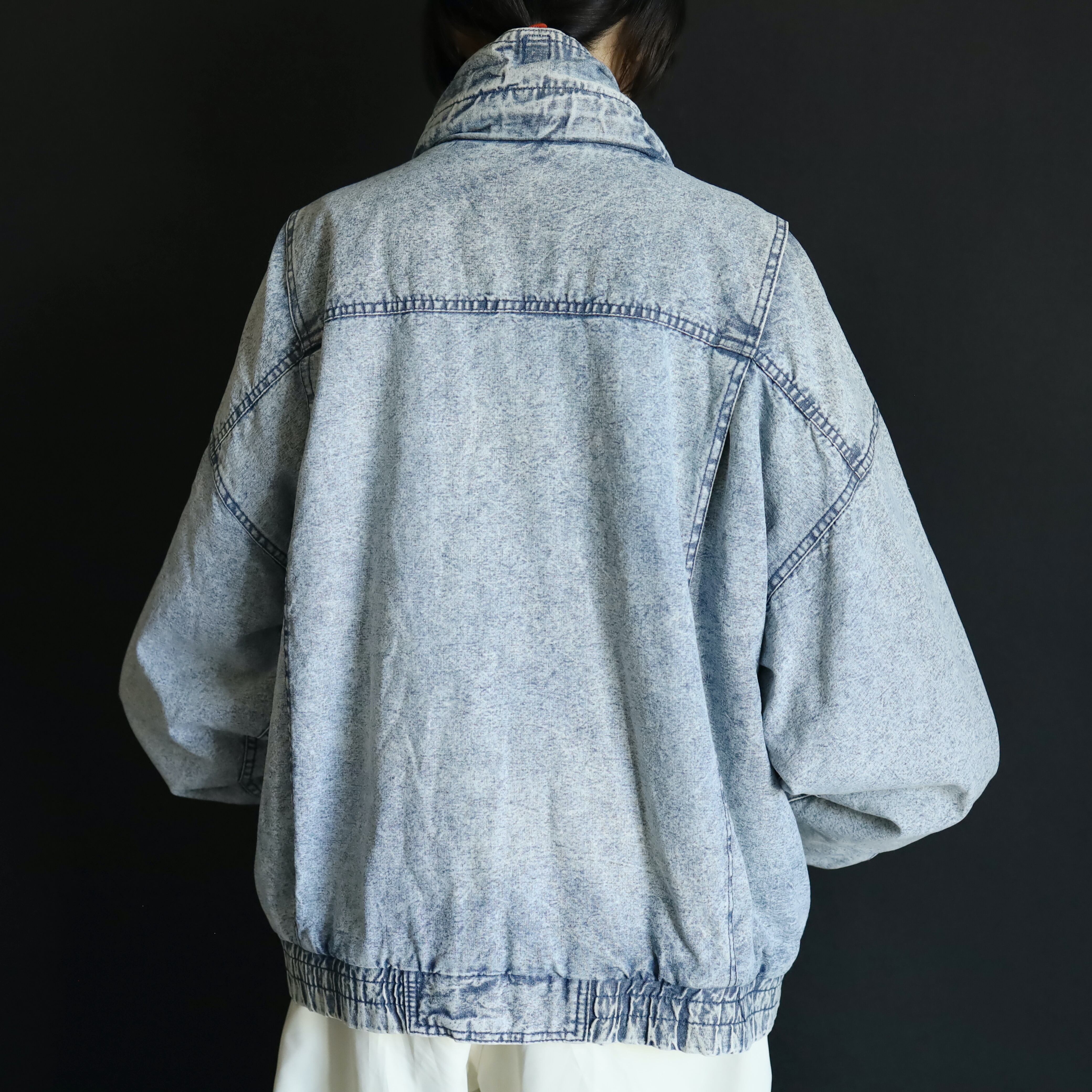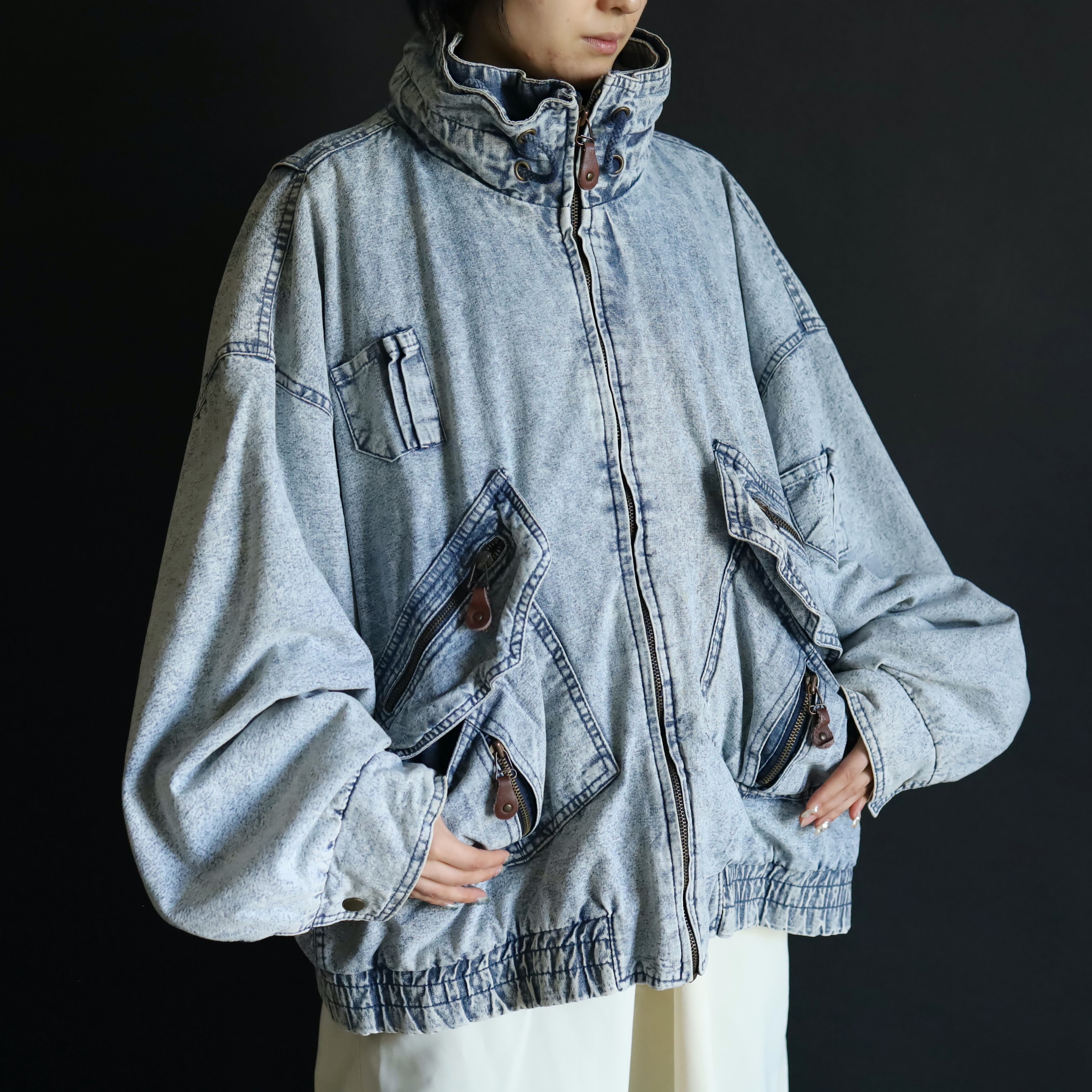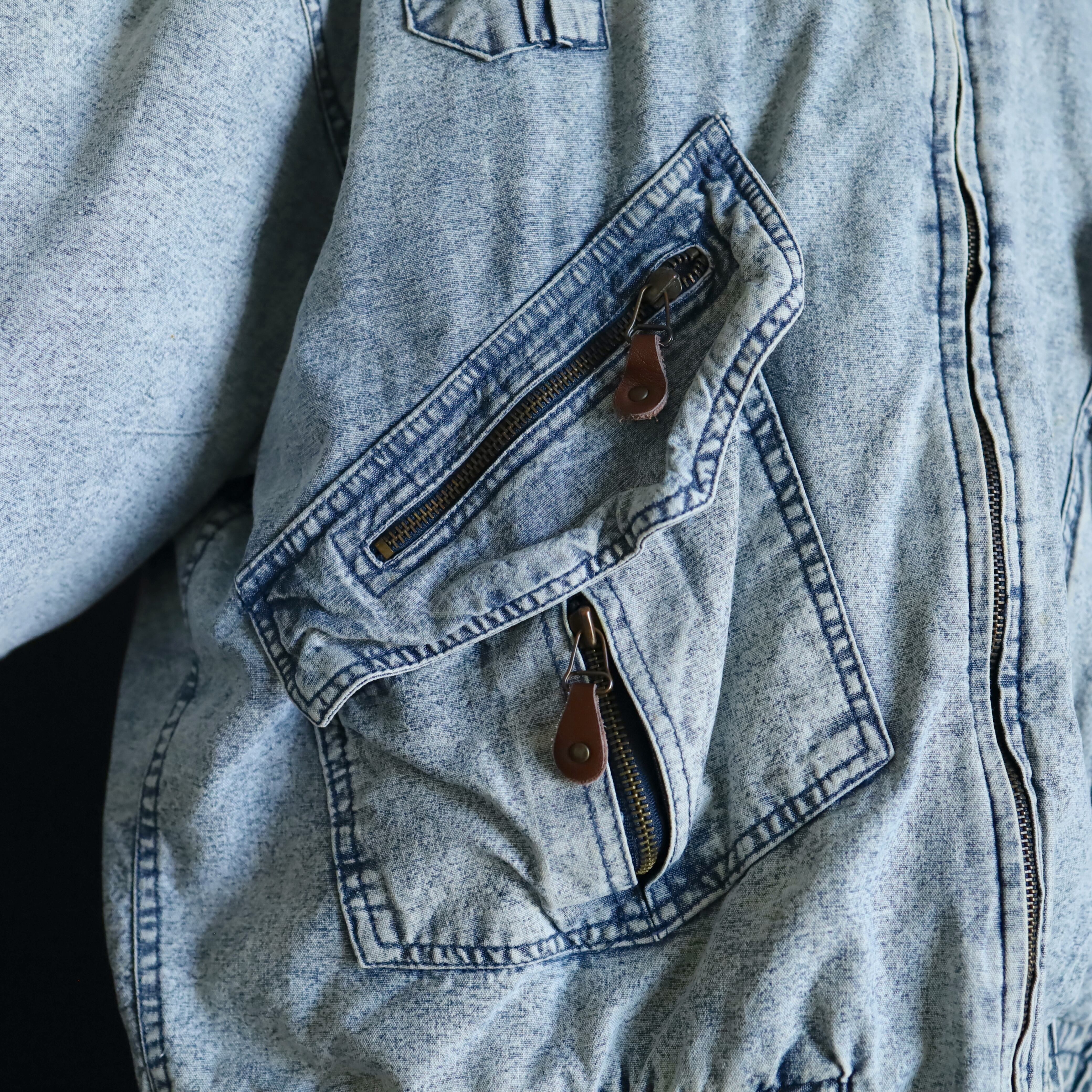 淡いトーンのケミカルウォッシュデニムブルゾン.