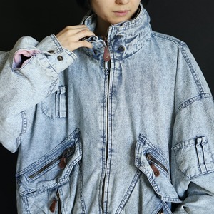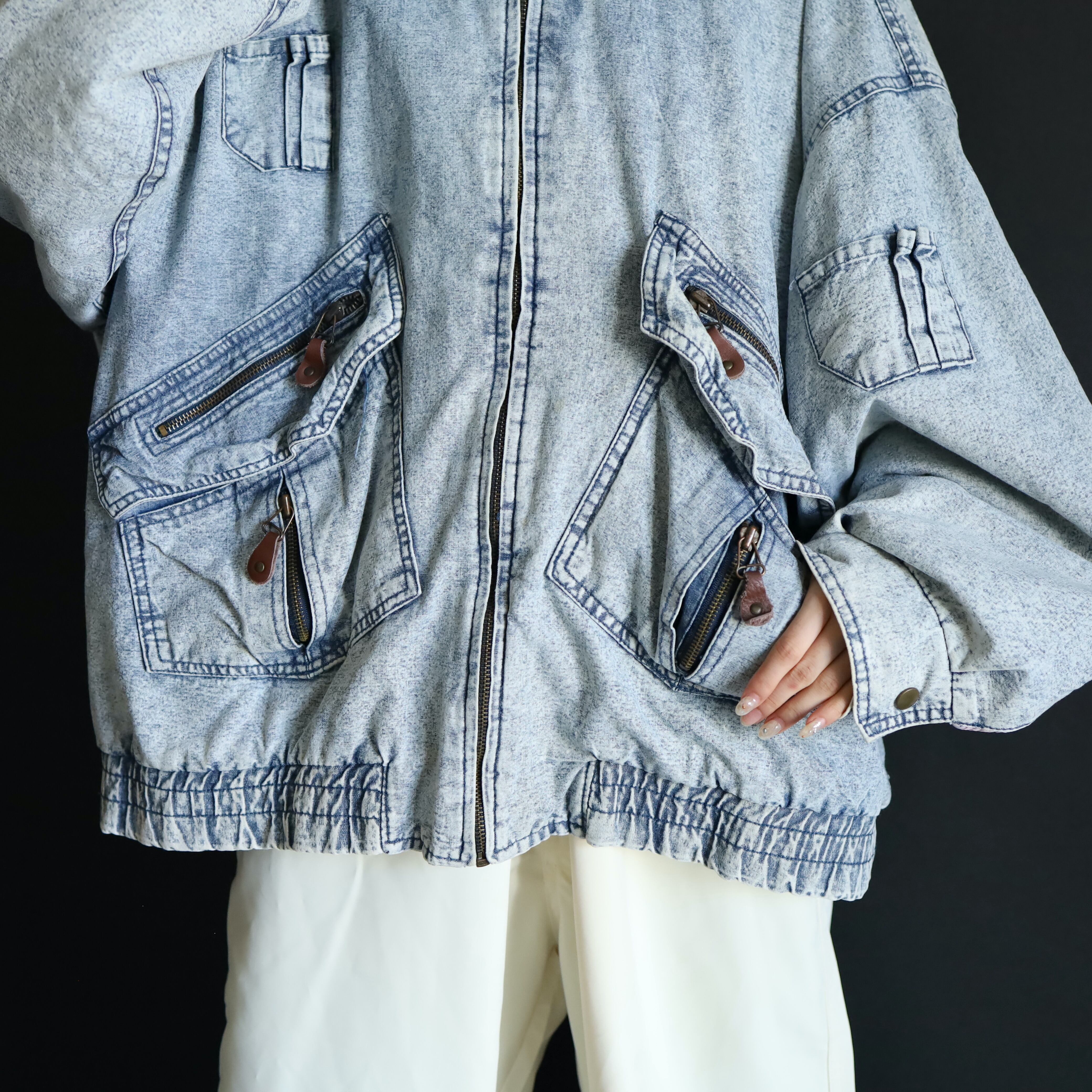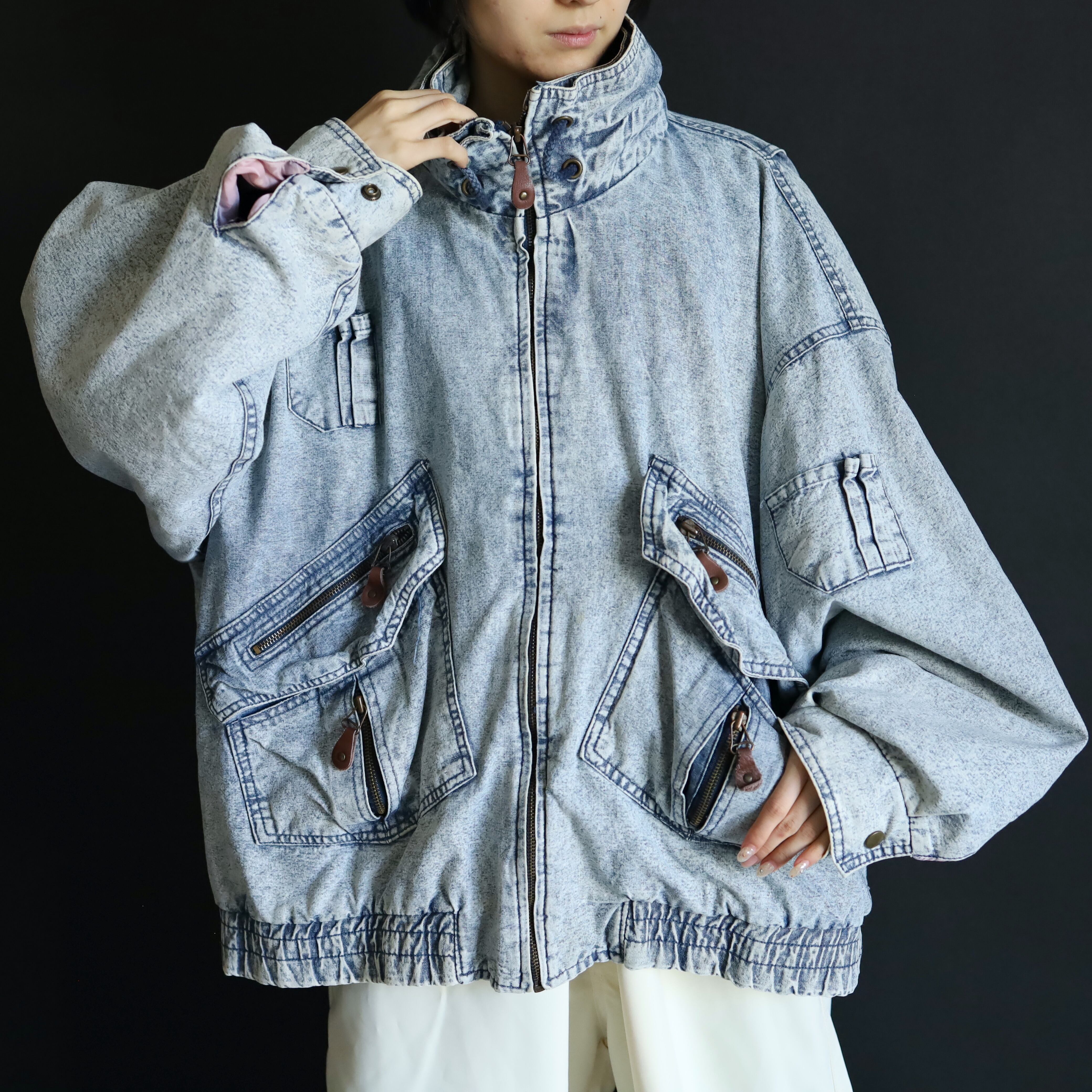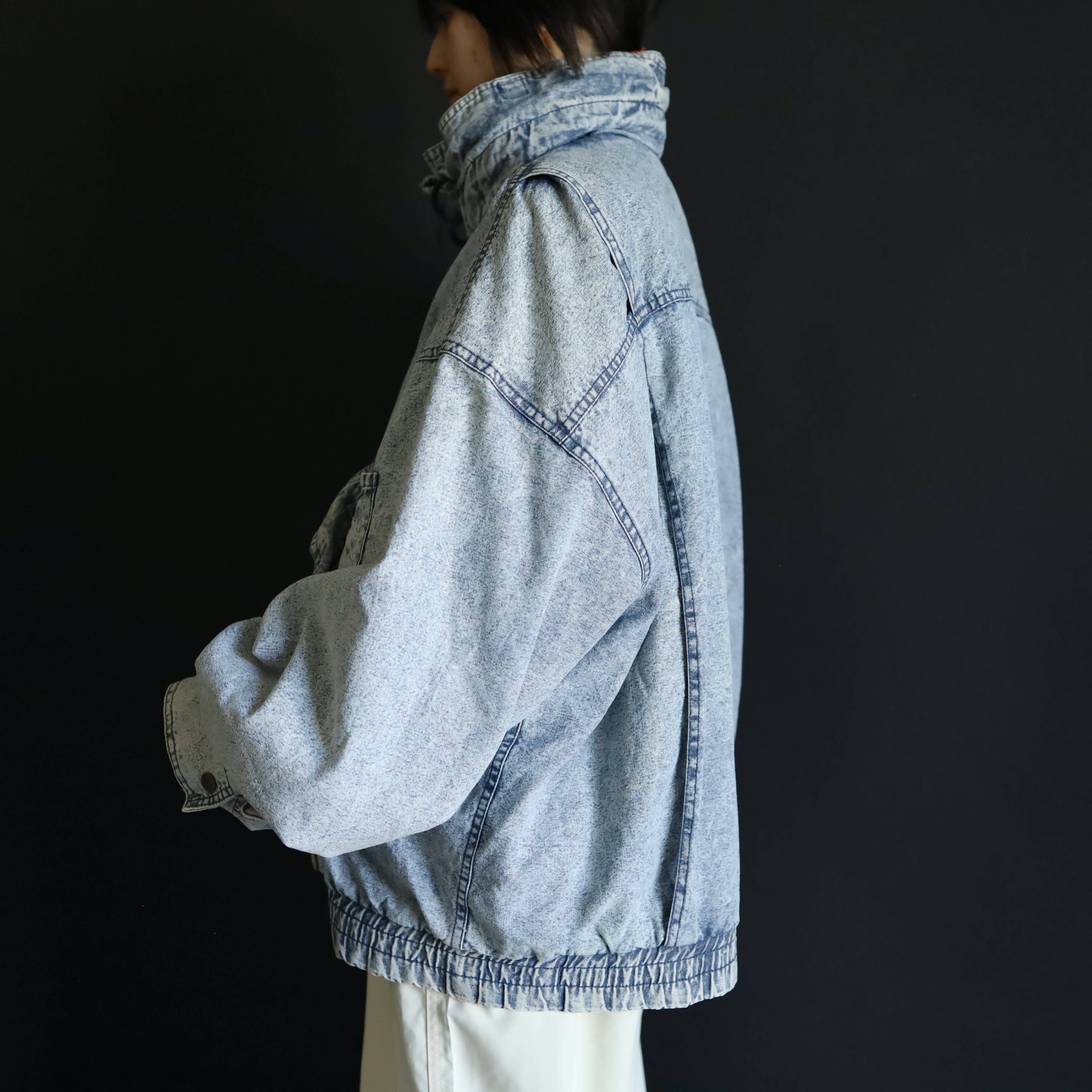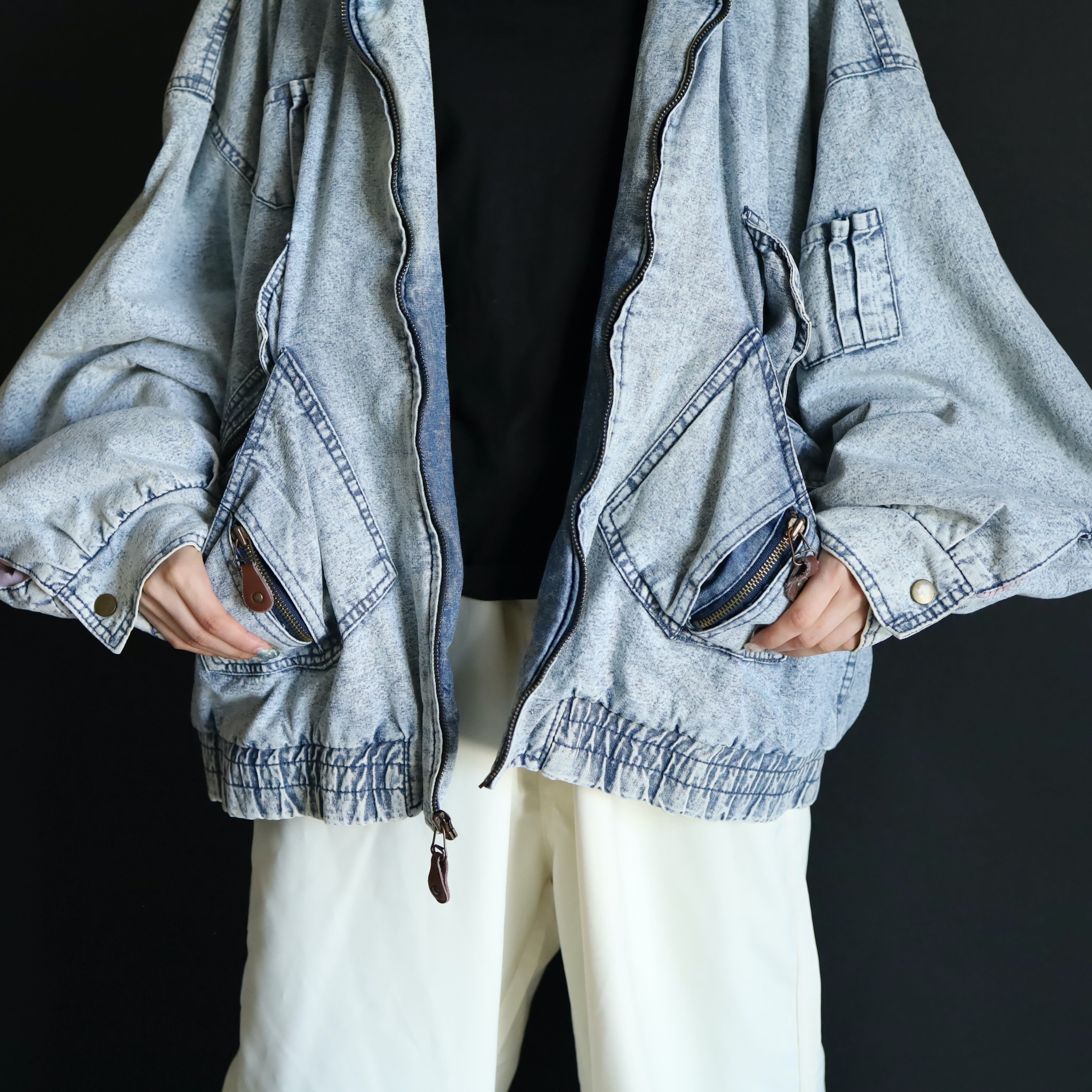 淡いトーンのケミカルウォッシュデニムブルゾン.