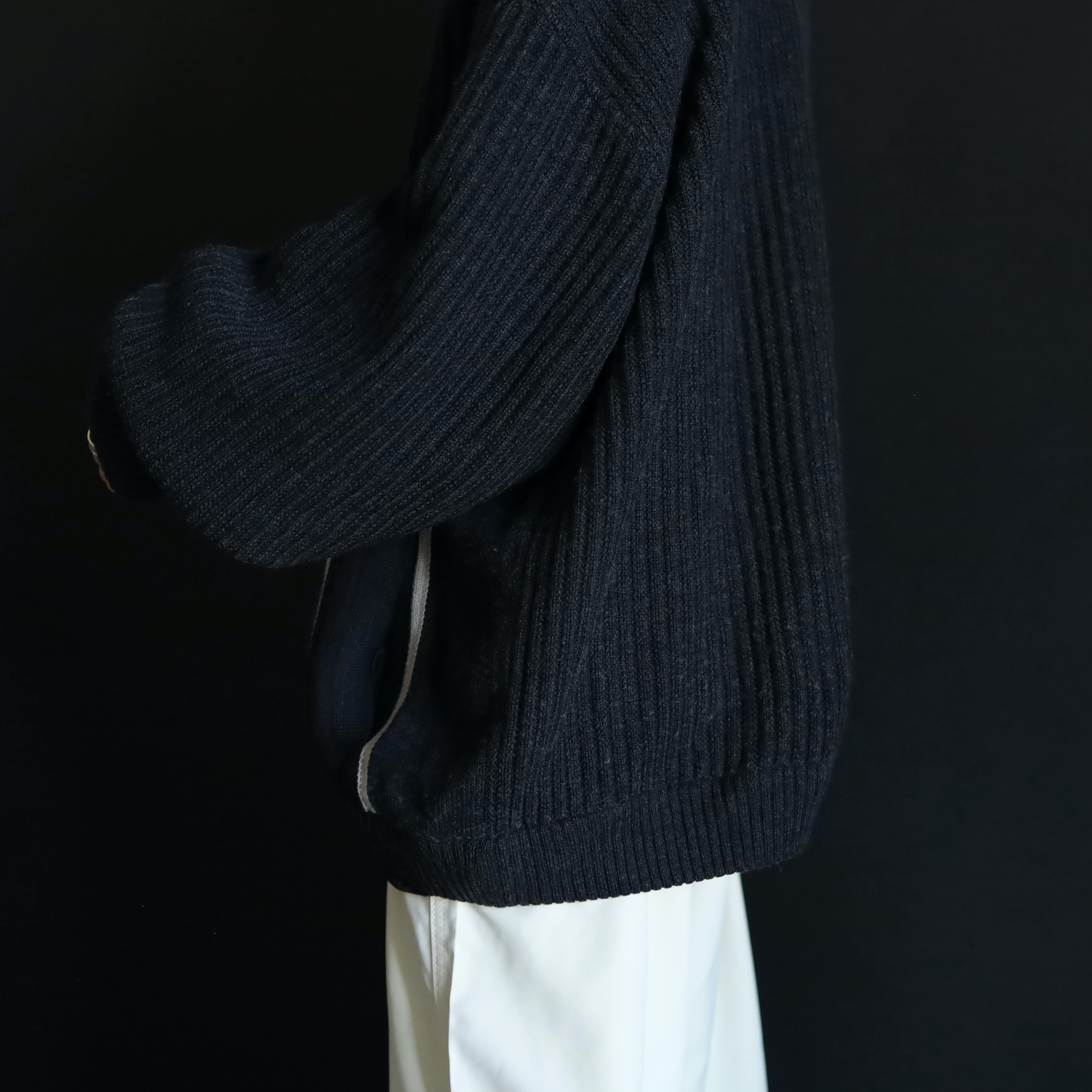 ハイネック,ジップアップ仕様の,人気の高いドライバーズニットに近しいディテール.
