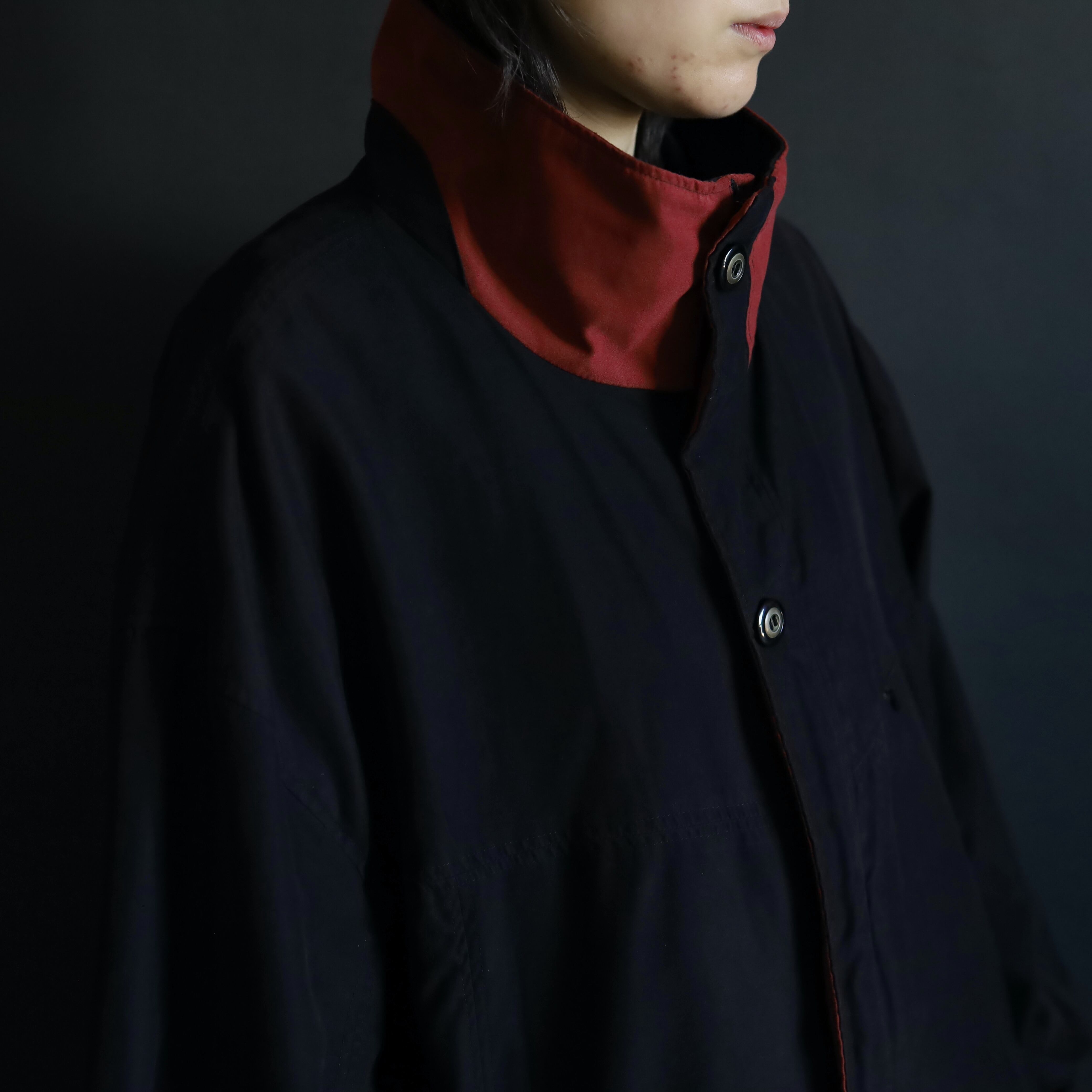 ブラックカラーのスムースポリボディをベースに,ハイネック部がくすみレッド切替.