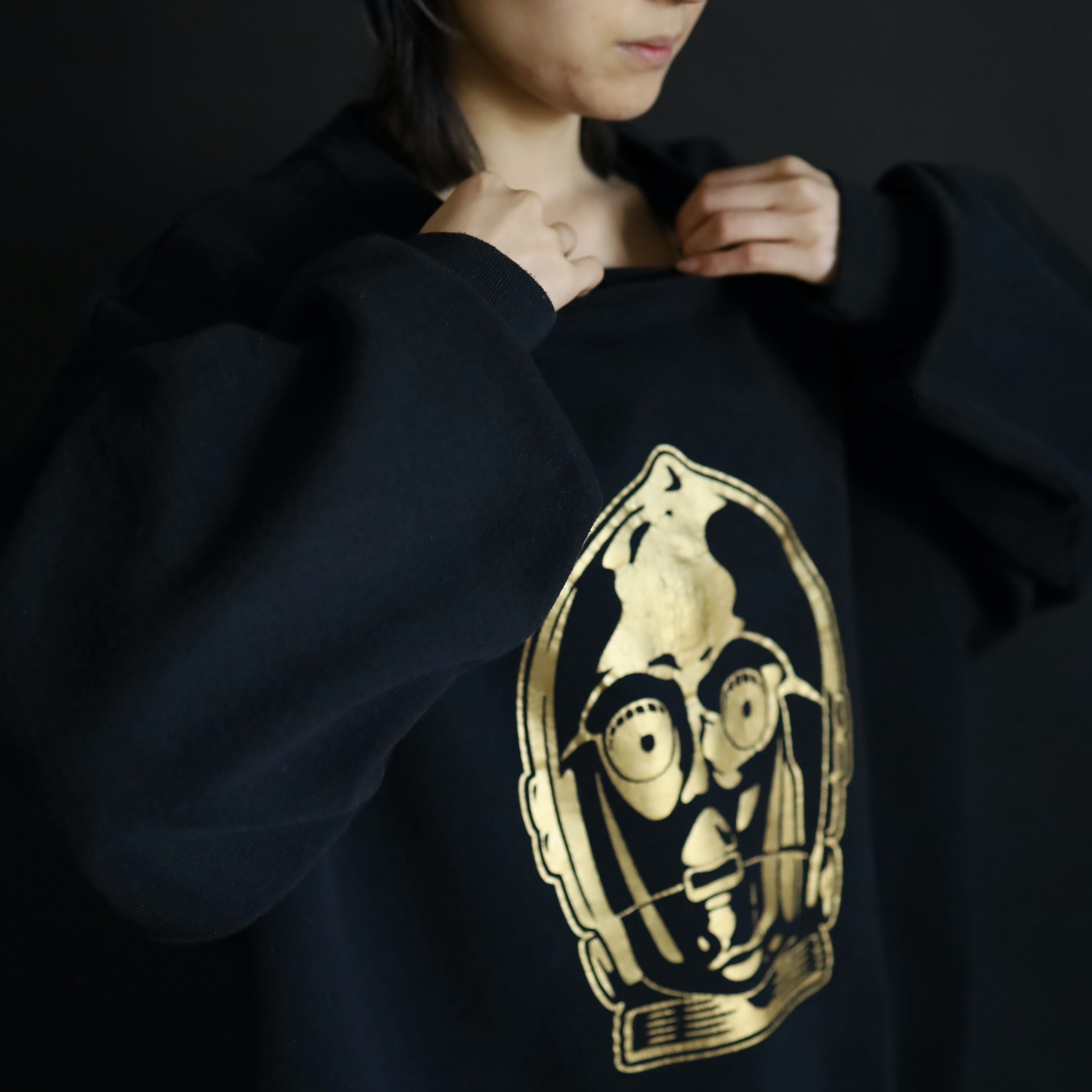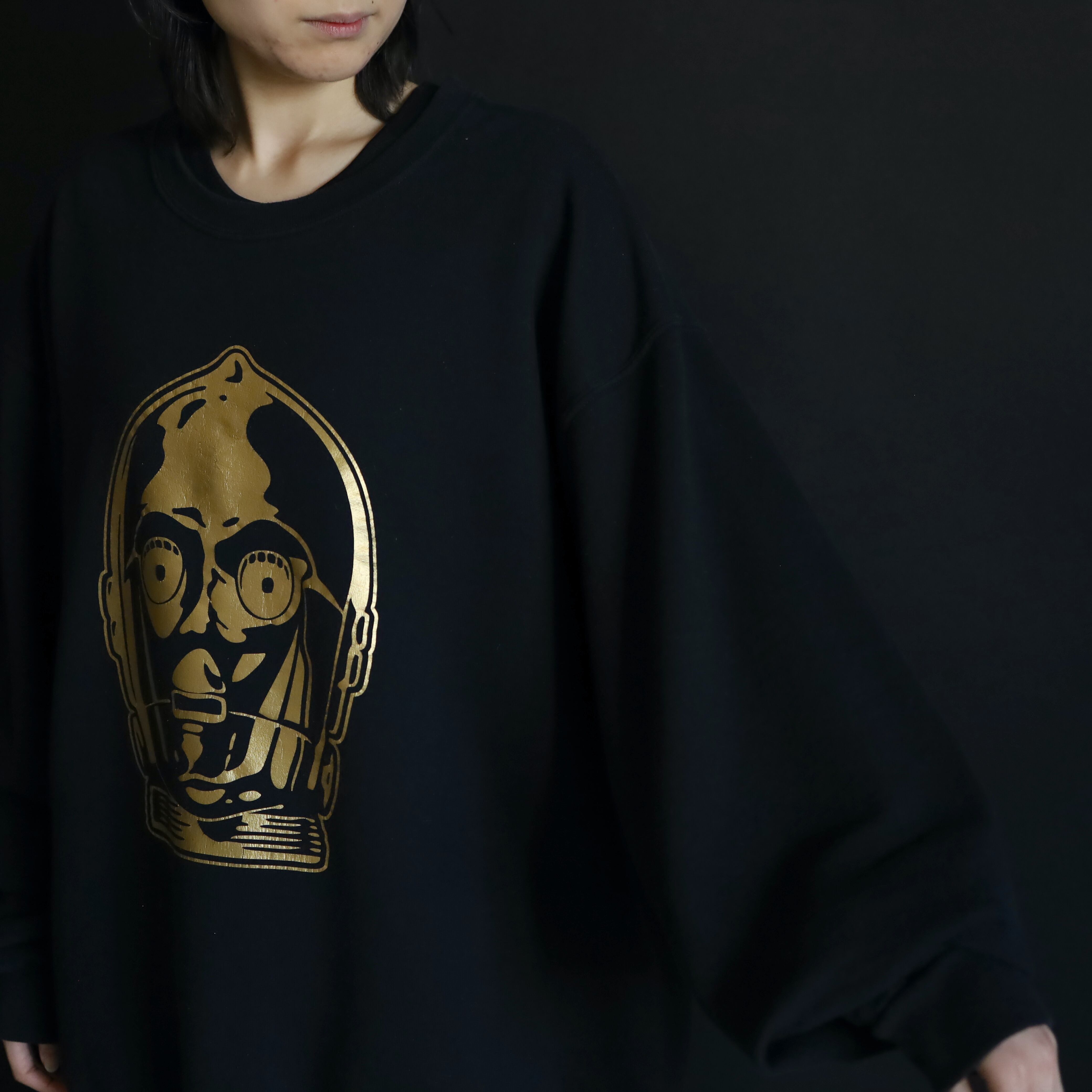 前身頃にスターウォーズでもお馴染みのドロイド,C-3POが原作通り,ゴールドでプリントされてます.