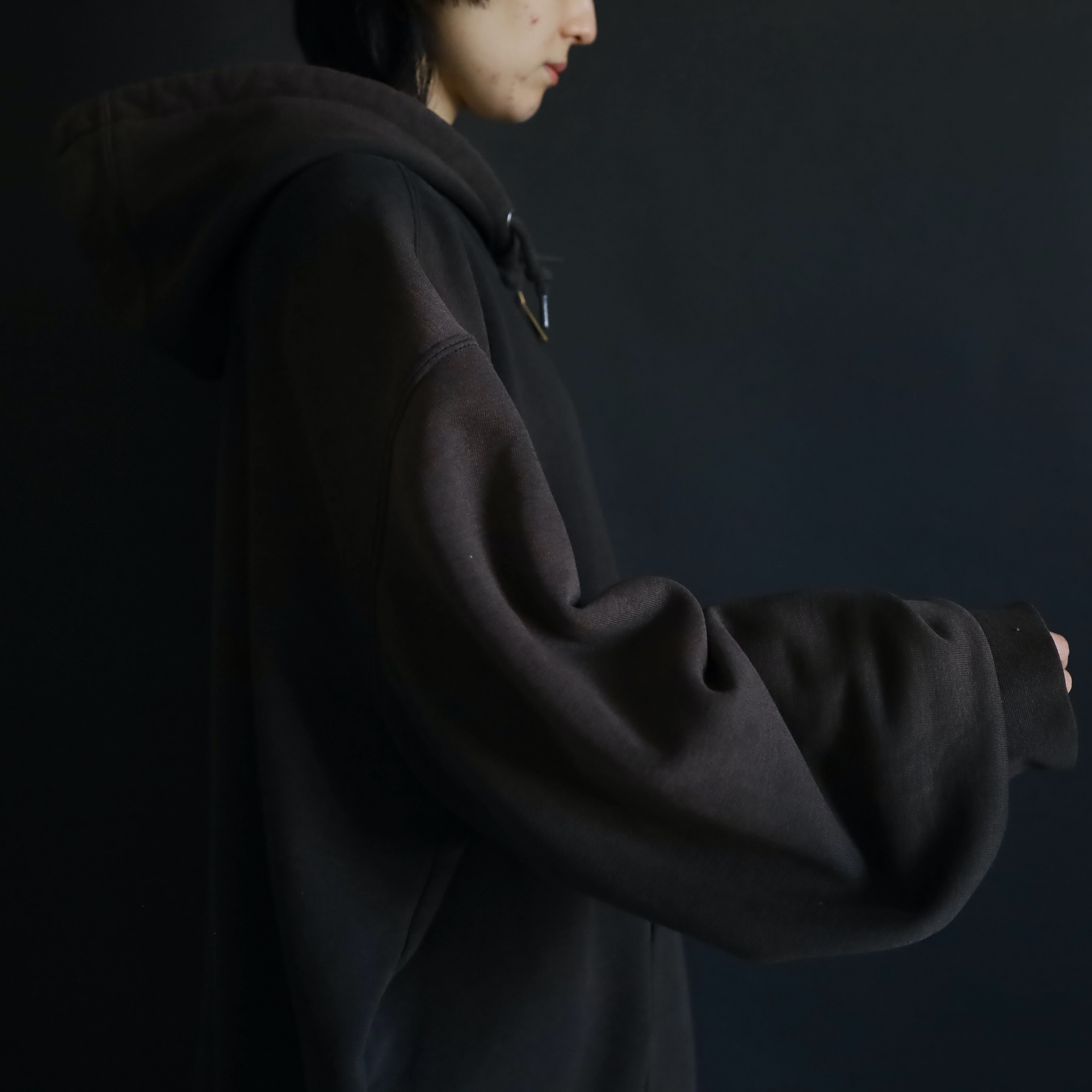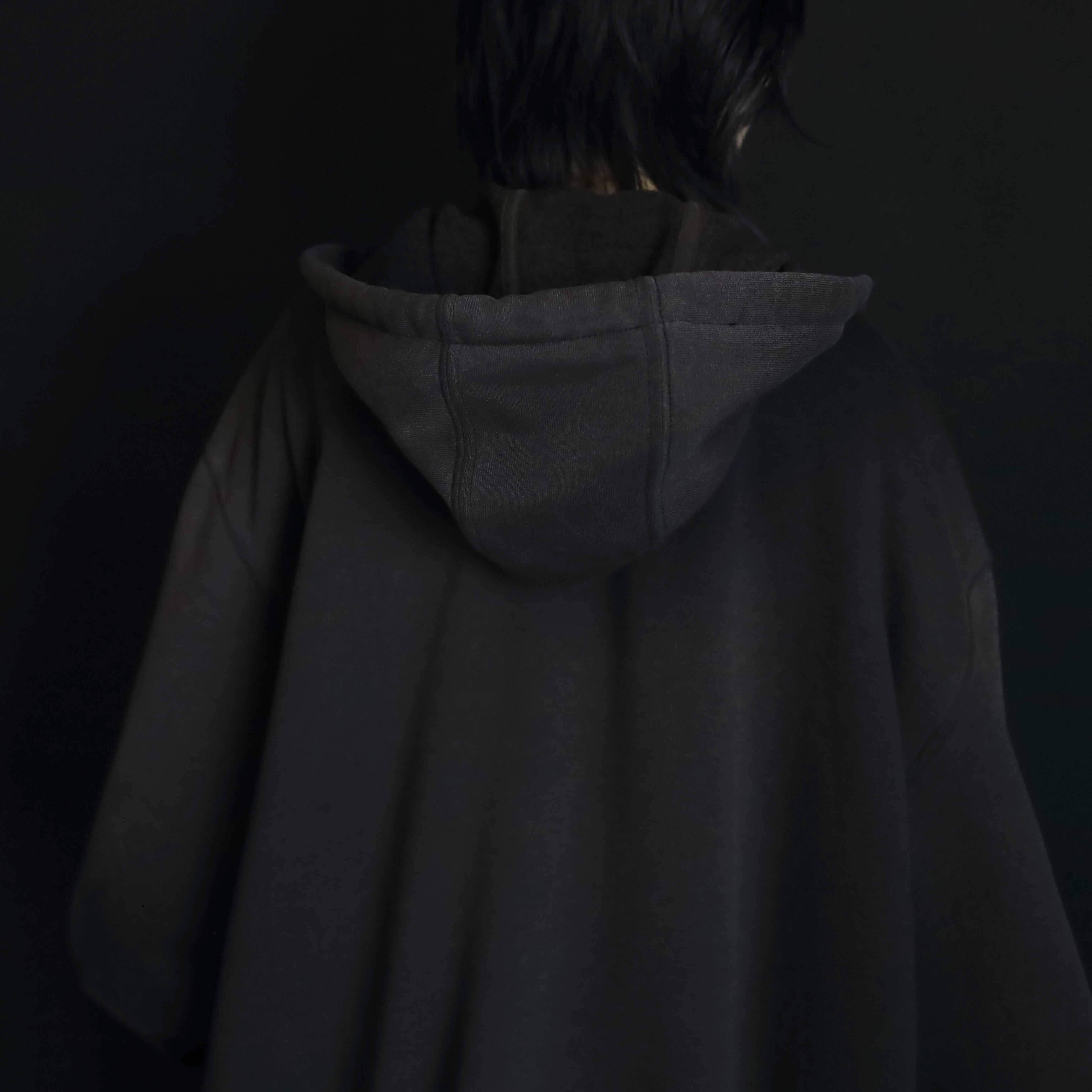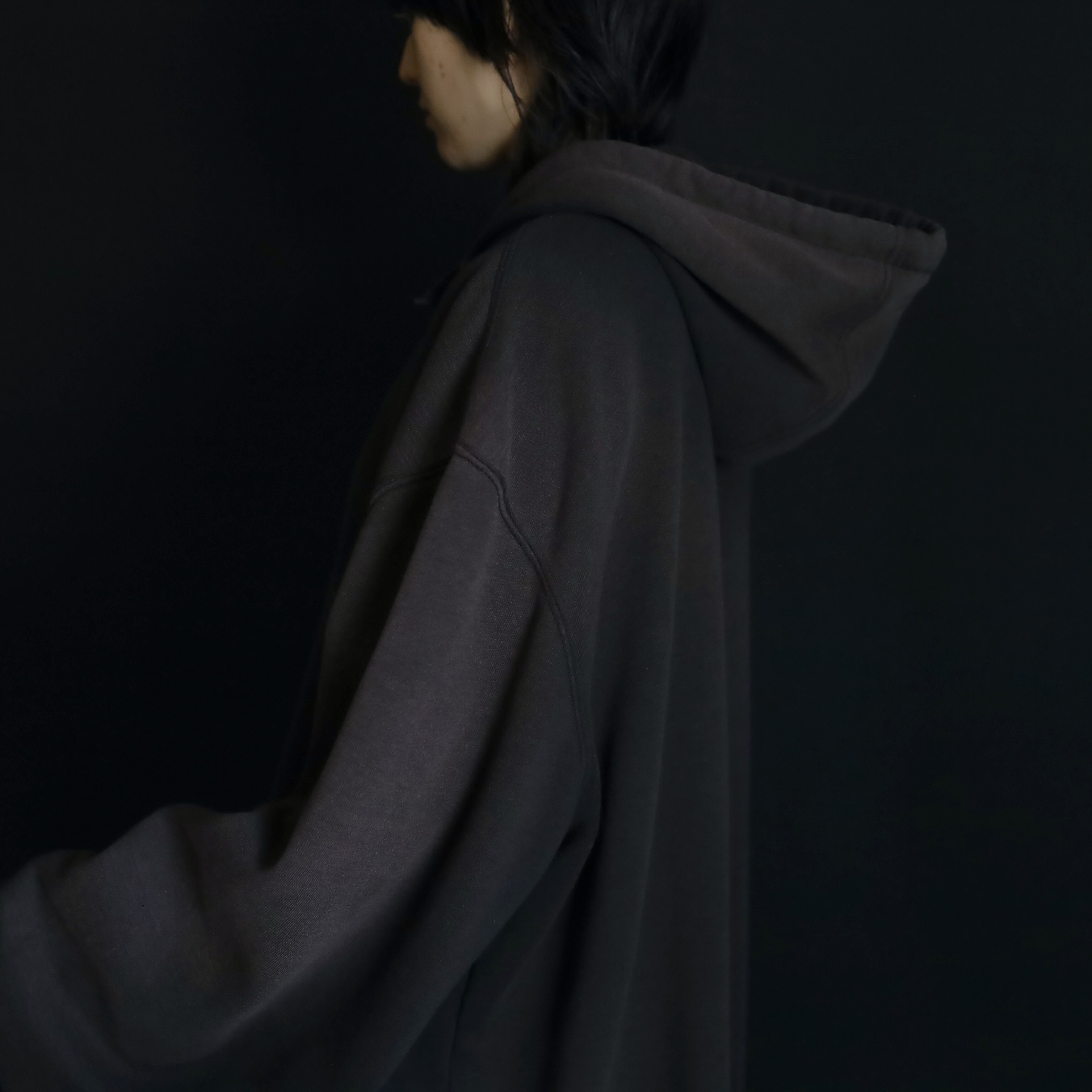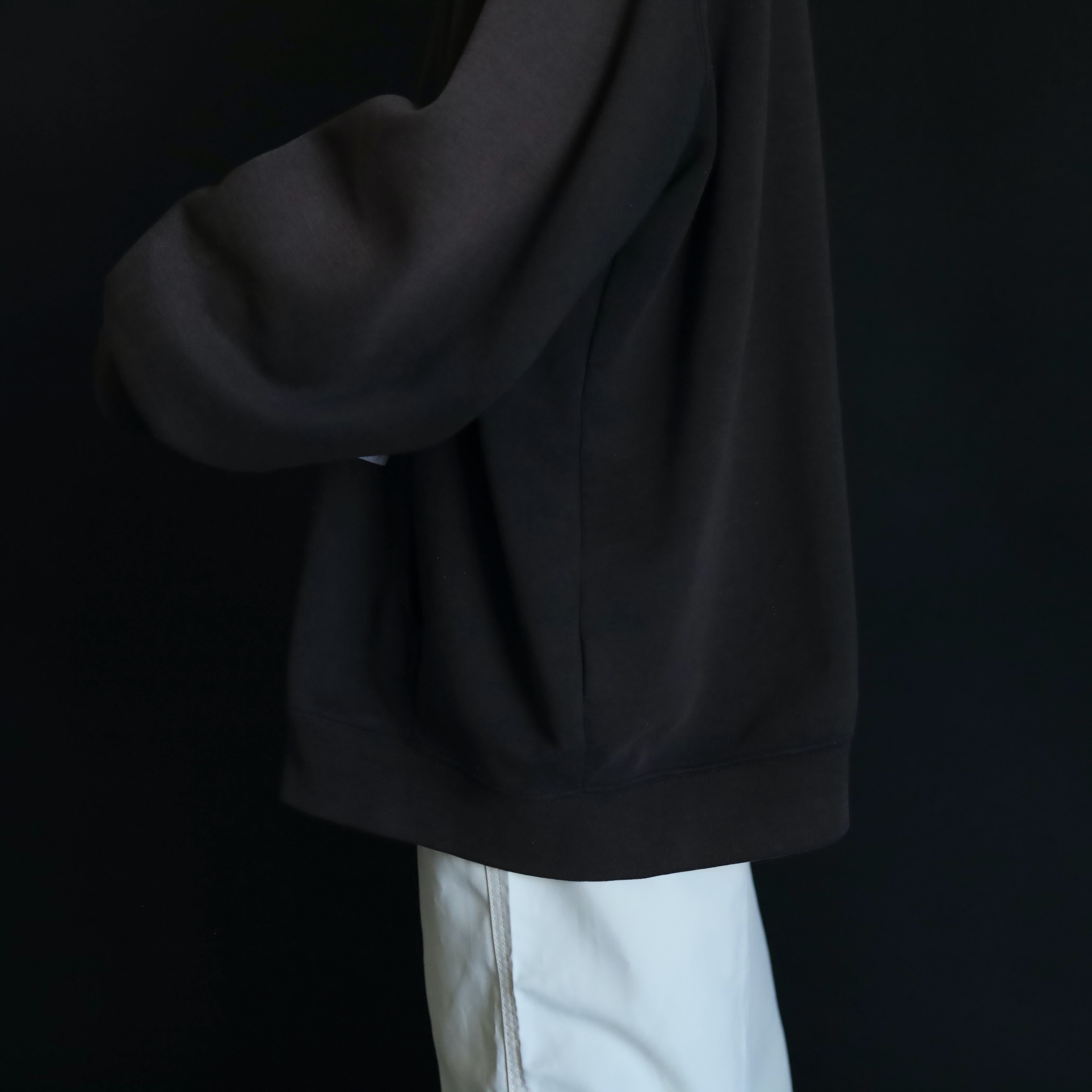 ブラックカラーのスウェットだったものが,全体にムラのある表情にフェード,日焼けした一枚.