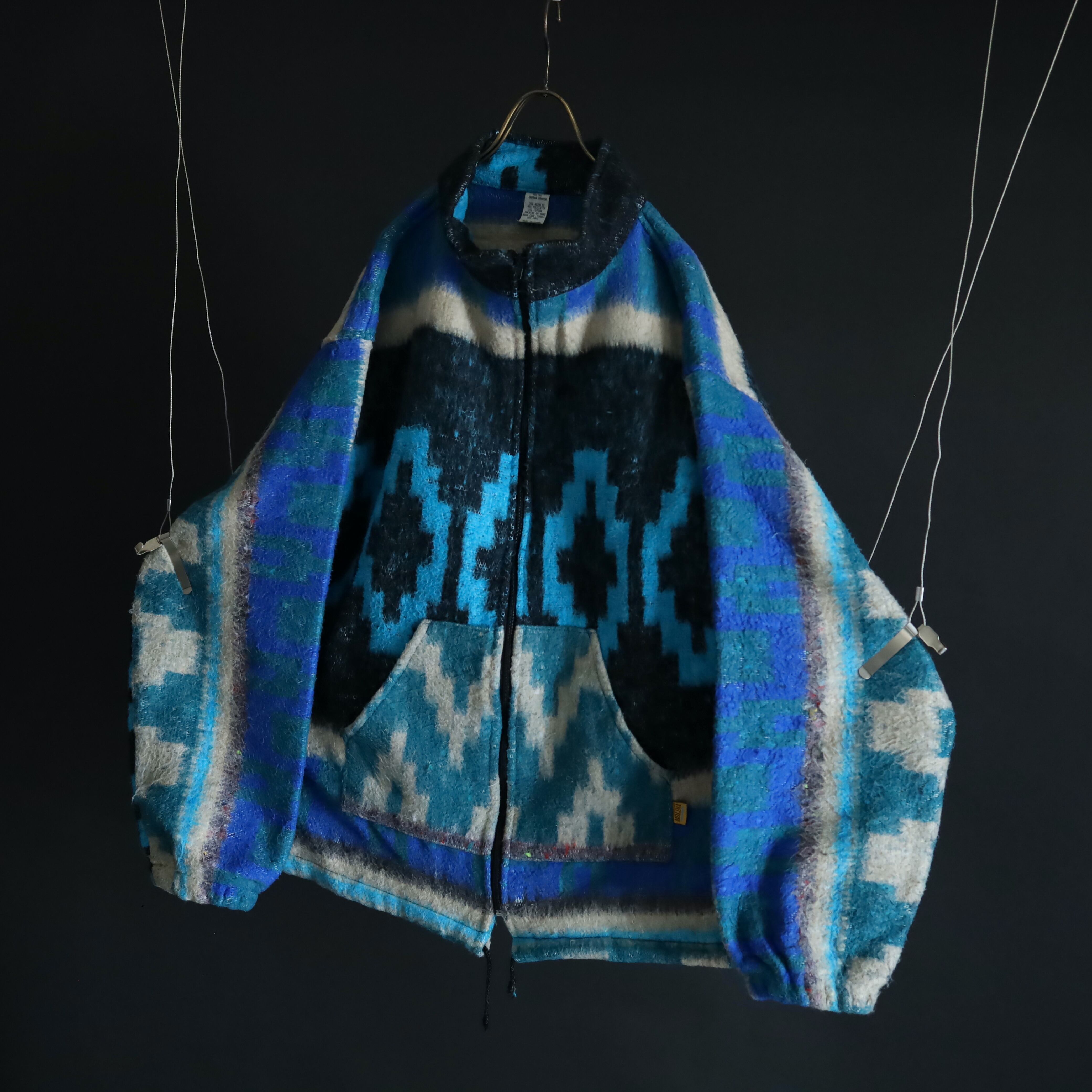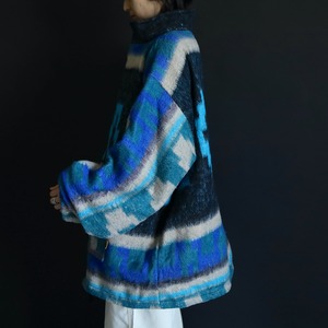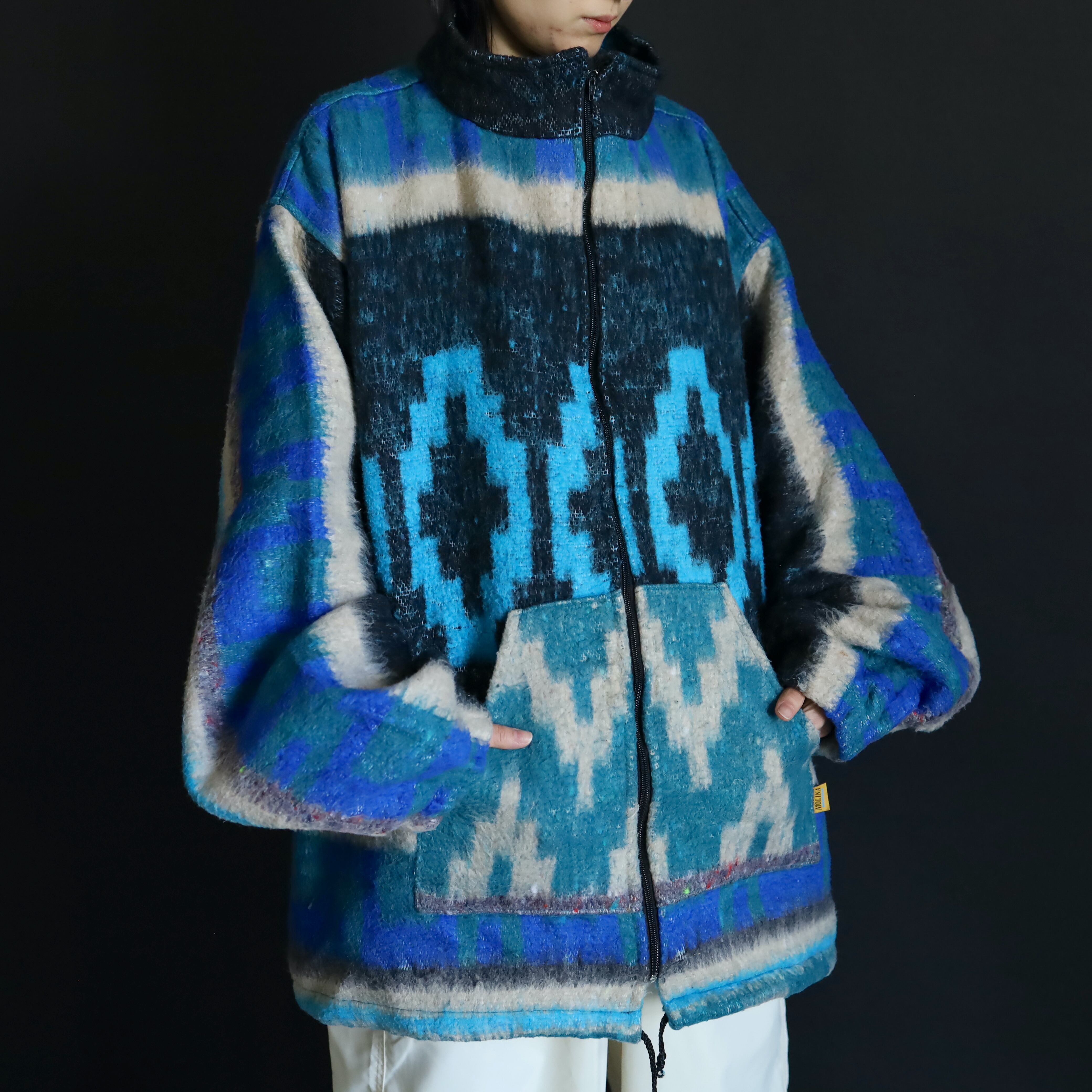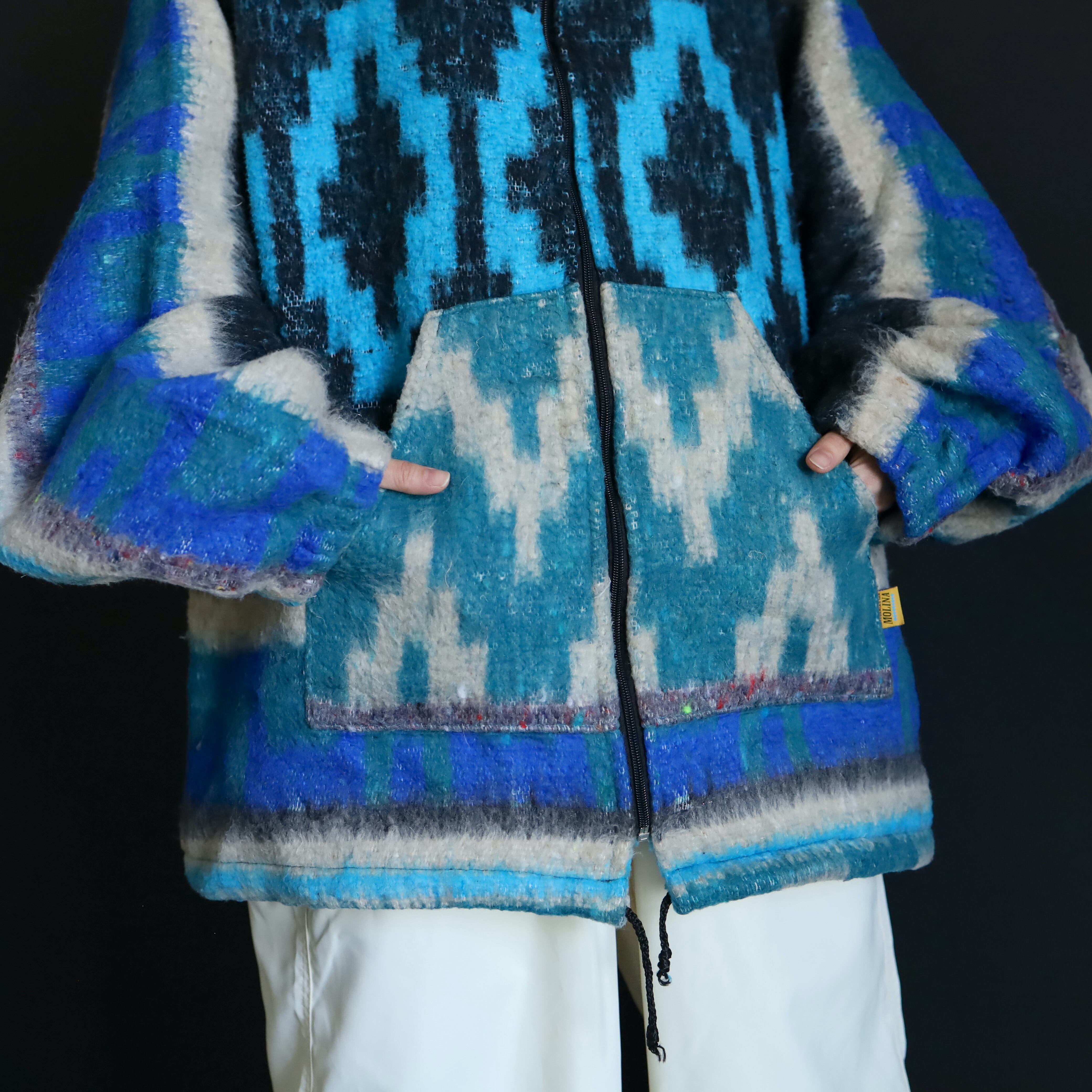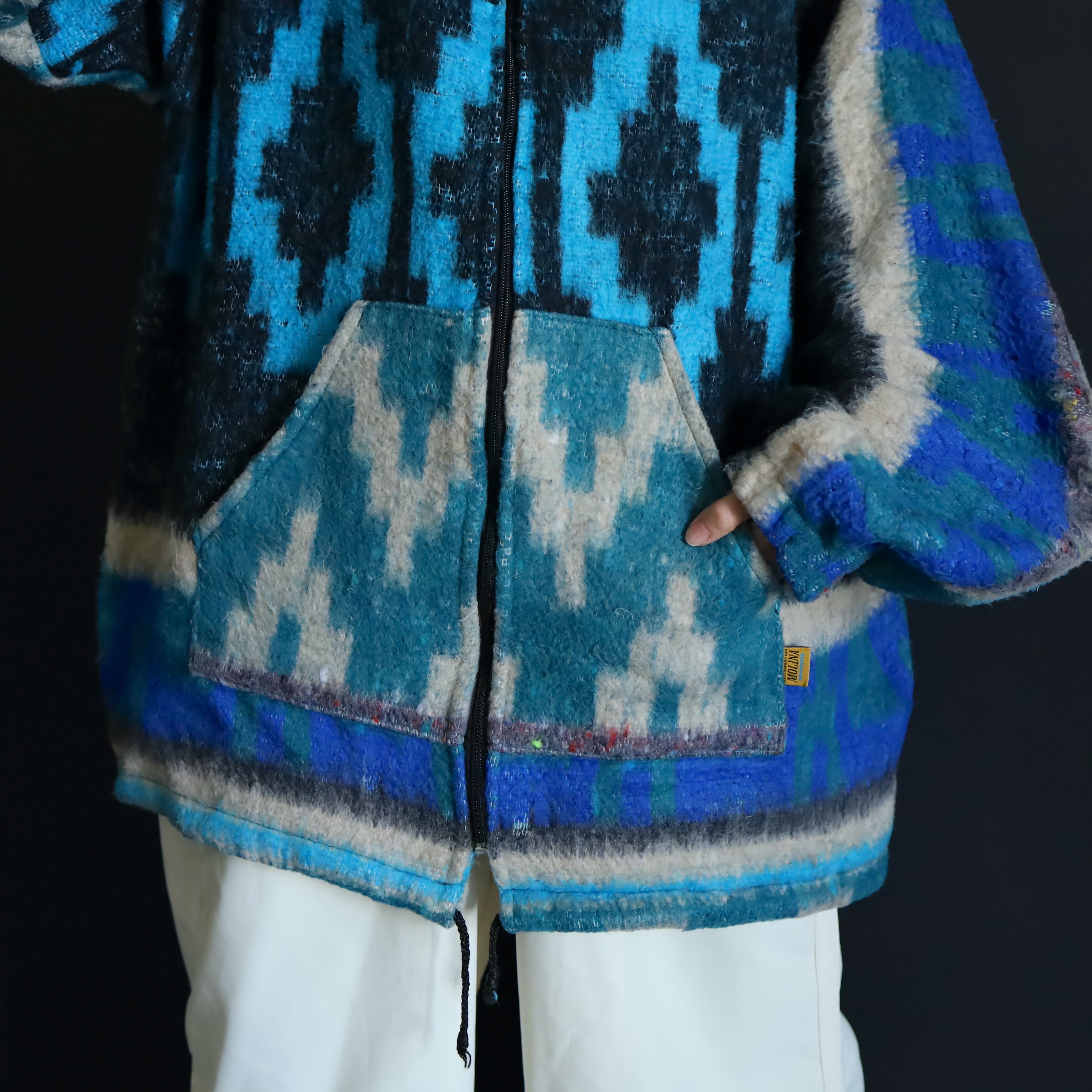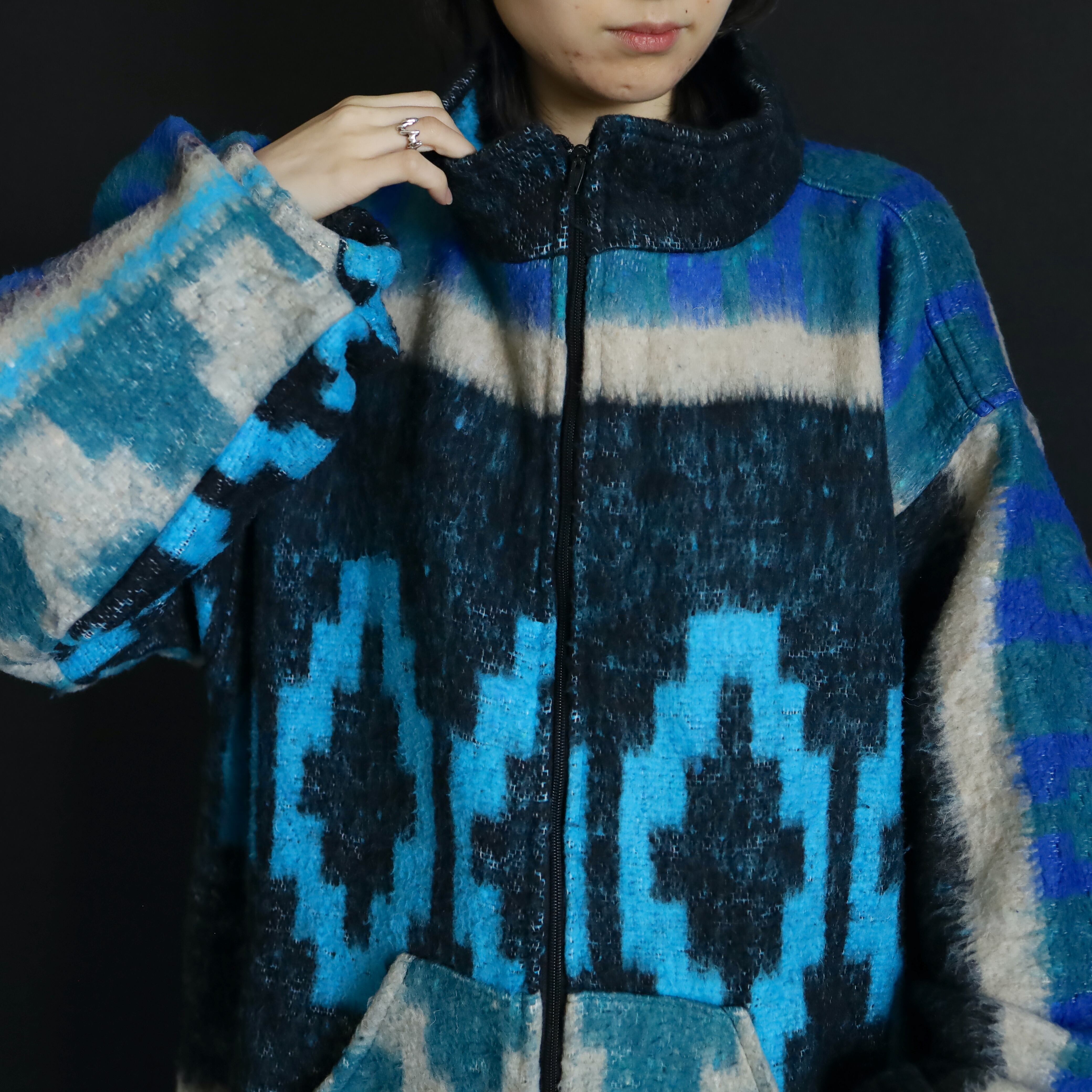 モノクロのほか,ブルー,ターコイズ系の色味で構成された,清潔感のあるチマヨ柄が目を惹く一枚.