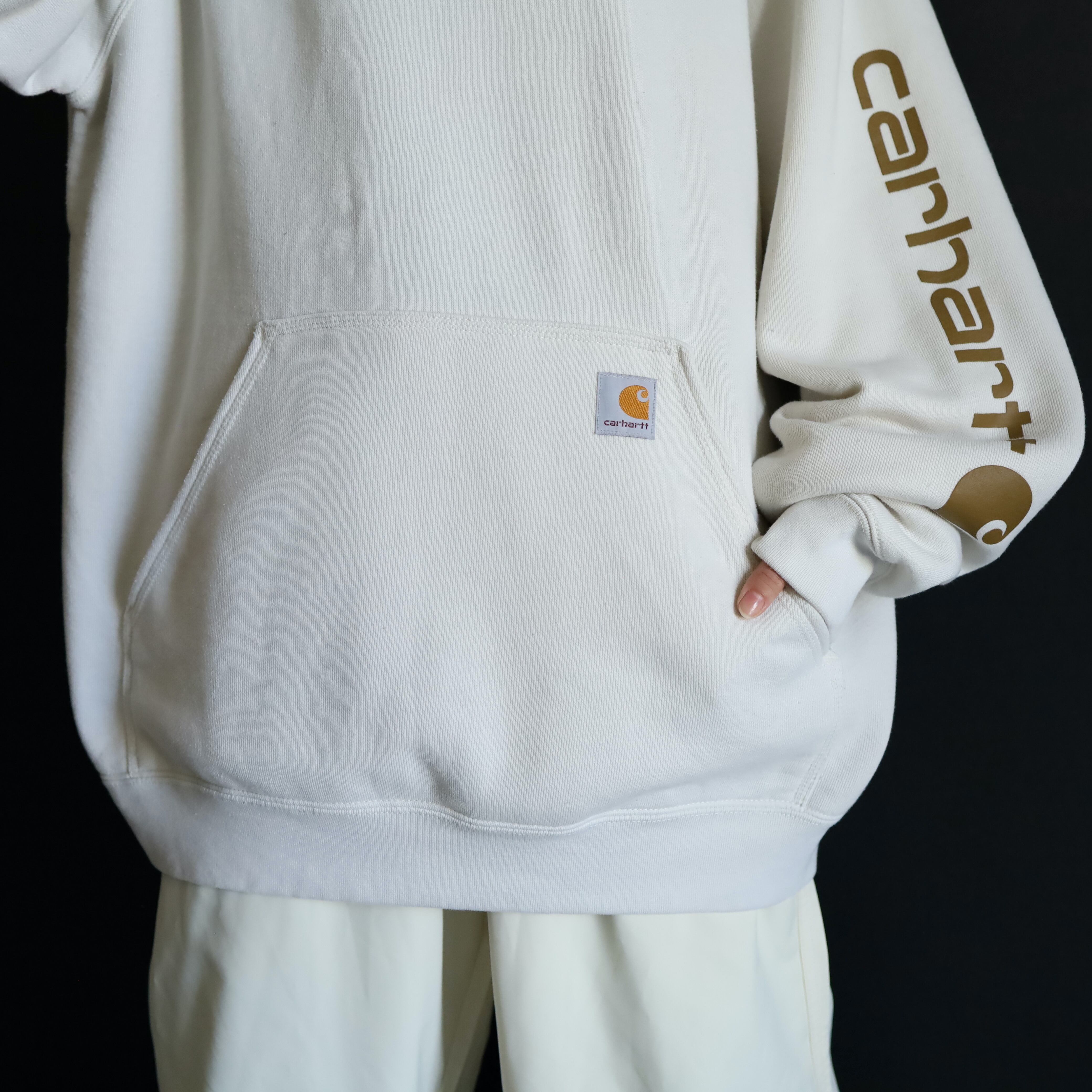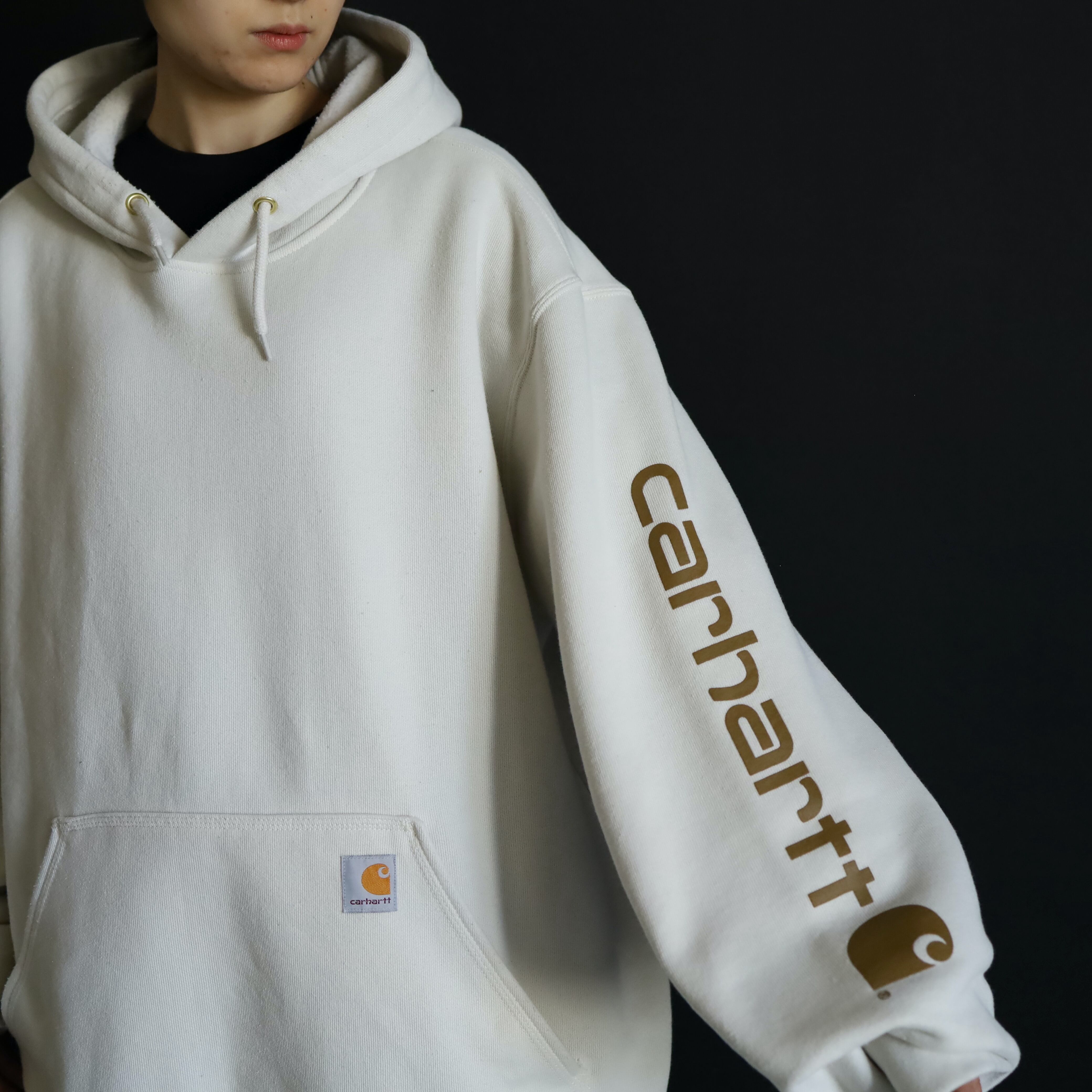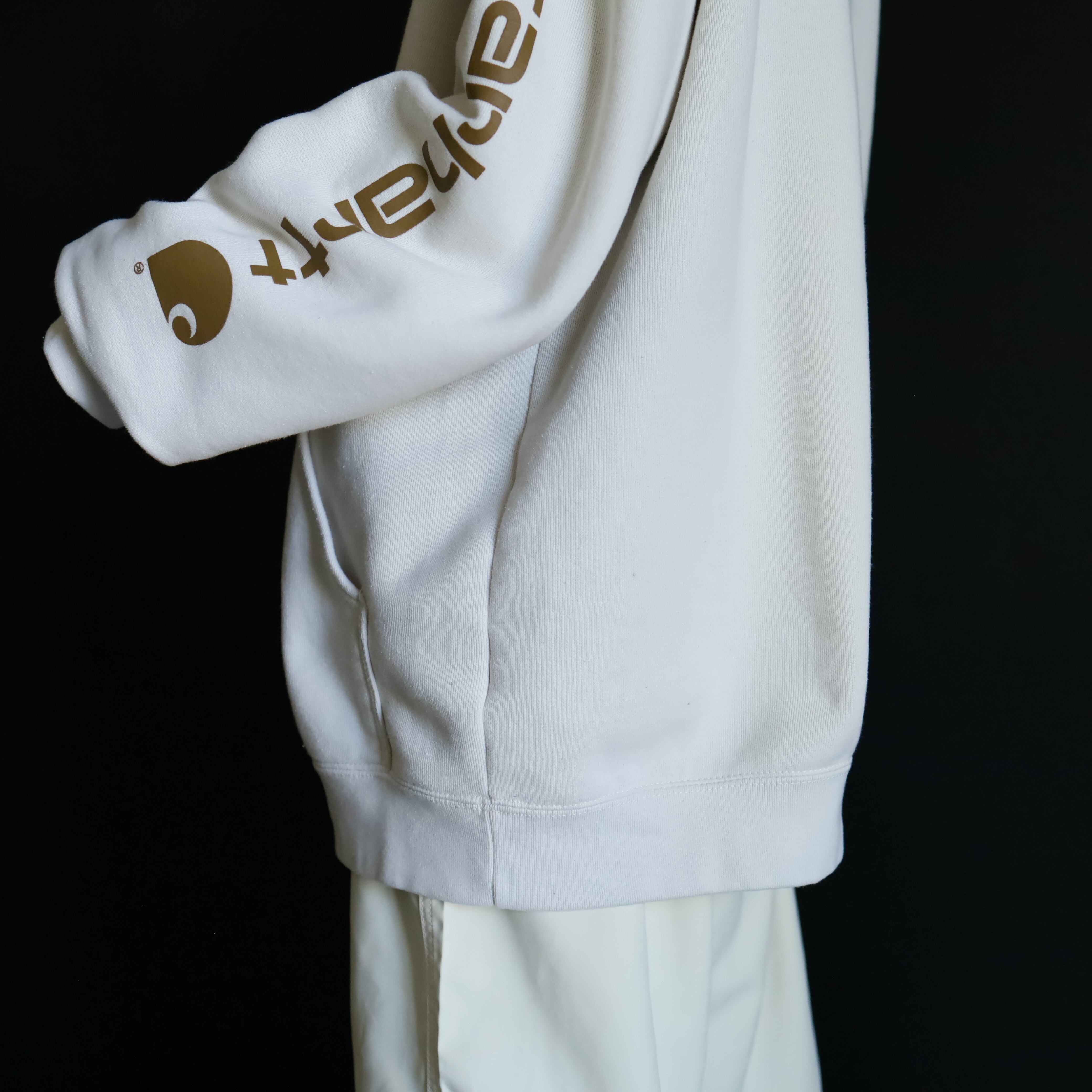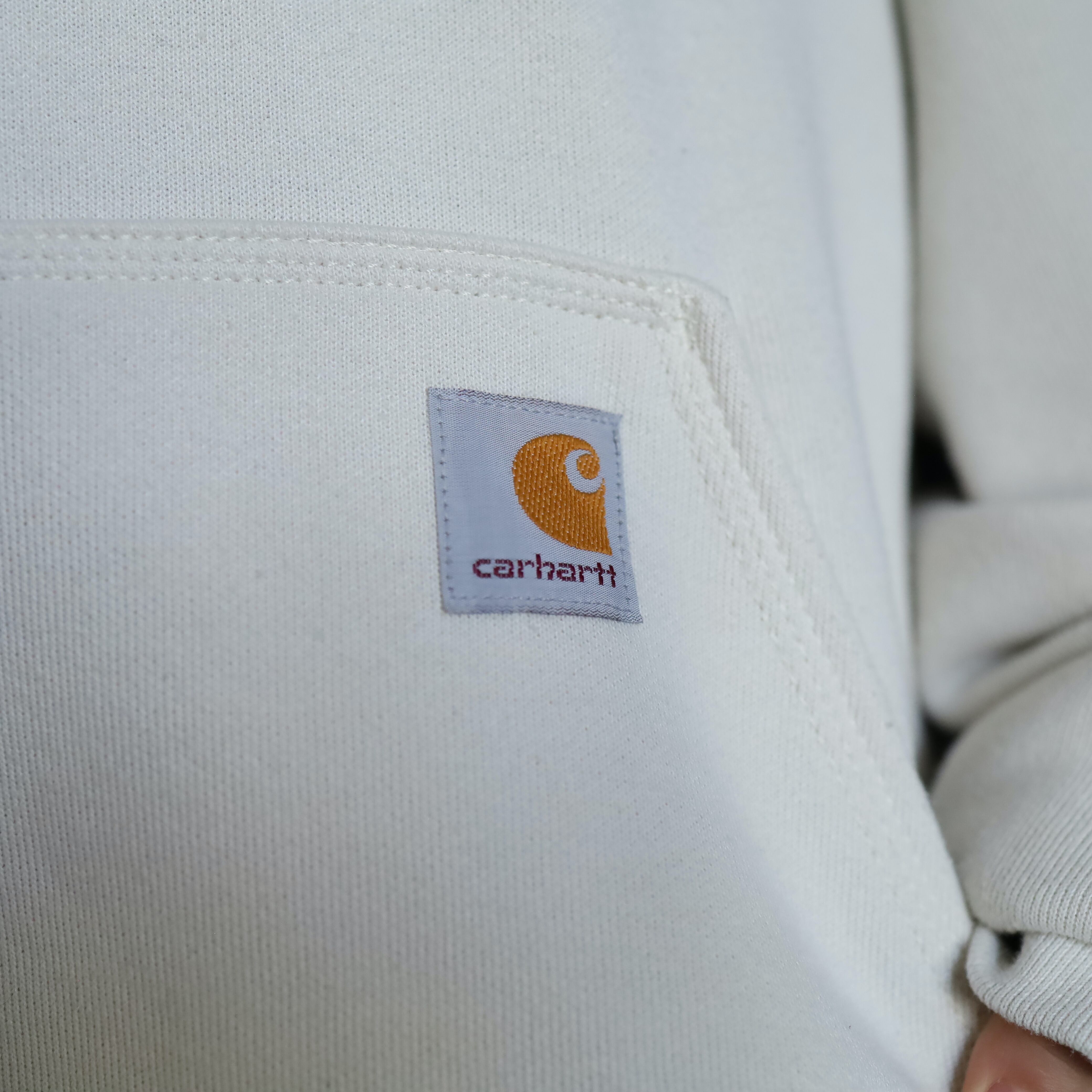 マフポケットのロゴデザインに加え,左袖にはラバープリントがデザインされた,カーハートらしさのある定番人気の一枚です.