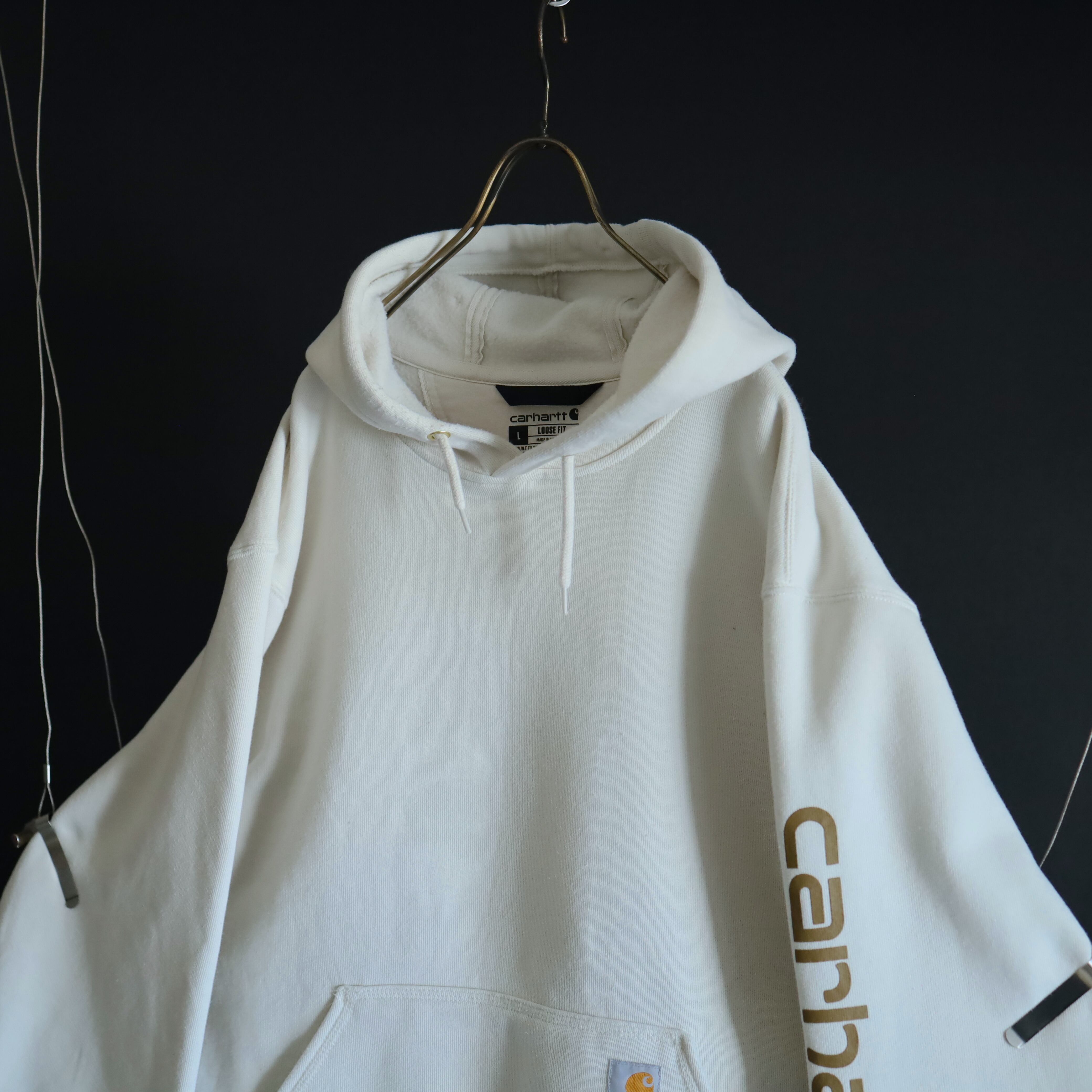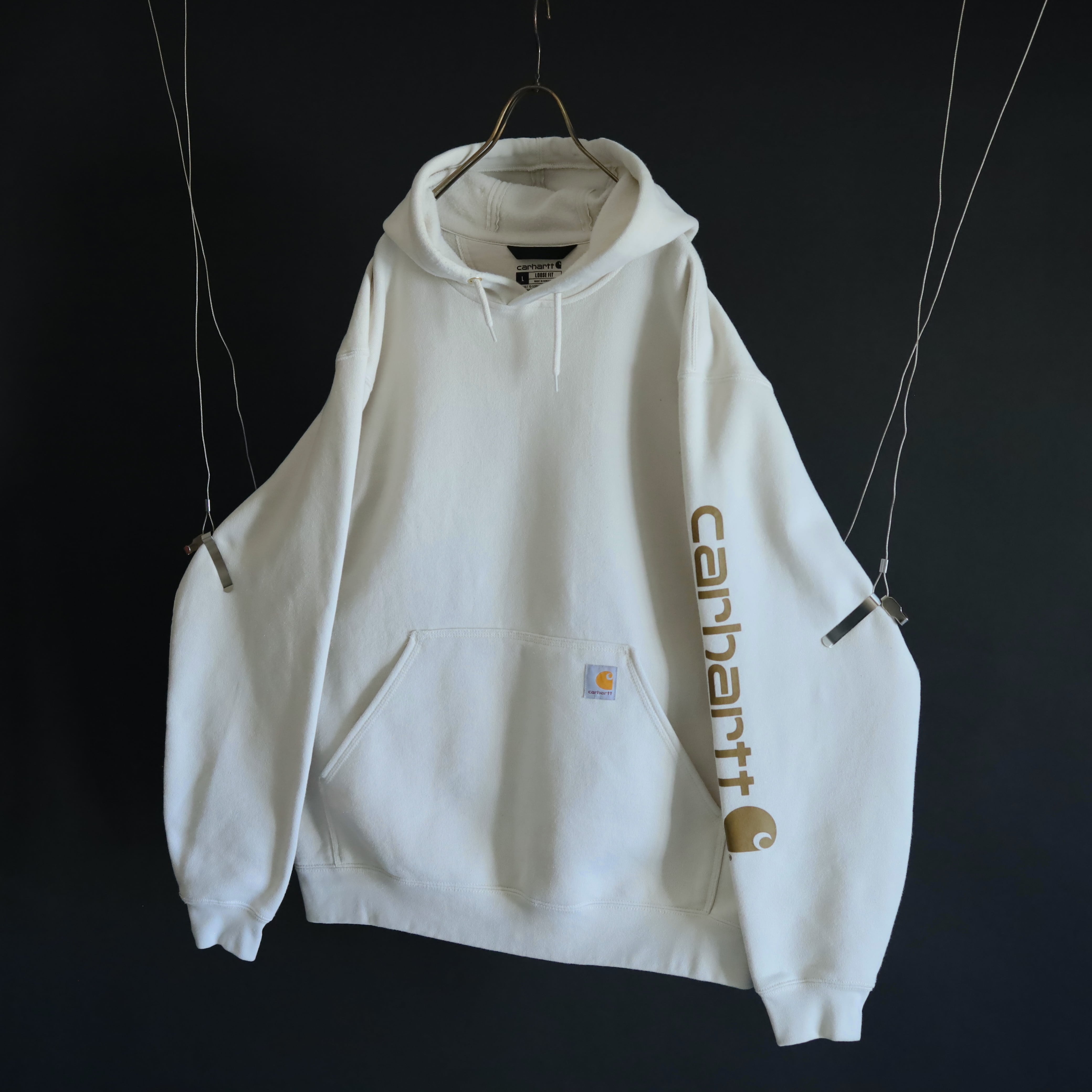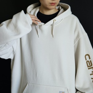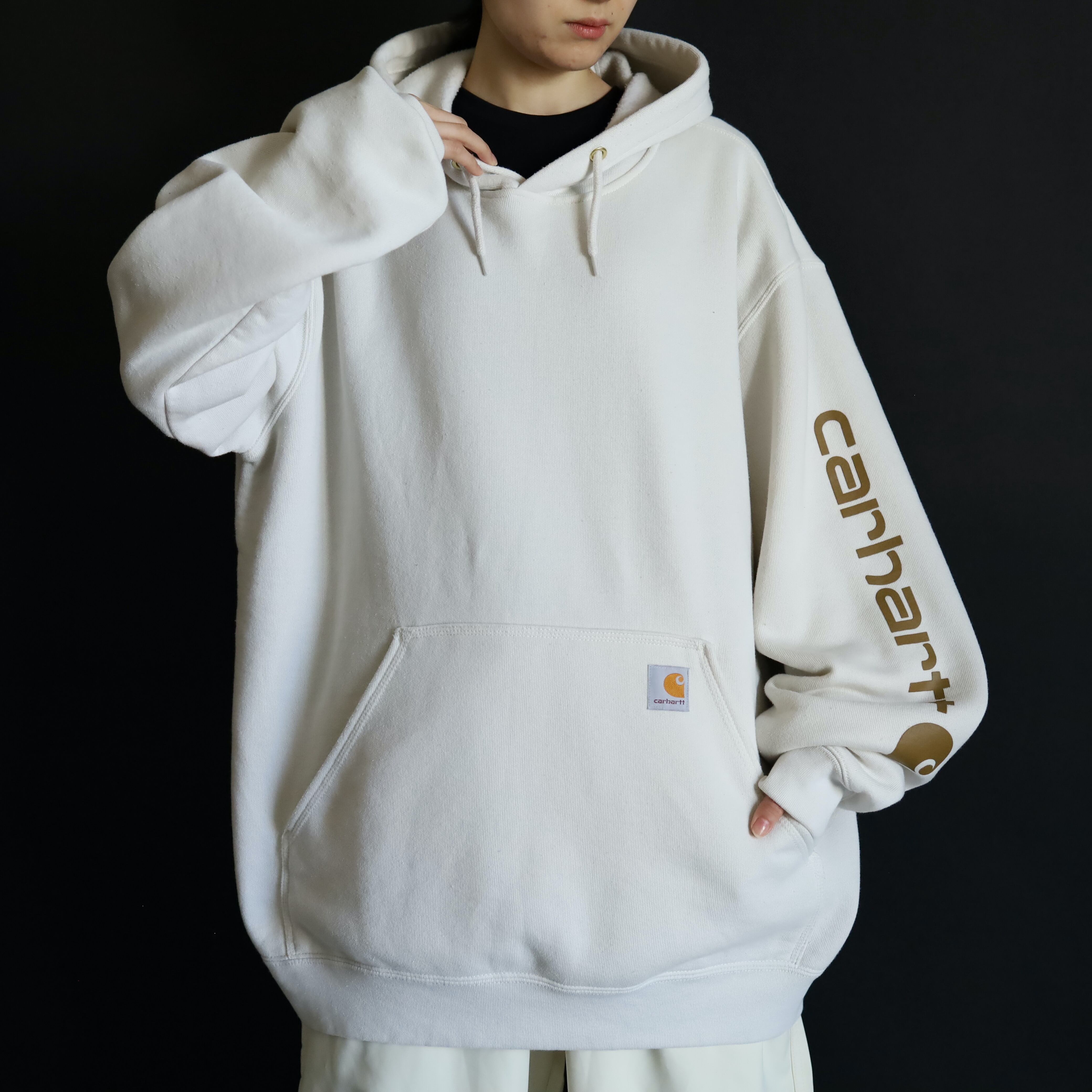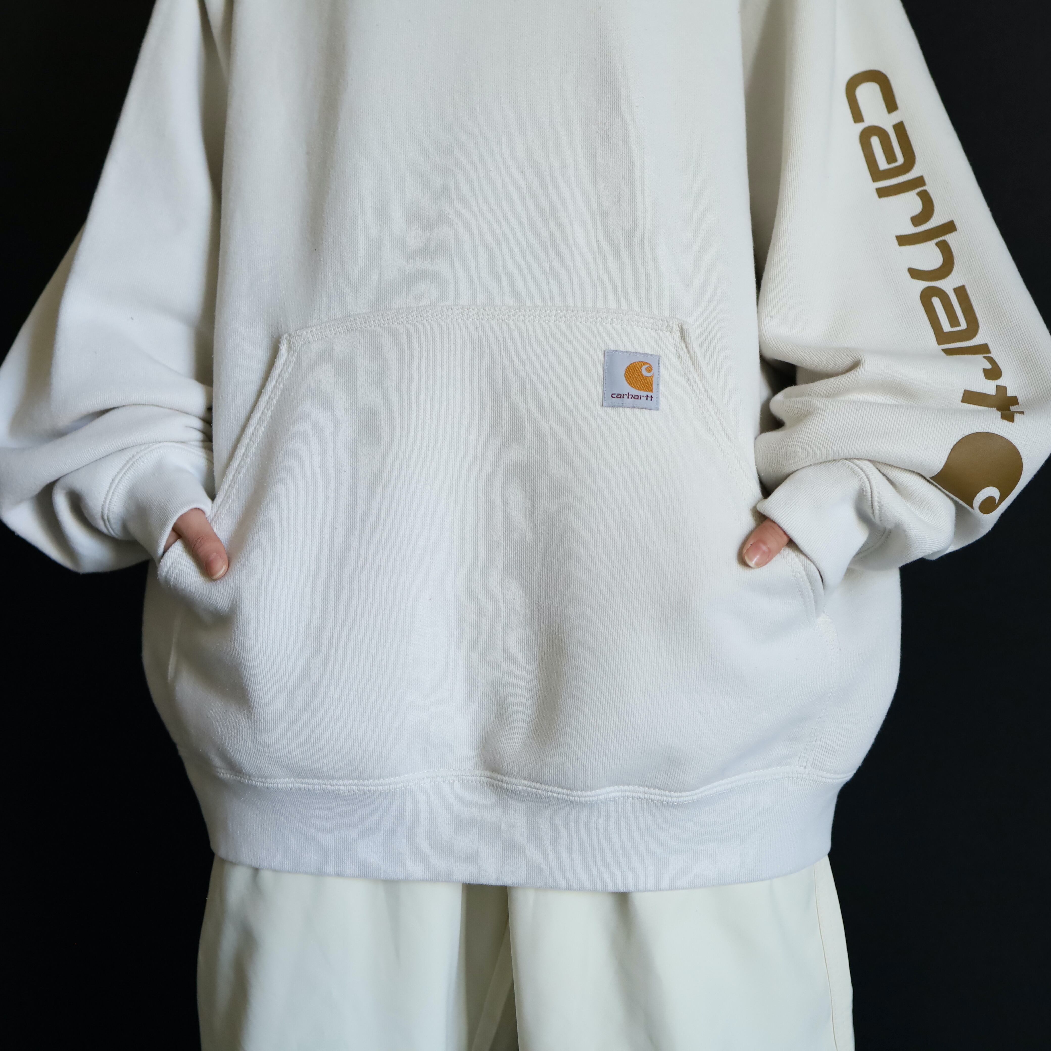 マフポケットのロゴデザインに加え,左袖にはラバープリントがデザインされた,カーハートらしさのある定番人気の一枚です.