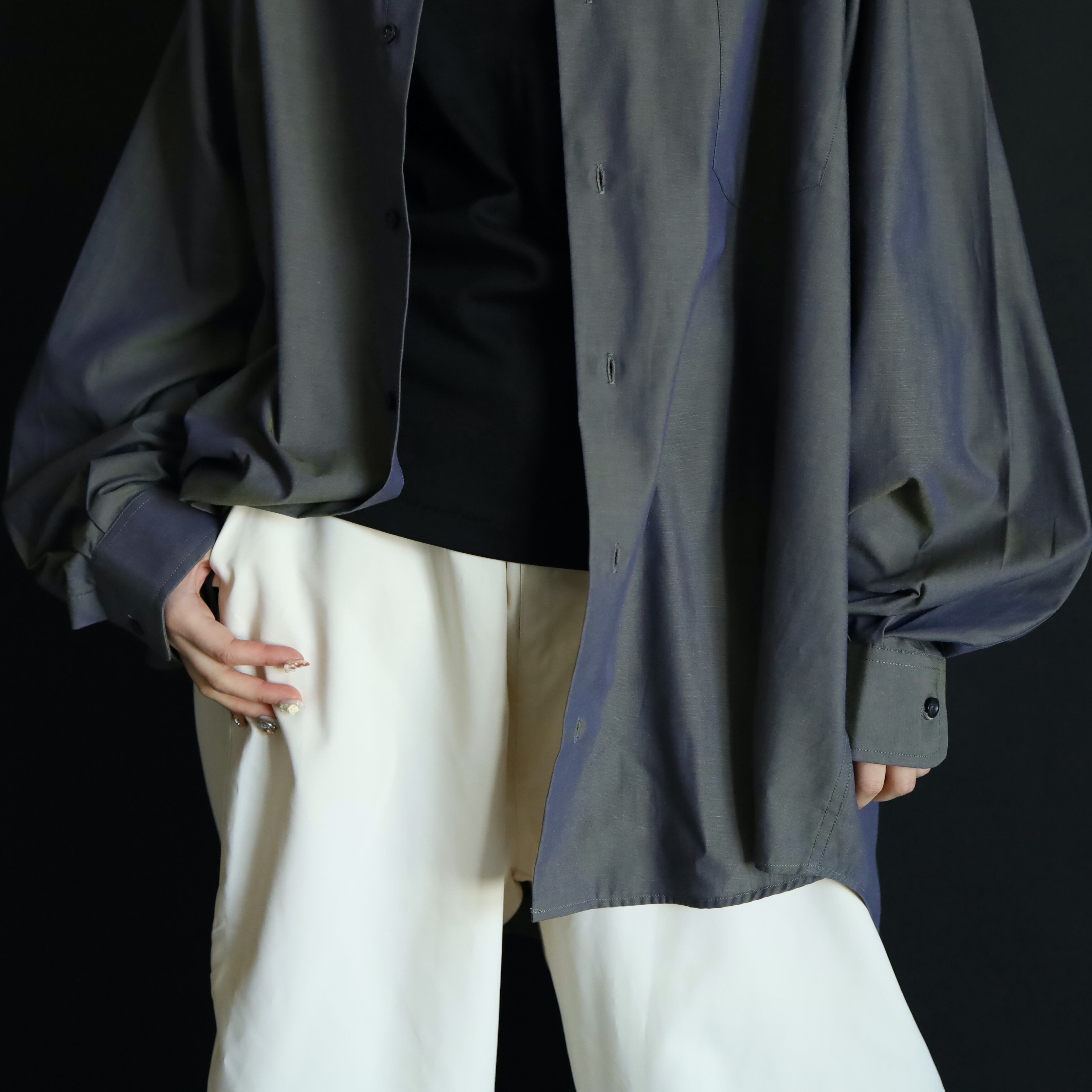 このシャツの特徴的な色味だけで,コーデを華やかに彩る力を持ち合わせる逸品です.
