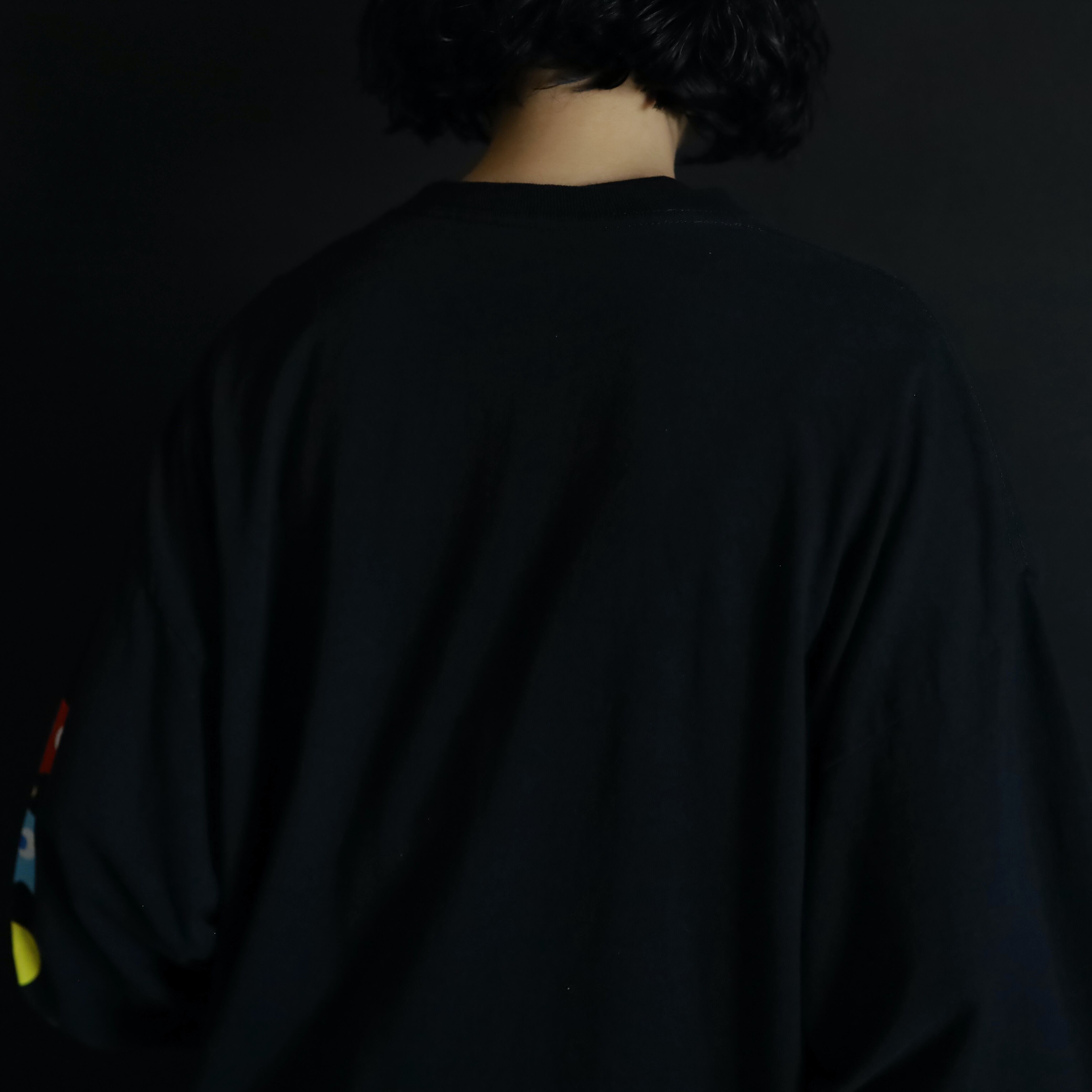 ブラックカラーのコットン100%ボディで,気兼ねなくラフに着用できる一枚.