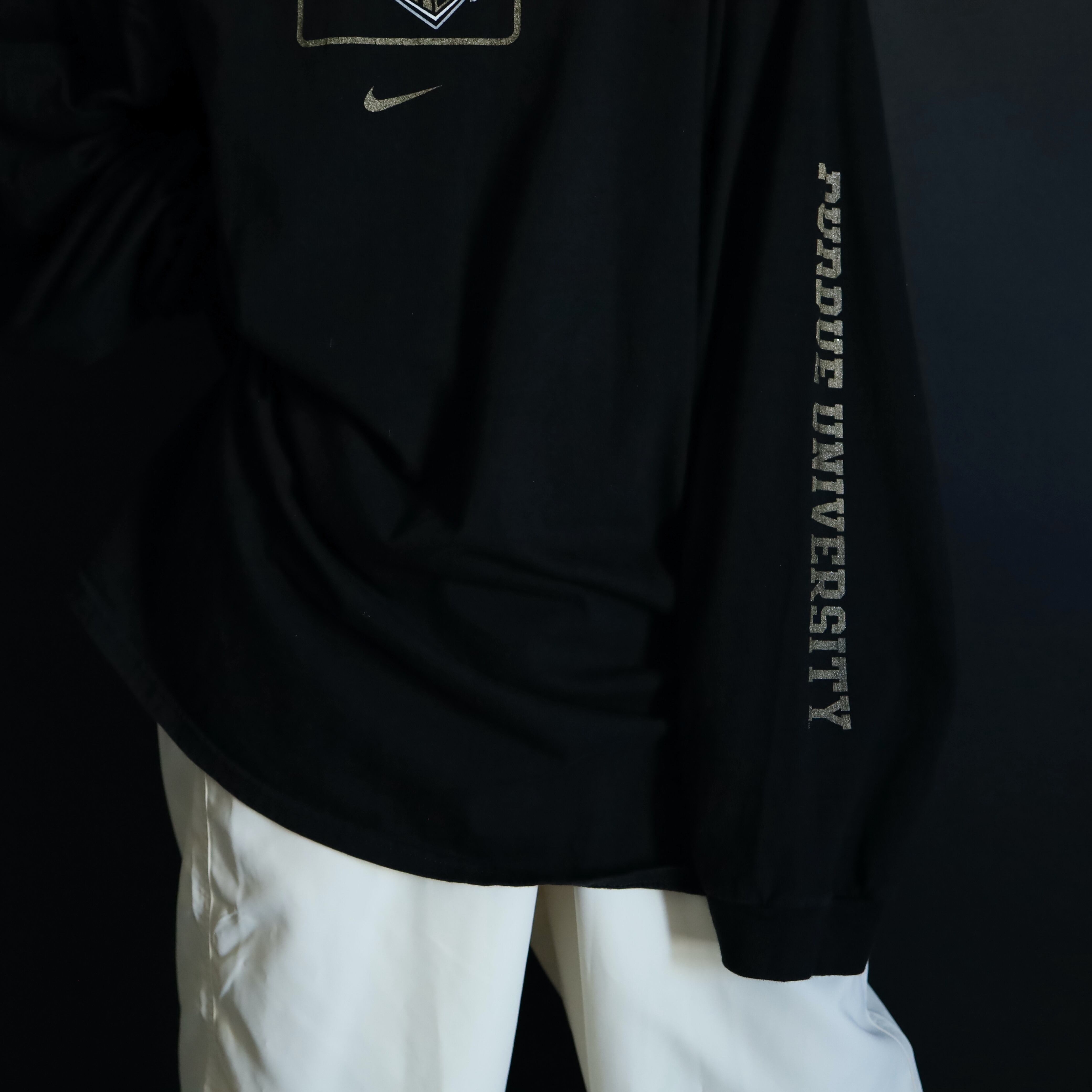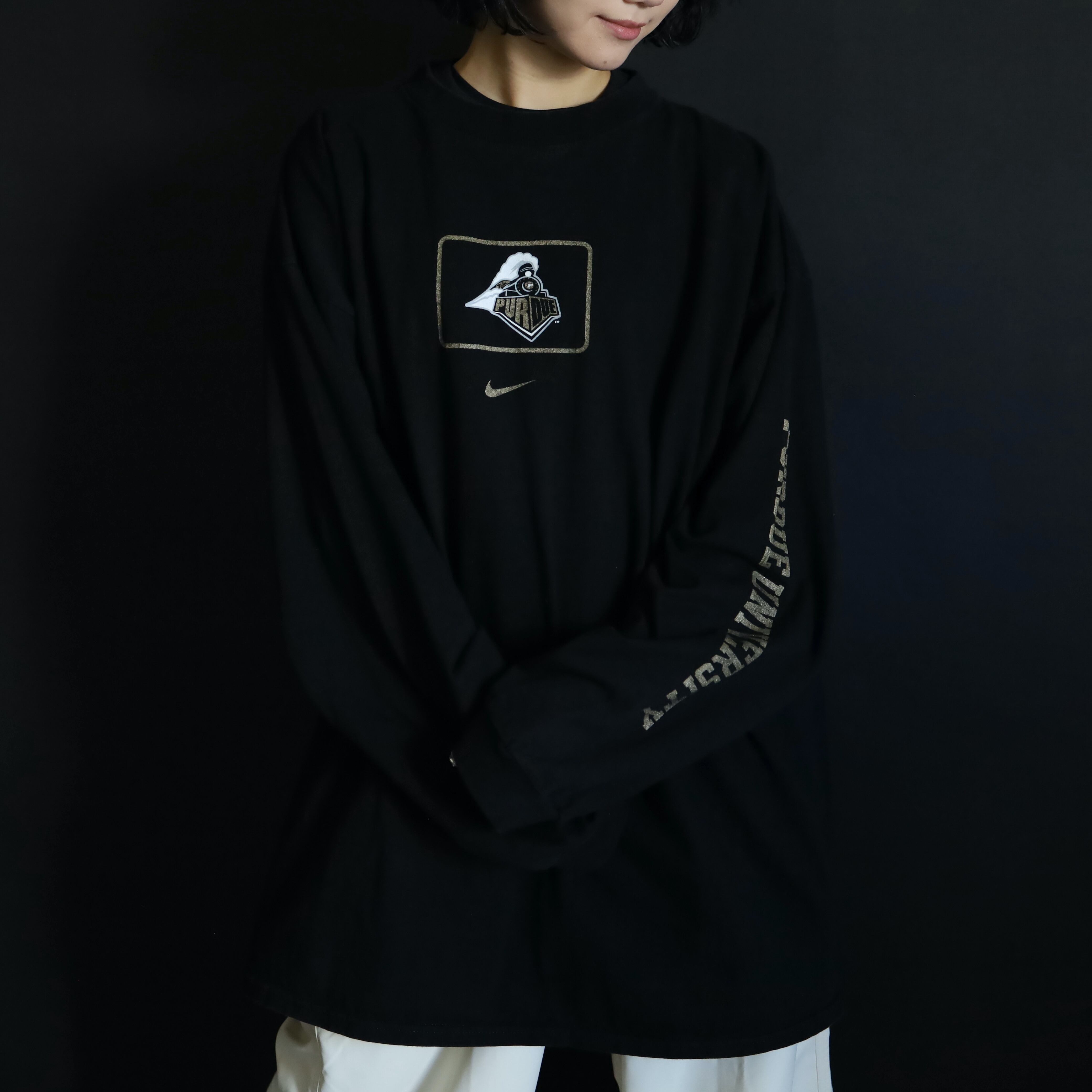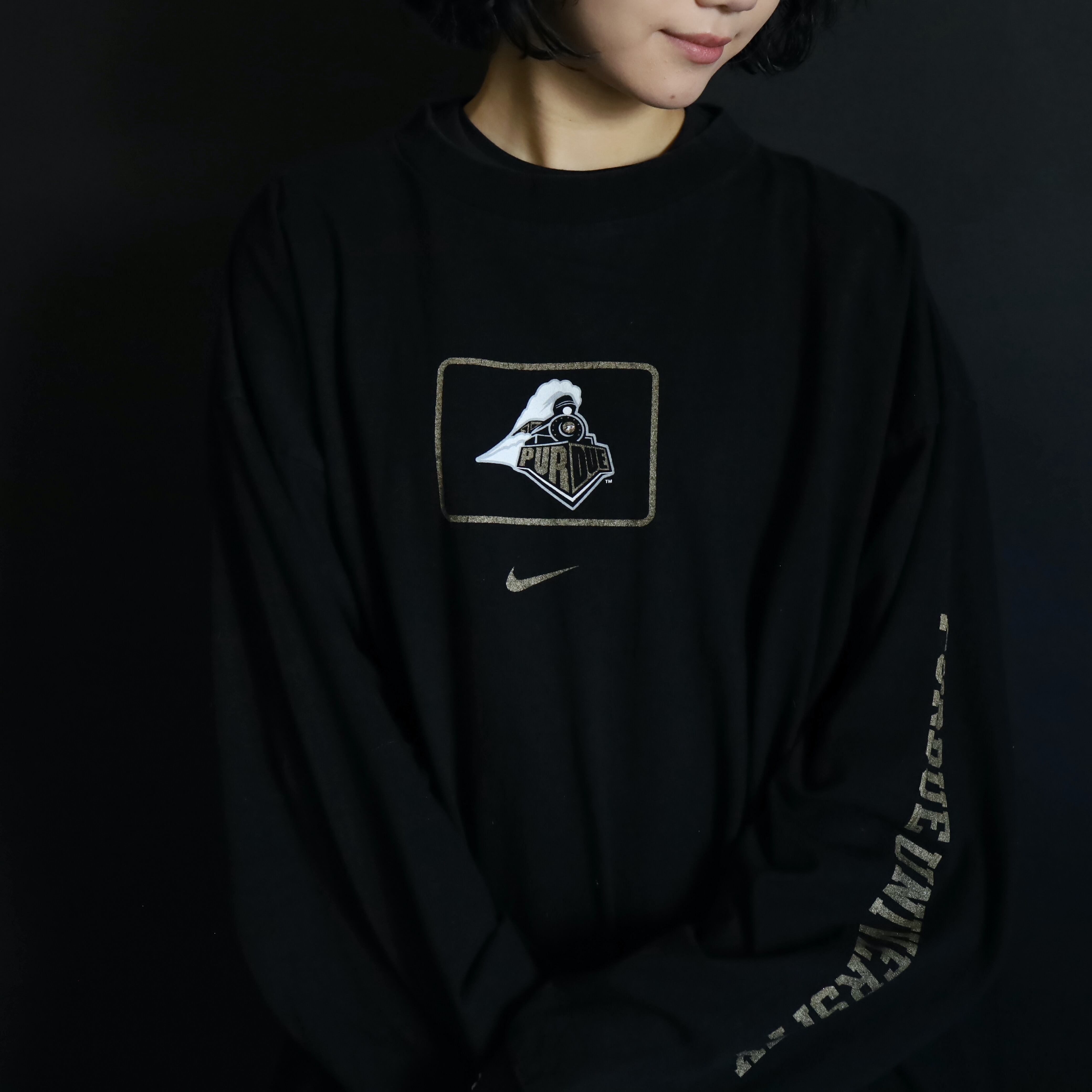 フロントにNIKEのスウッシュロゴと,アメリカのインディアナ州に位置する,パデュー大学のマスコットプリント.