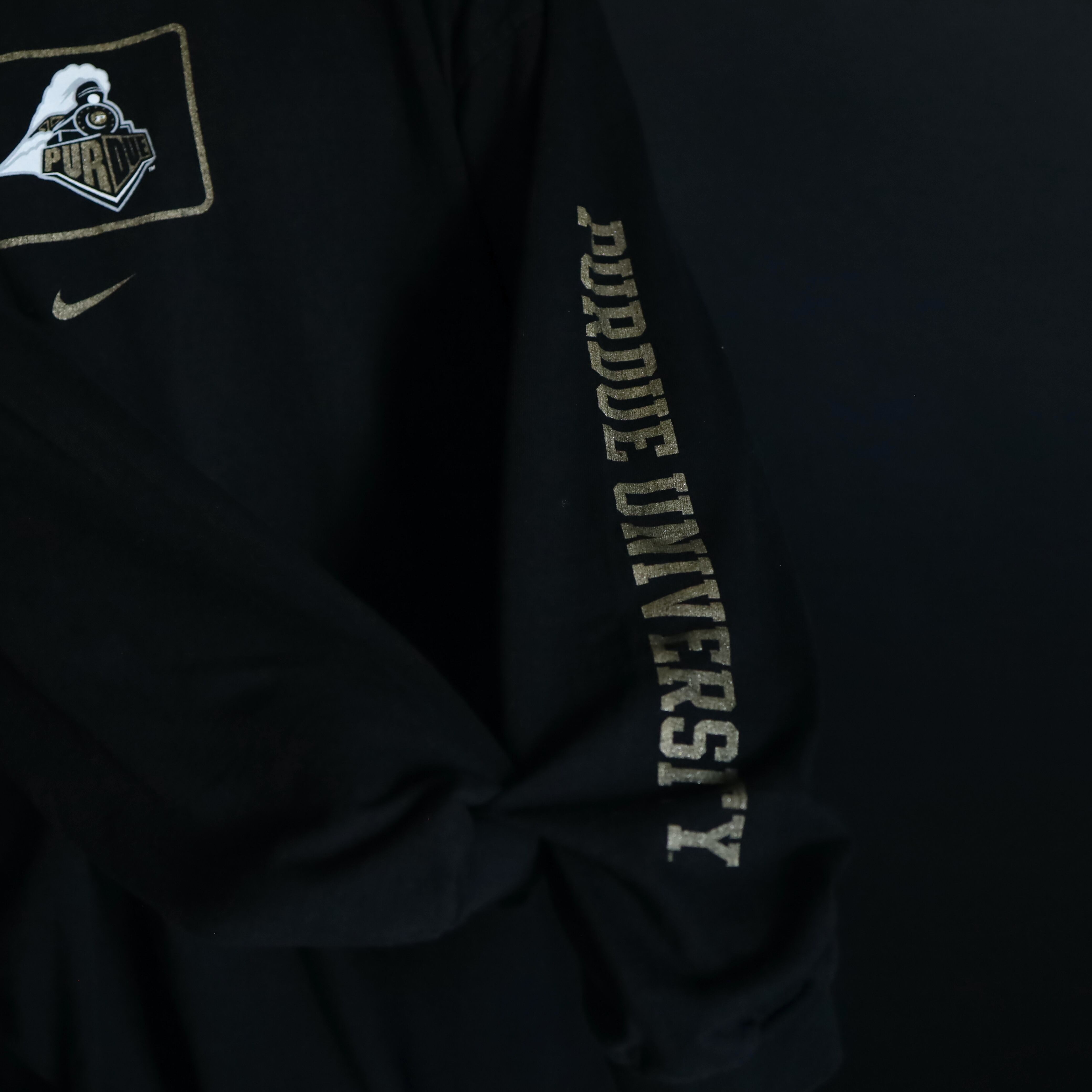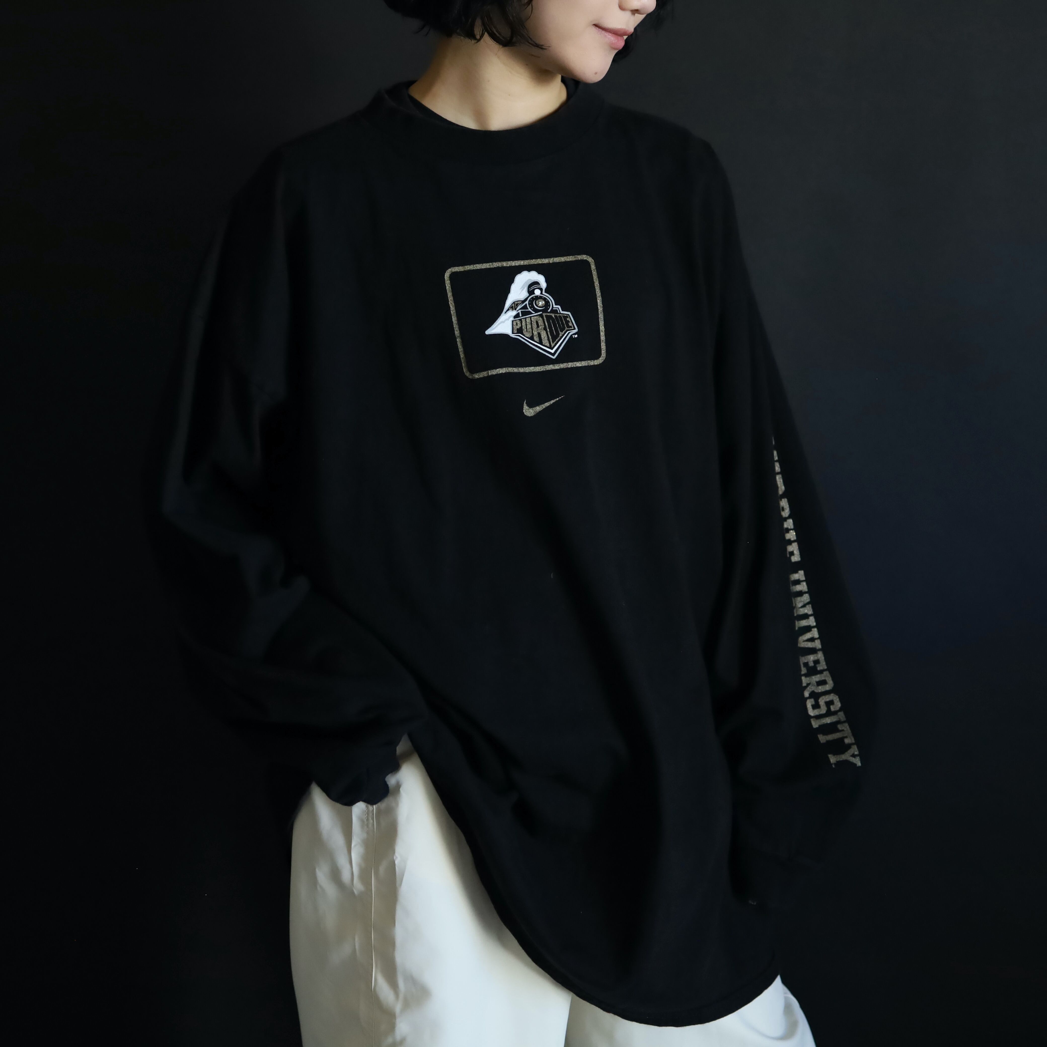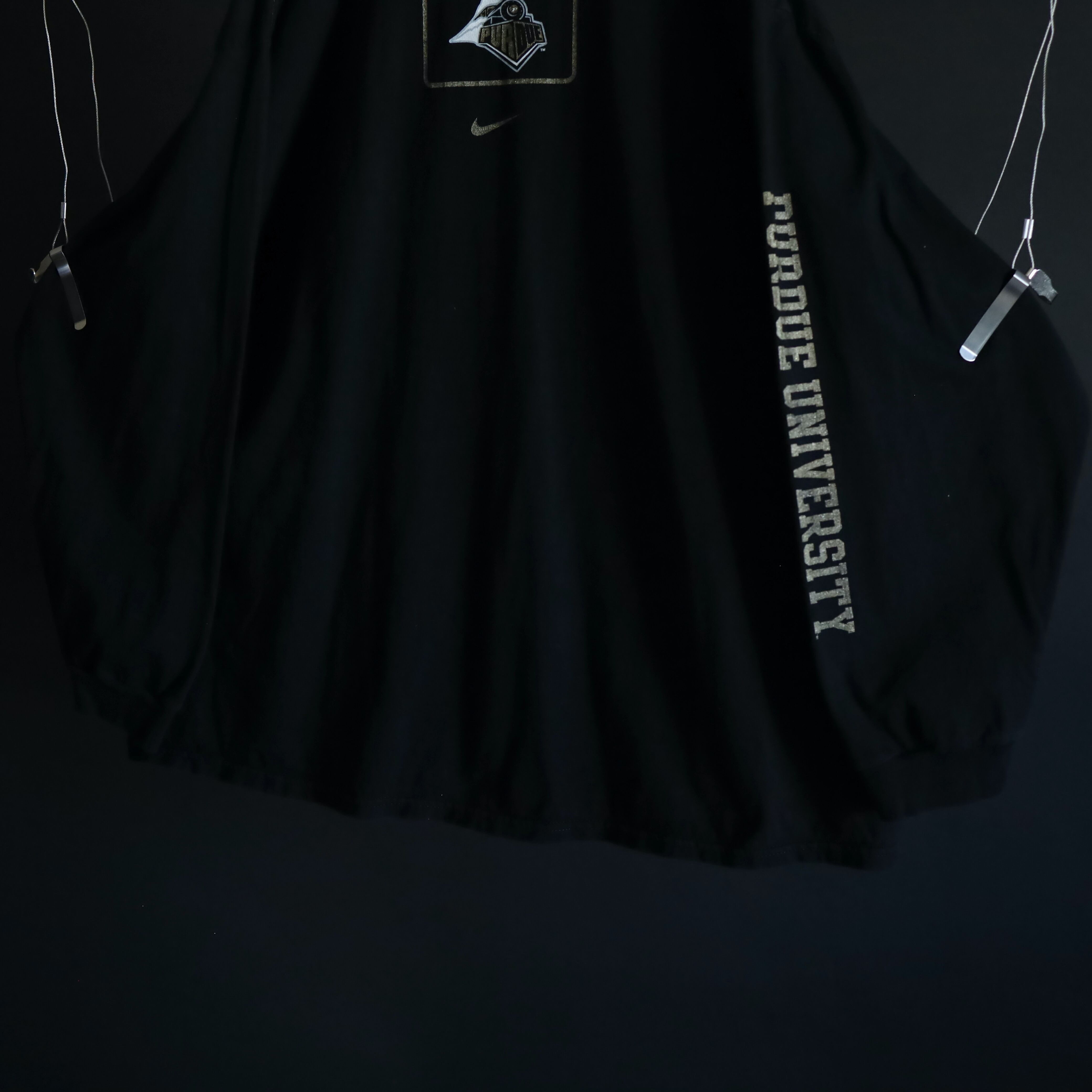 フロントにNIKEのスウッシュロゴと,アメリカのインディアナ州に位置する,パデュー大学のマスコットプリント.