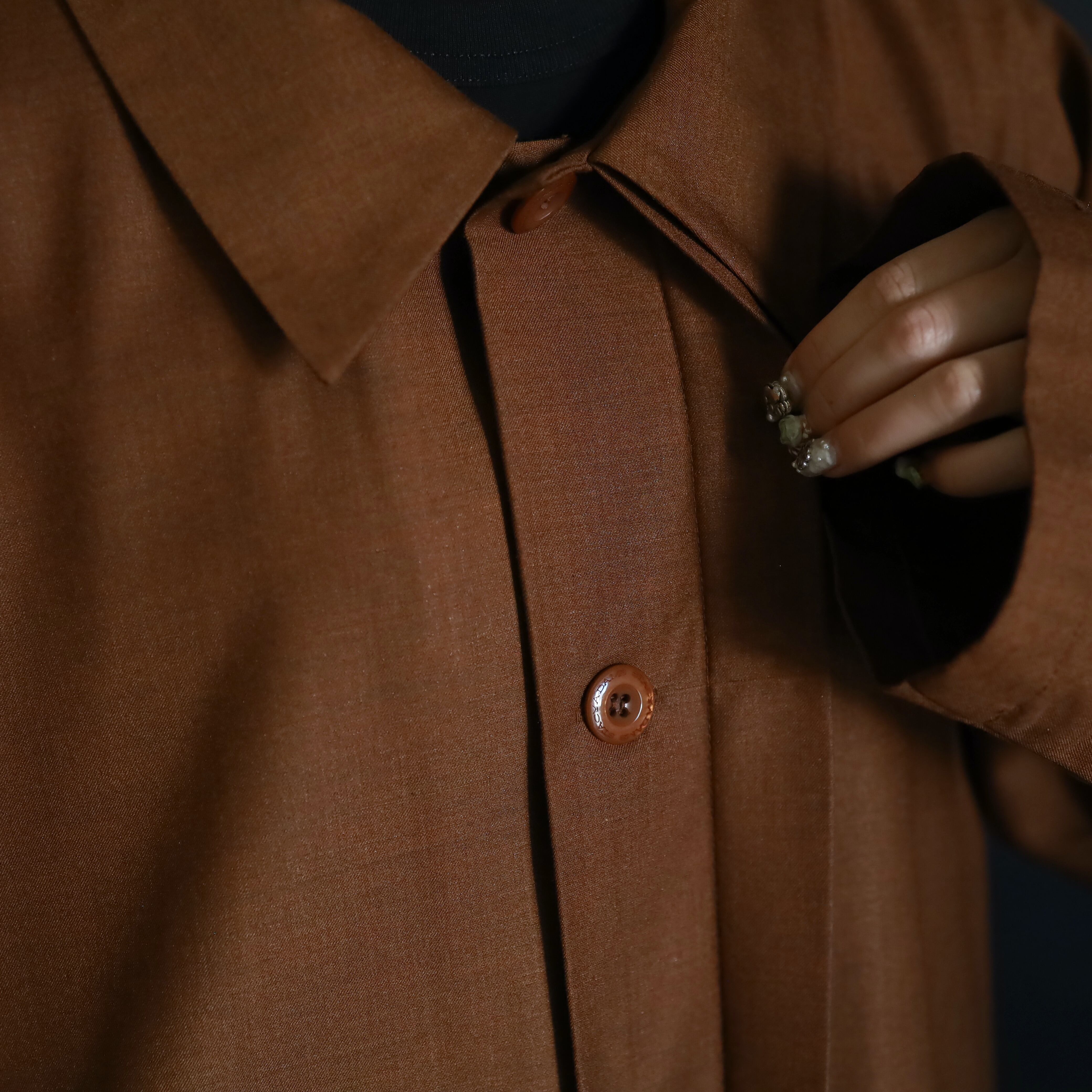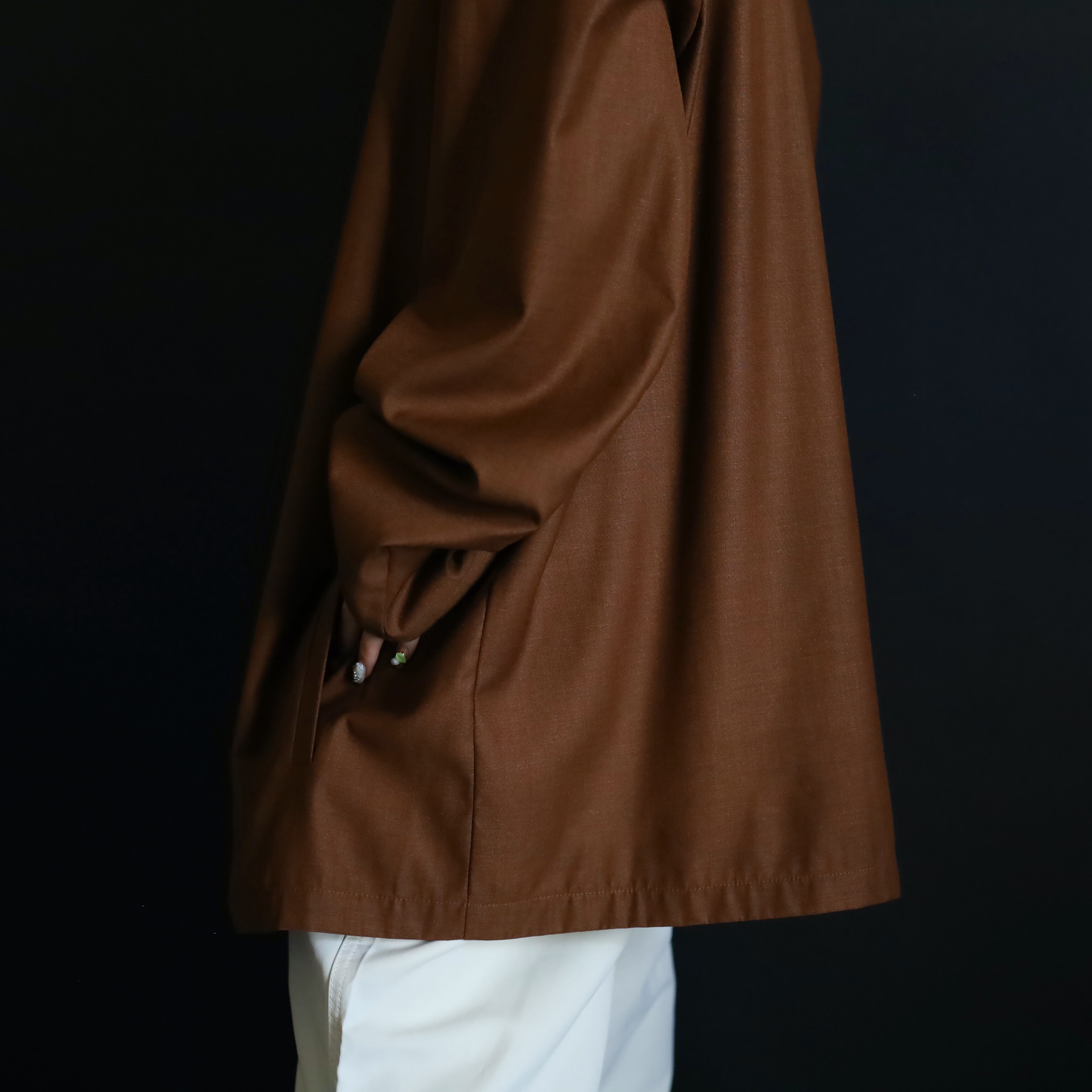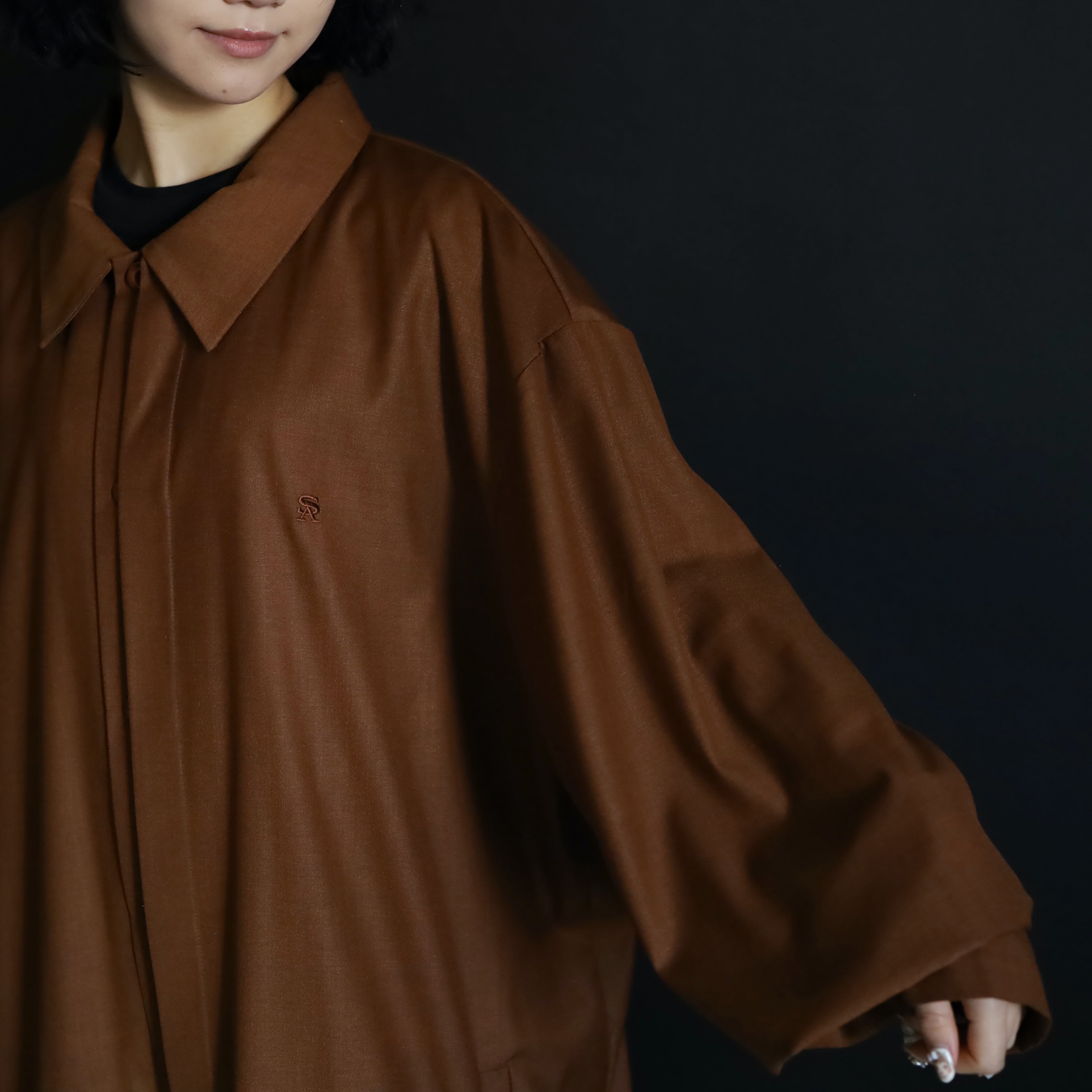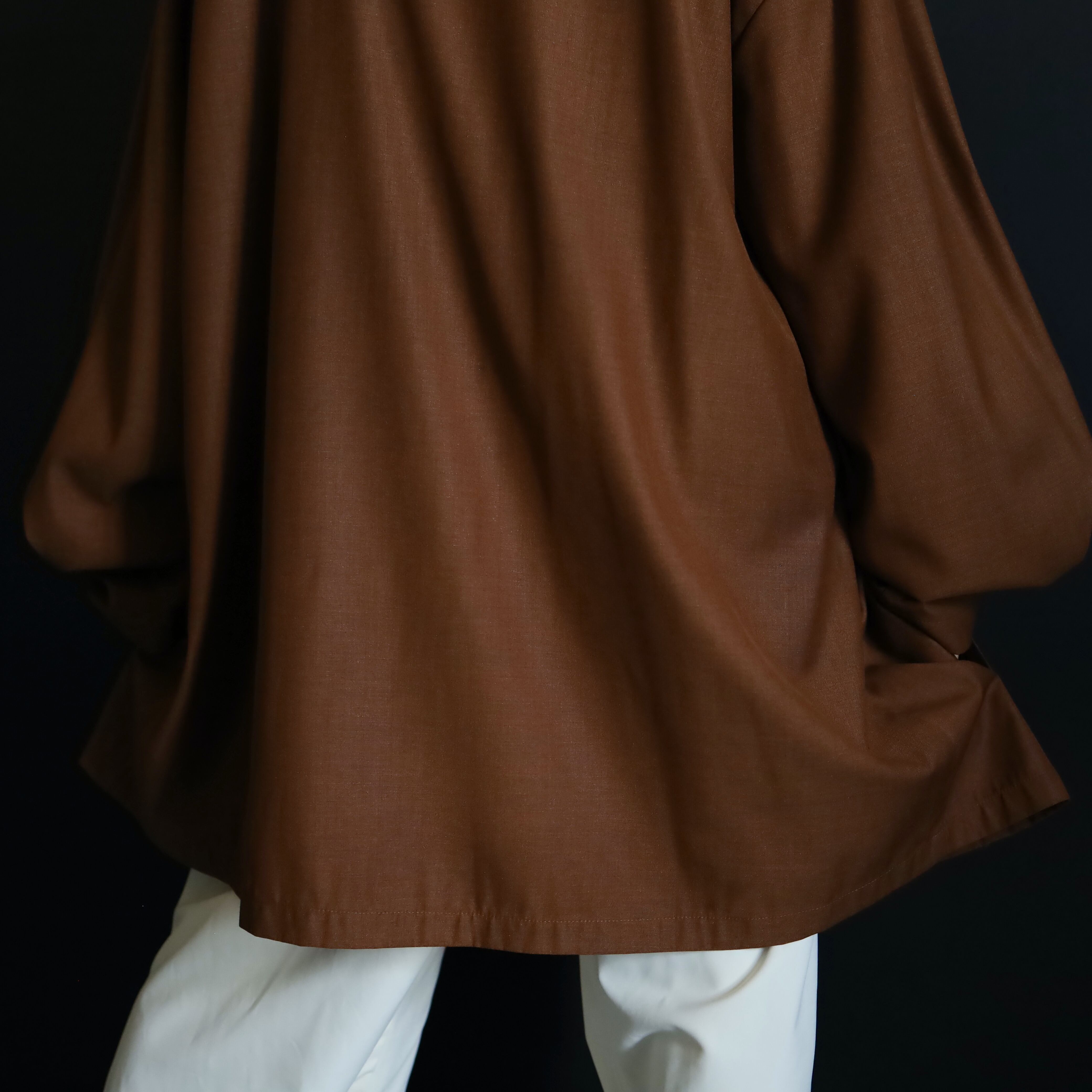 セピアブラウンカラーのポリ×レーヨンボディ.