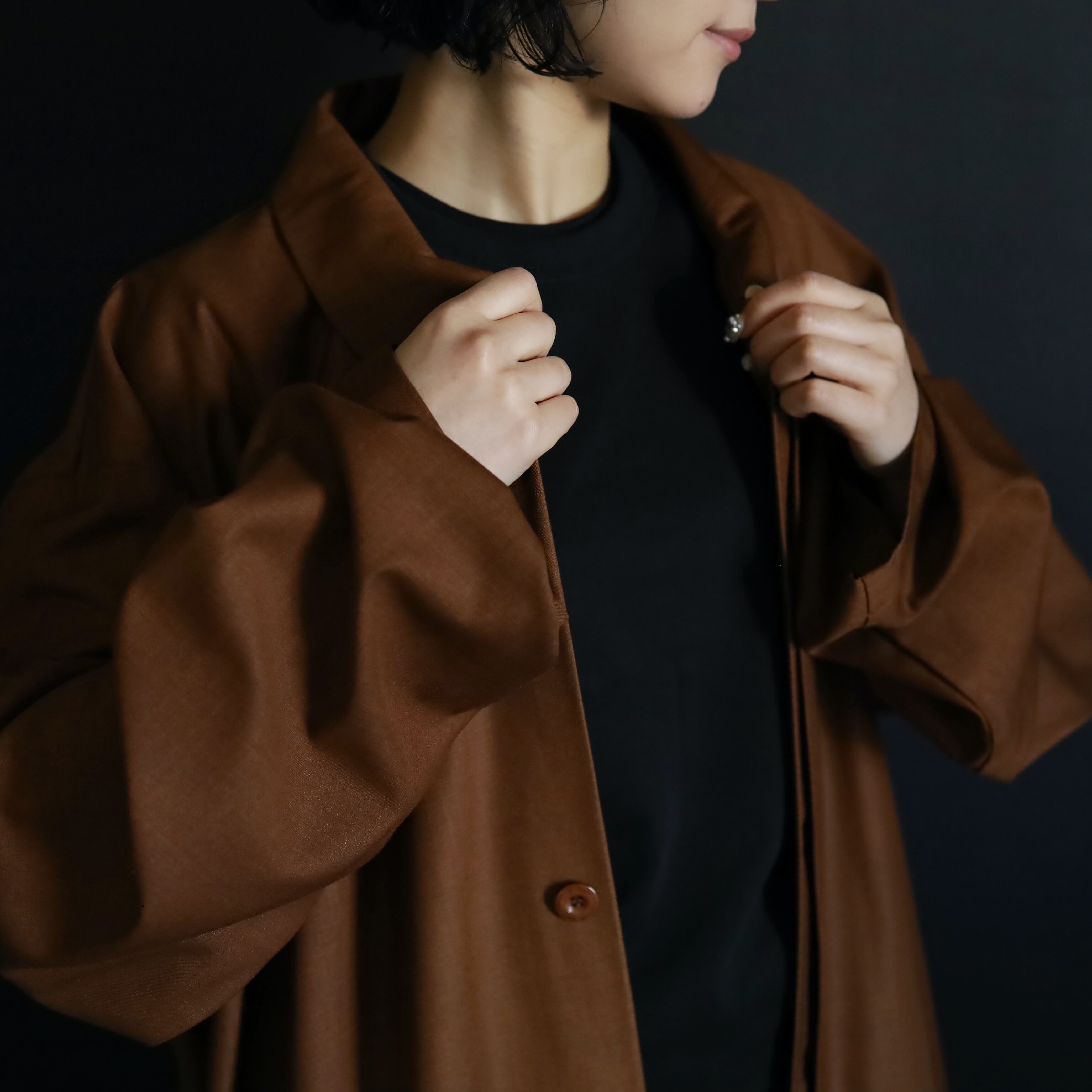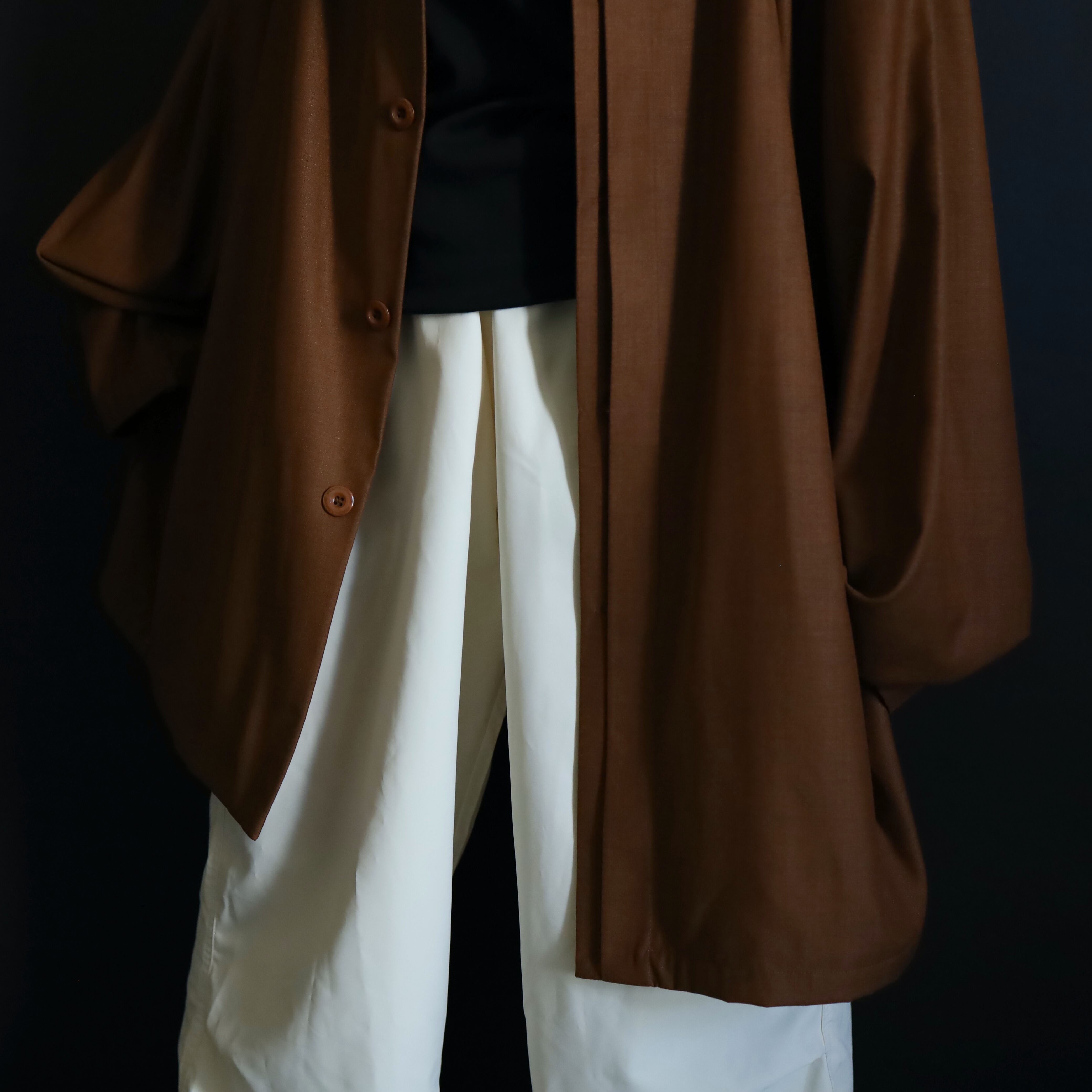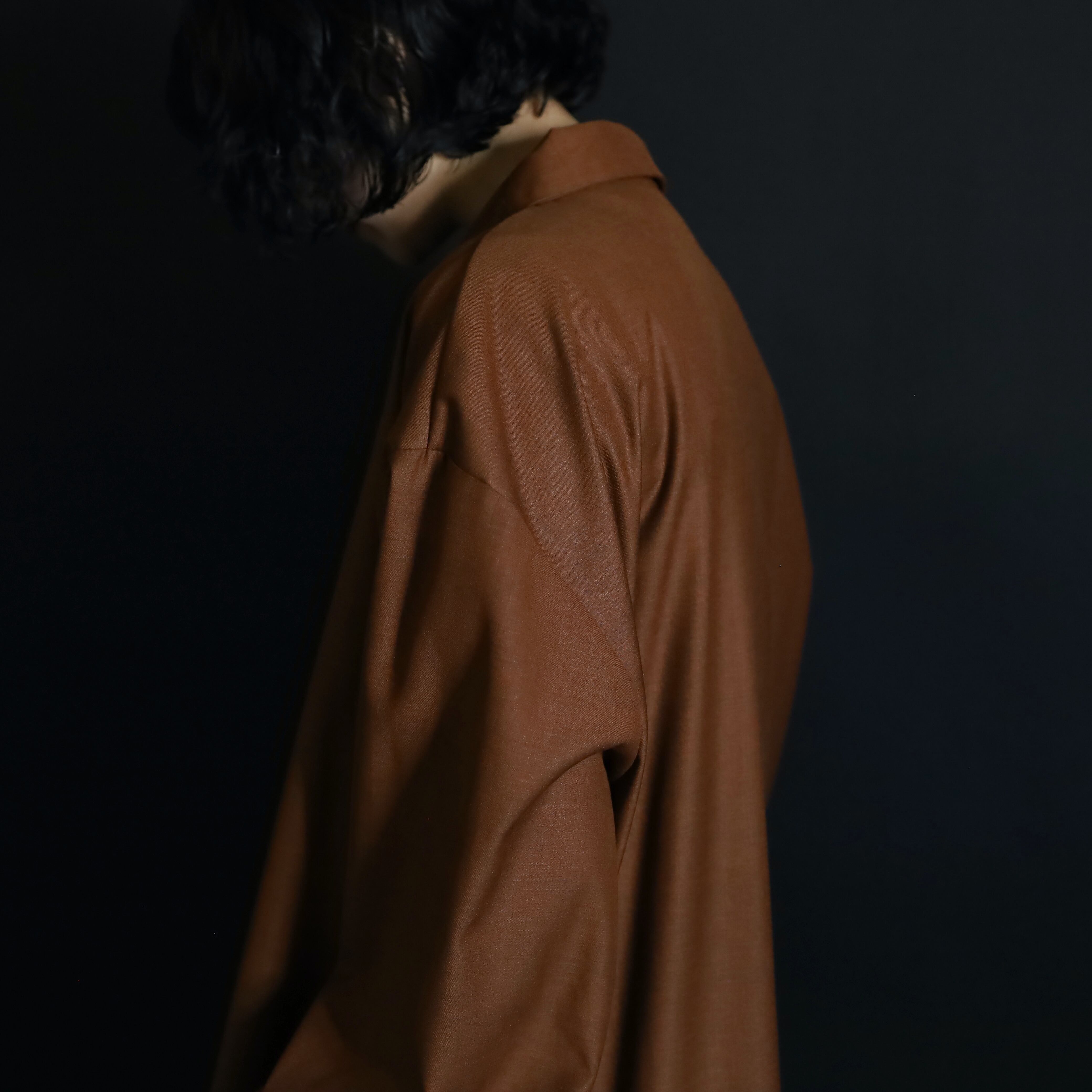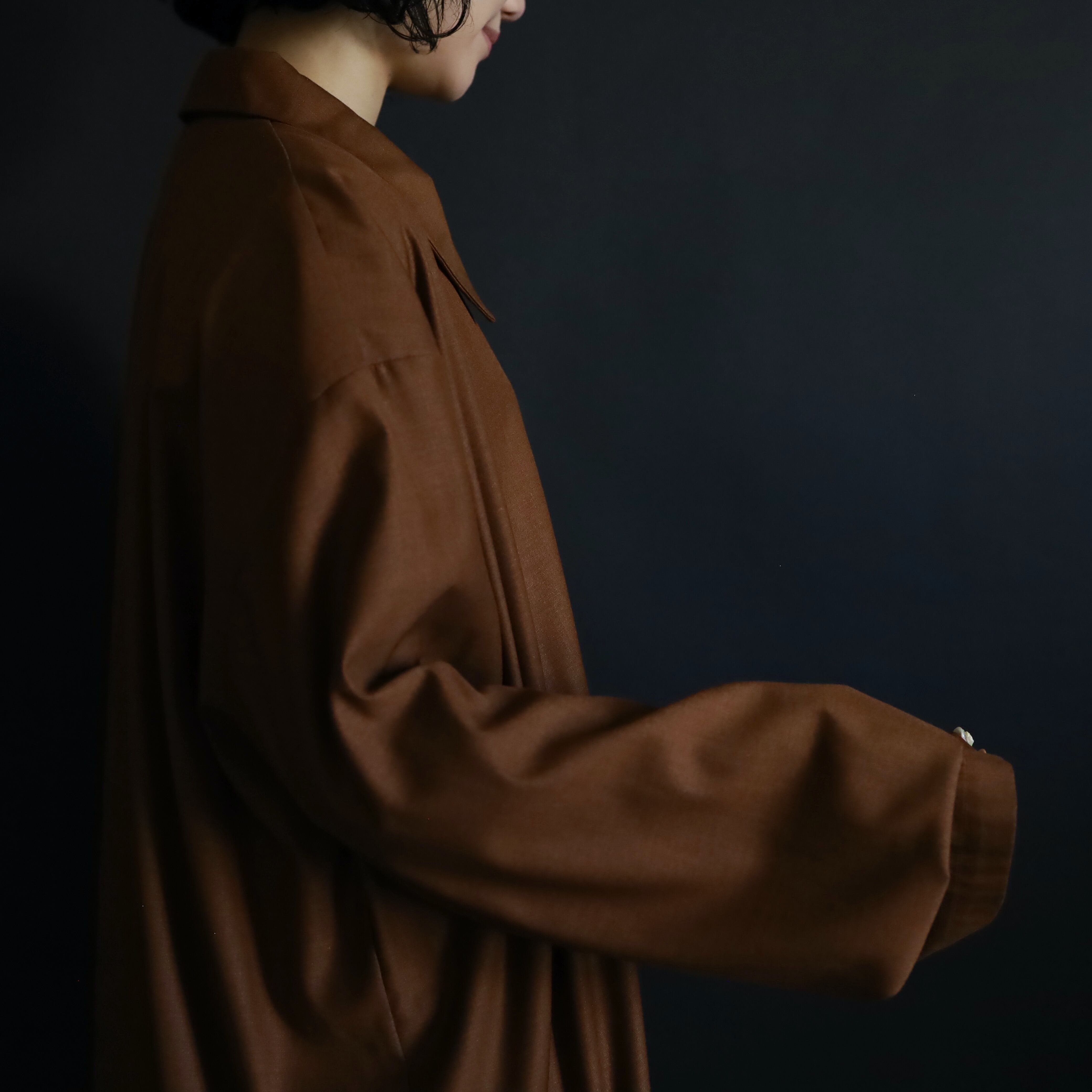 セピアブラウンカラーのポリ×レーヨンボディ.